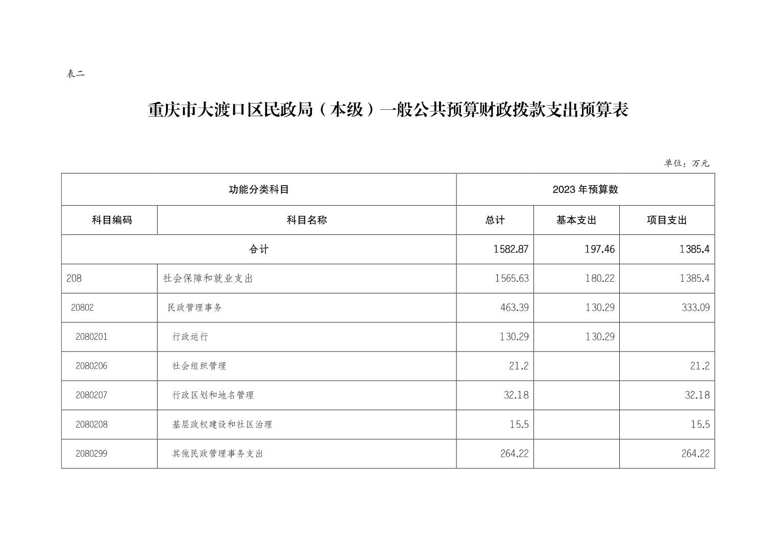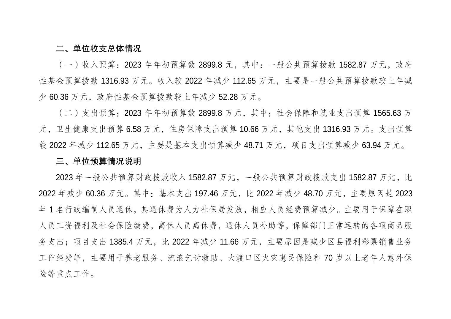 重庆市大渡口区民政局(本级)2023年单位预算情况说明