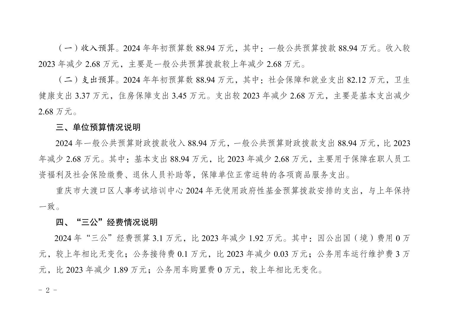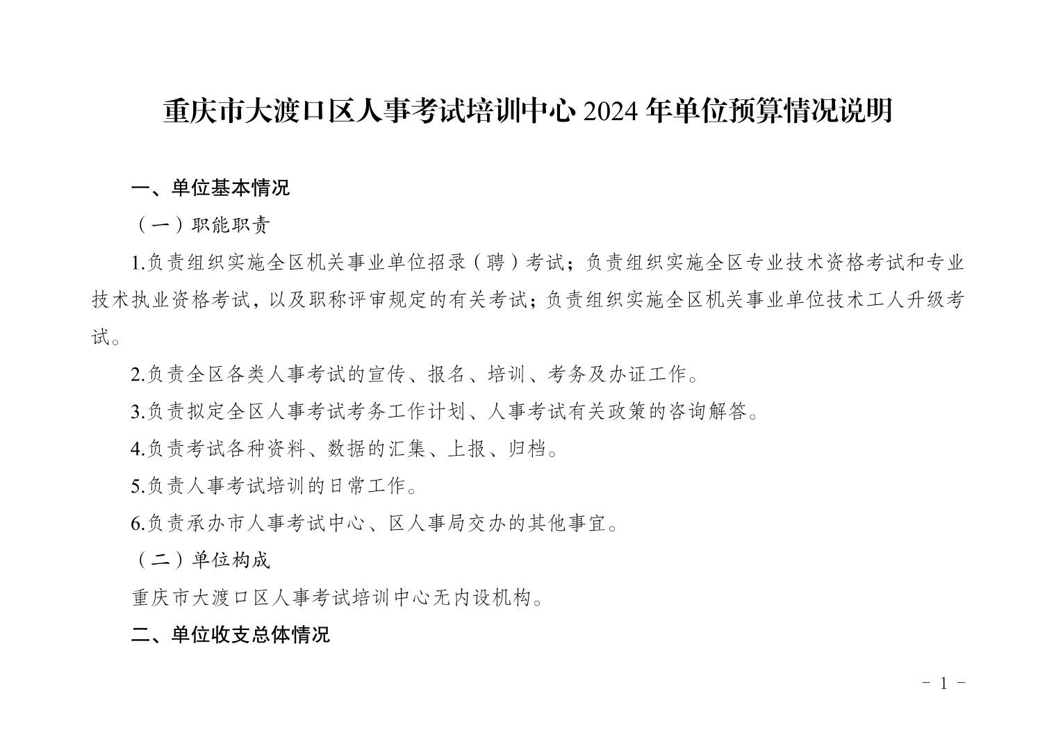 重庆市大渡口区人事考试培训中心2024年单位预算情况说明