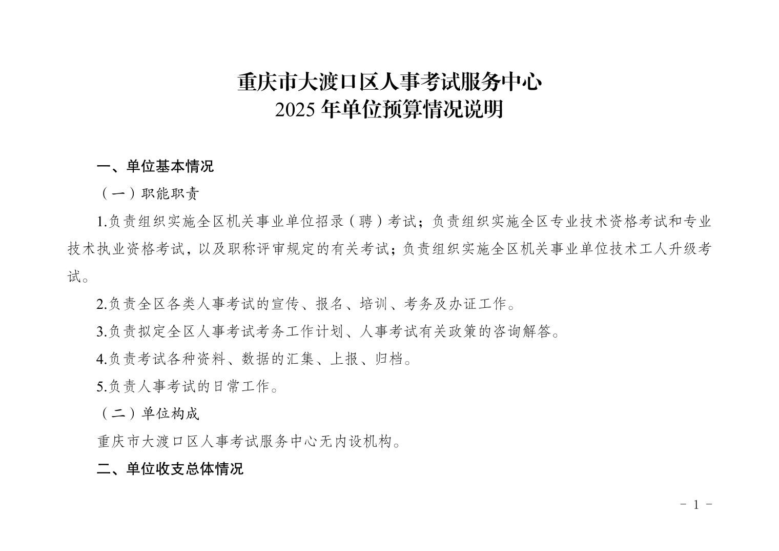 重庆市大渡口区人事考试服务中心2025年单位预算情况说明