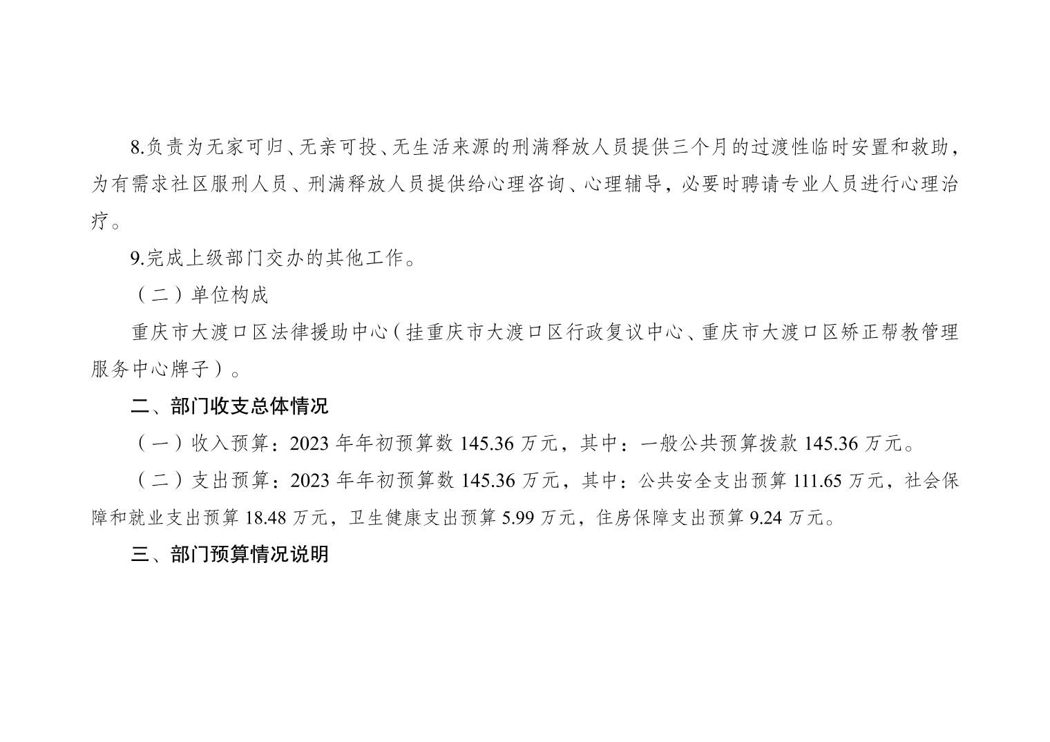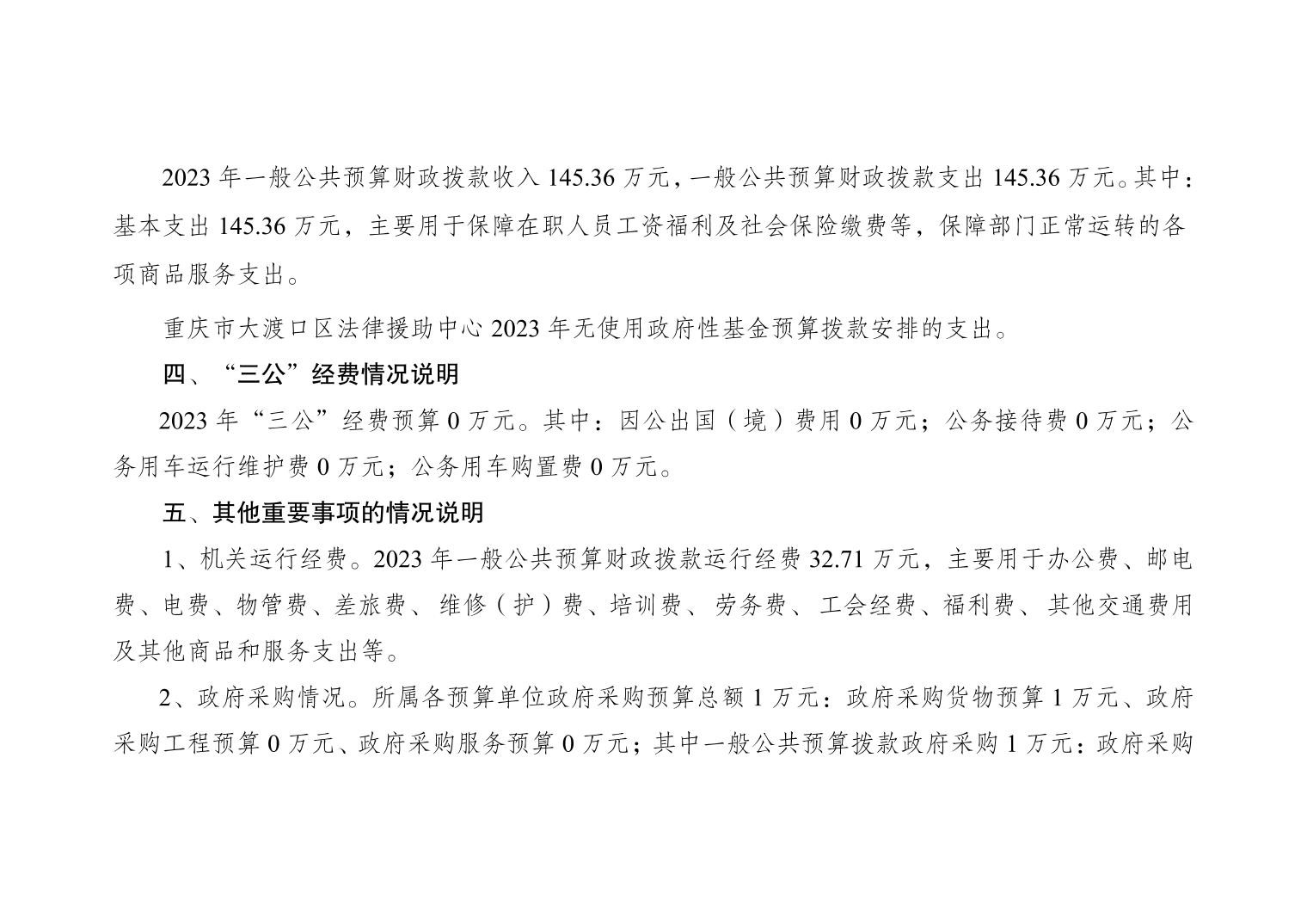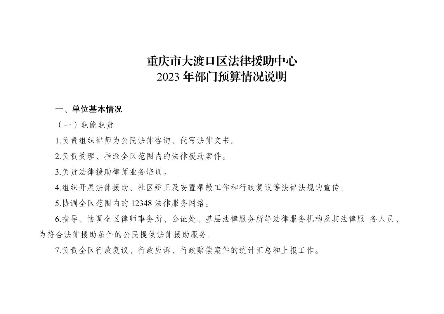 重庆市大渡口区法律援助中心2023年部门预算情况说明