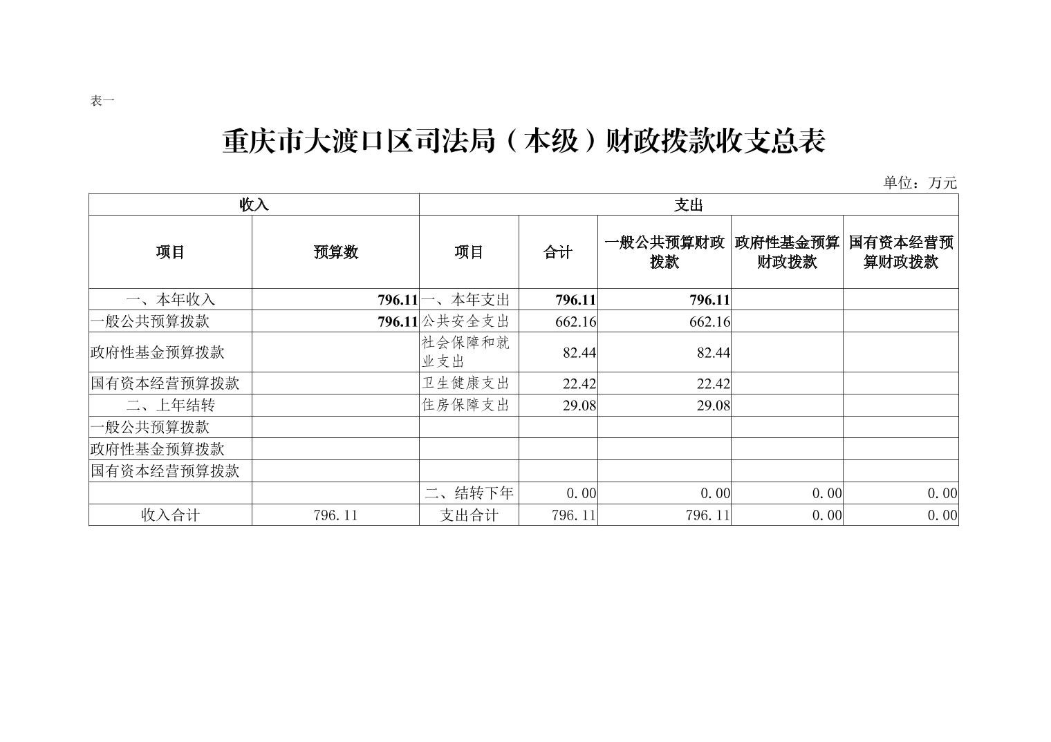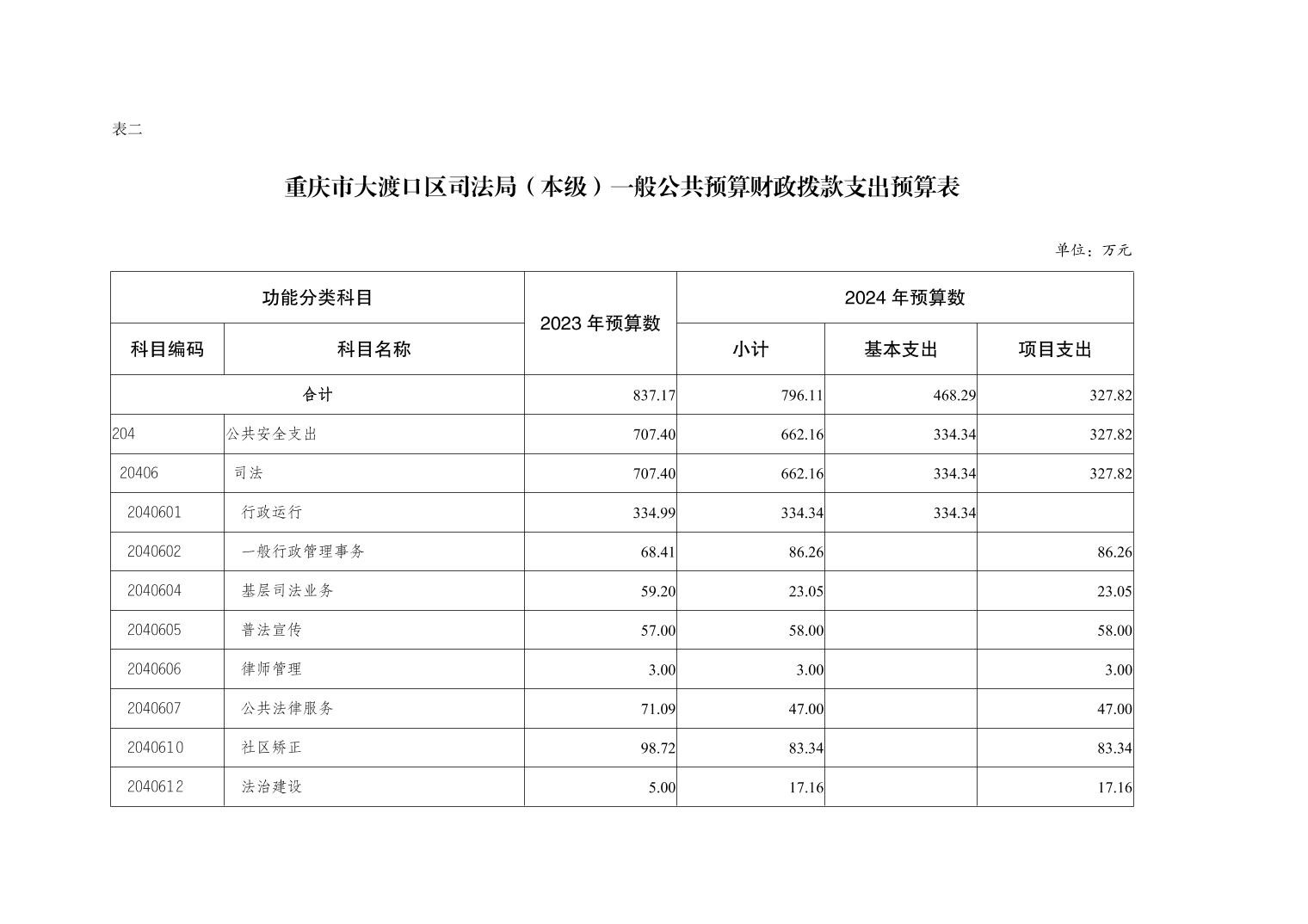 重庆市大渡口区司法局(本级)2024年单位预算情况说明