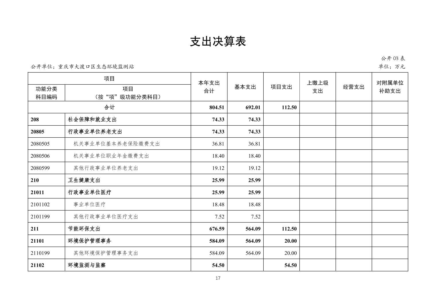 重庆市大渡口区生态环境监测站2023年度决算公开说明