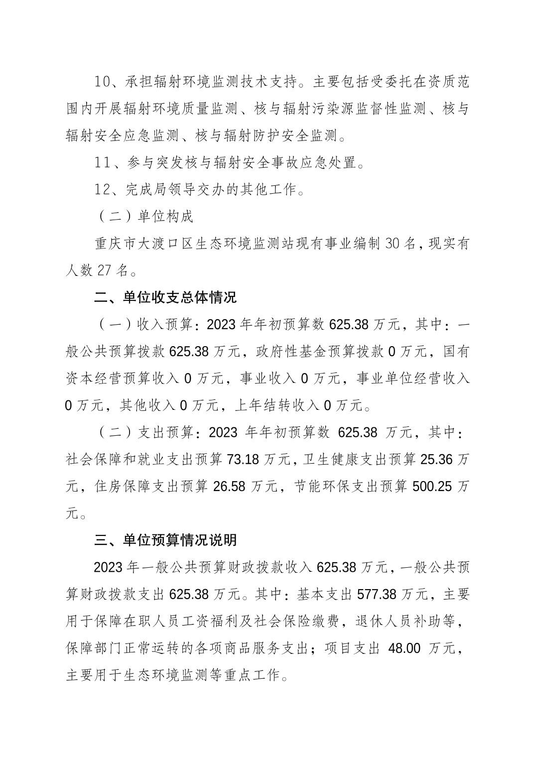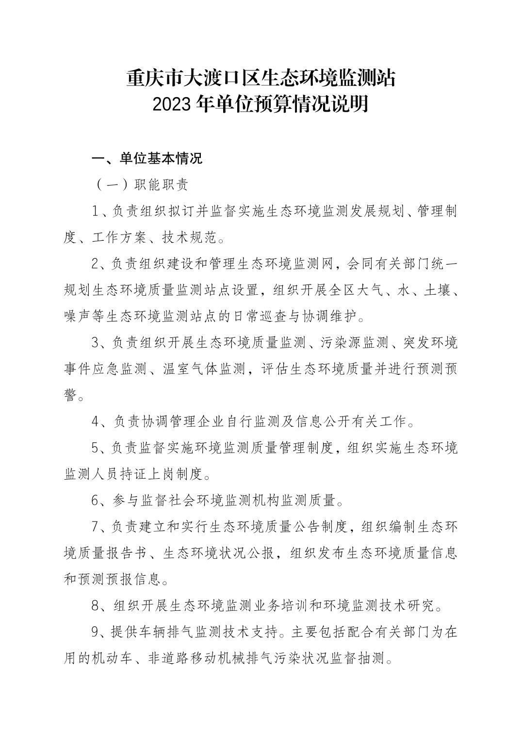 重庆市大渡口区生态环境监测站2023年单位预算情况说明