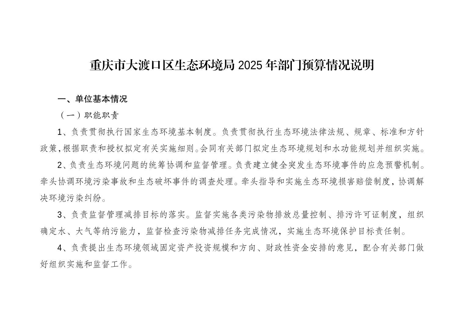 重庆市大渡口区生态环境局2025年部门预算情况说明