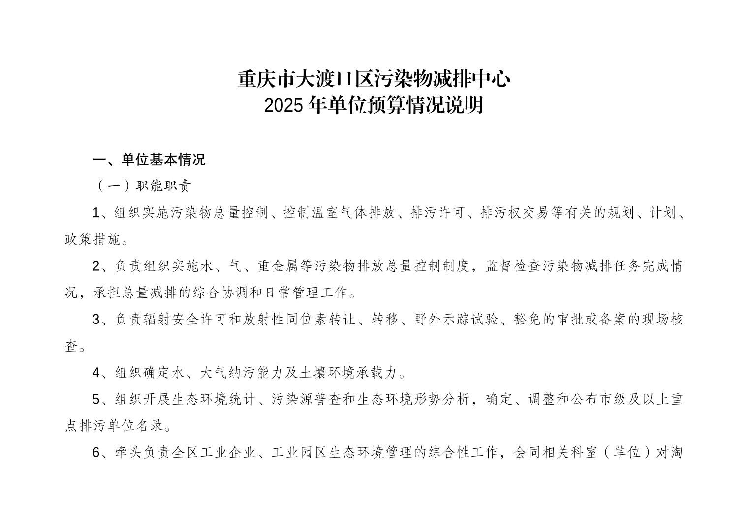 重庆市大渡口区污染物减排中心2025年单位预算情况说明