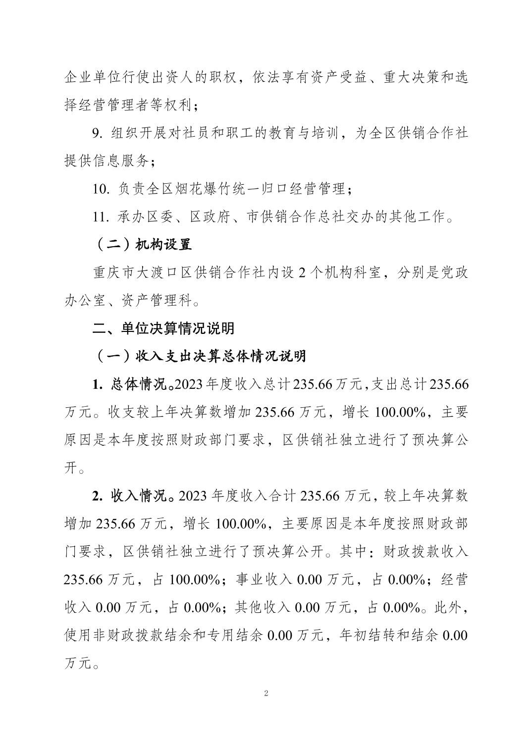 重庆市大渡口区供销合作社2023 年度决算公开说明