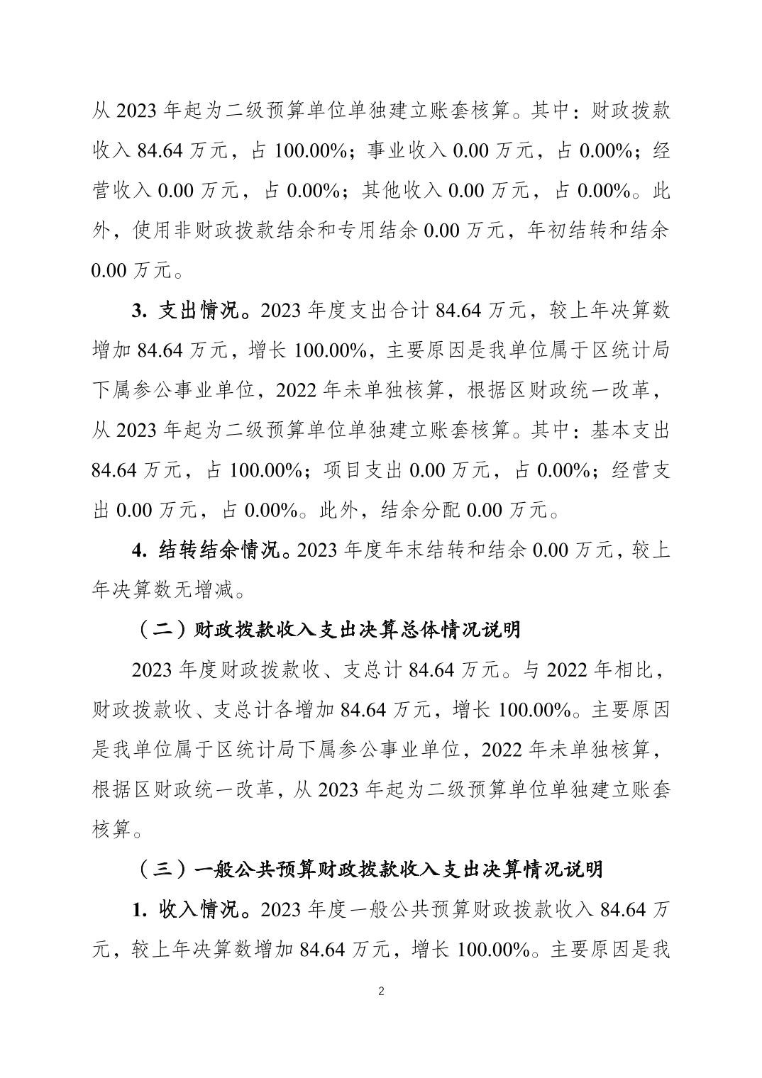 重庆市大渡口区普查中心2023年度决算公开说明
