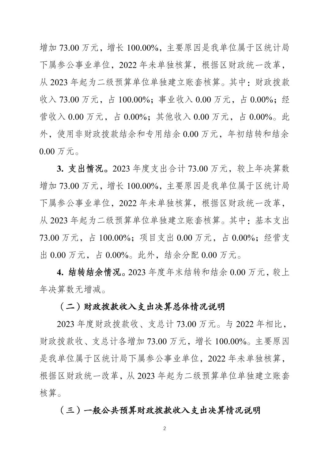 重庆市大渡口区统计执法大队2023年度决算公开说明