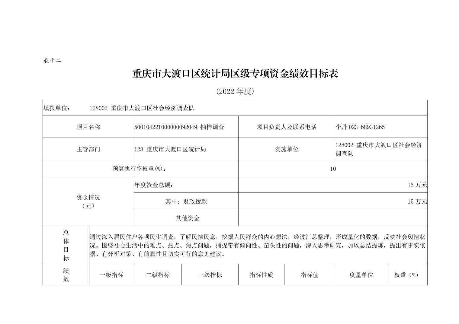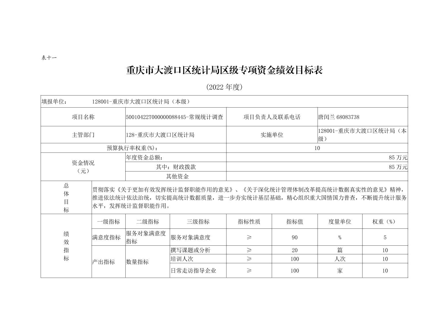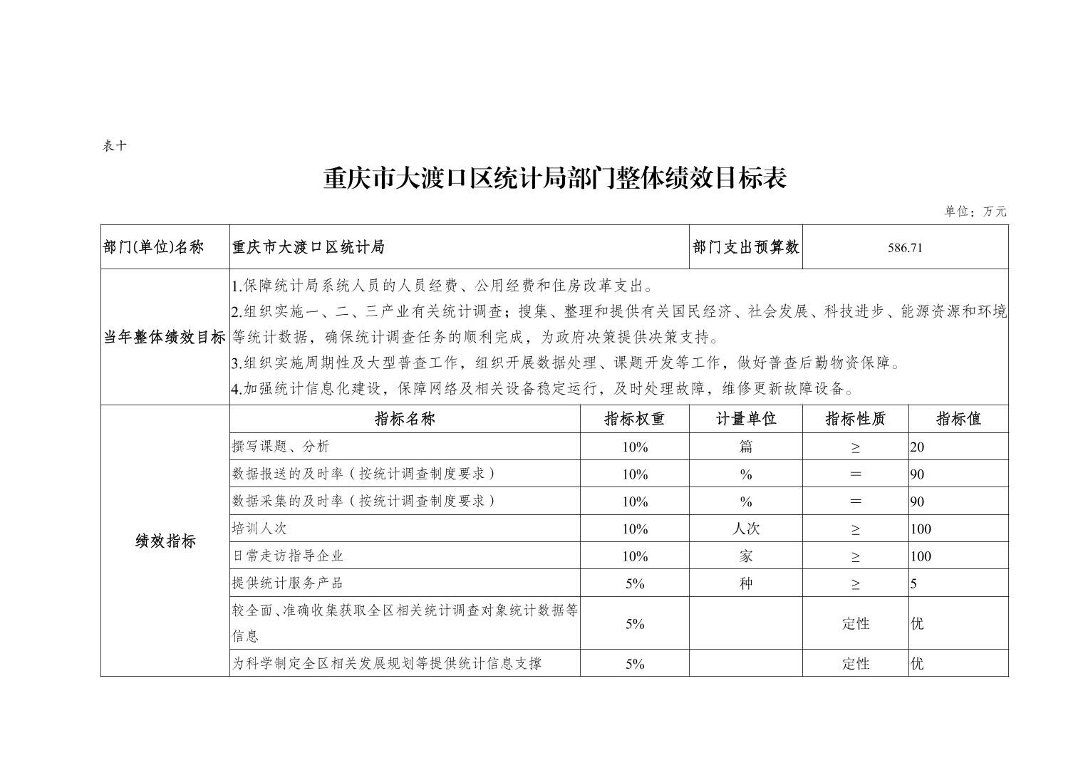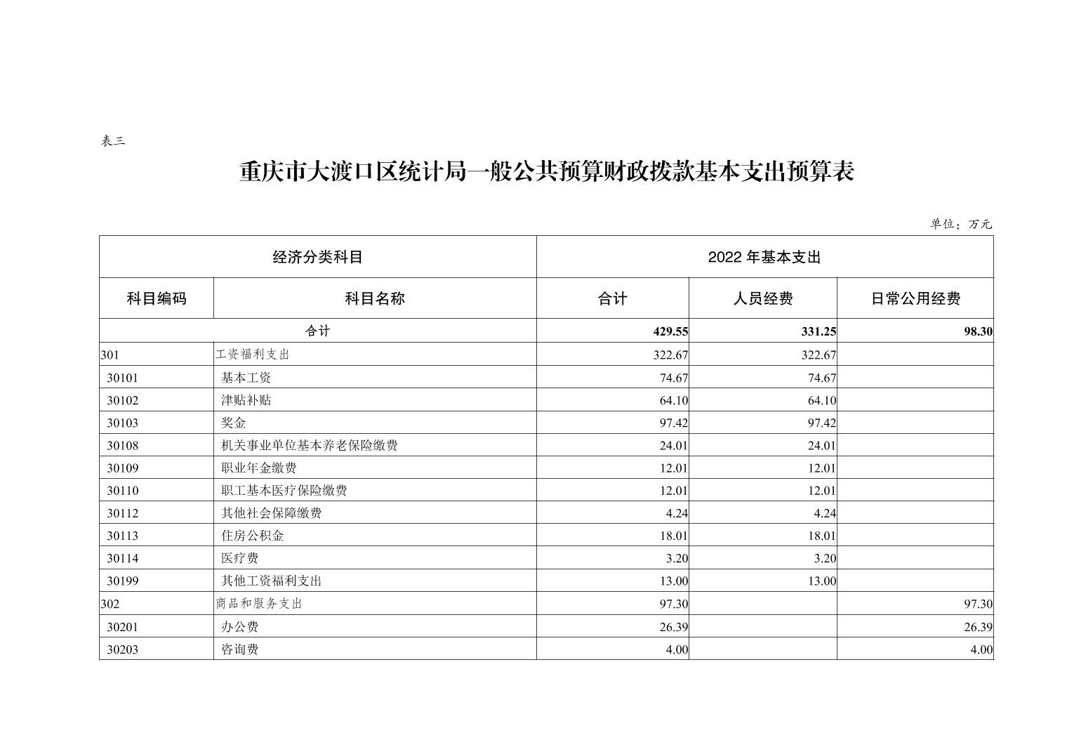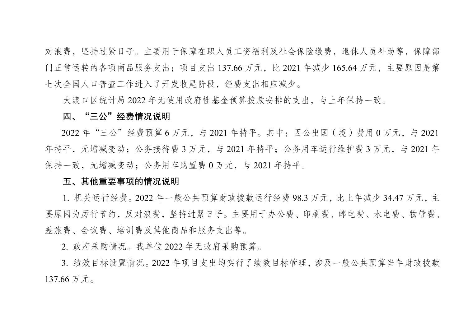 重庆市大渡口区统计局2022年部门预算情况说明