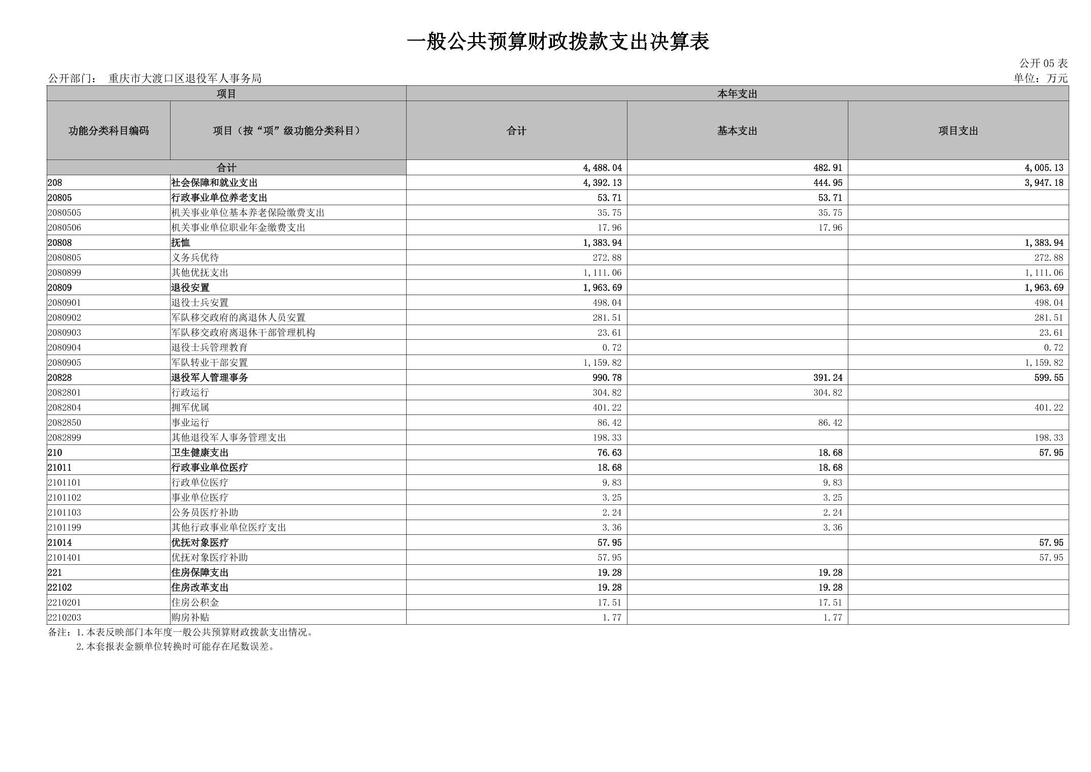 重庆市大渡口区退役军人事务局 2023 年度决算公开说明
