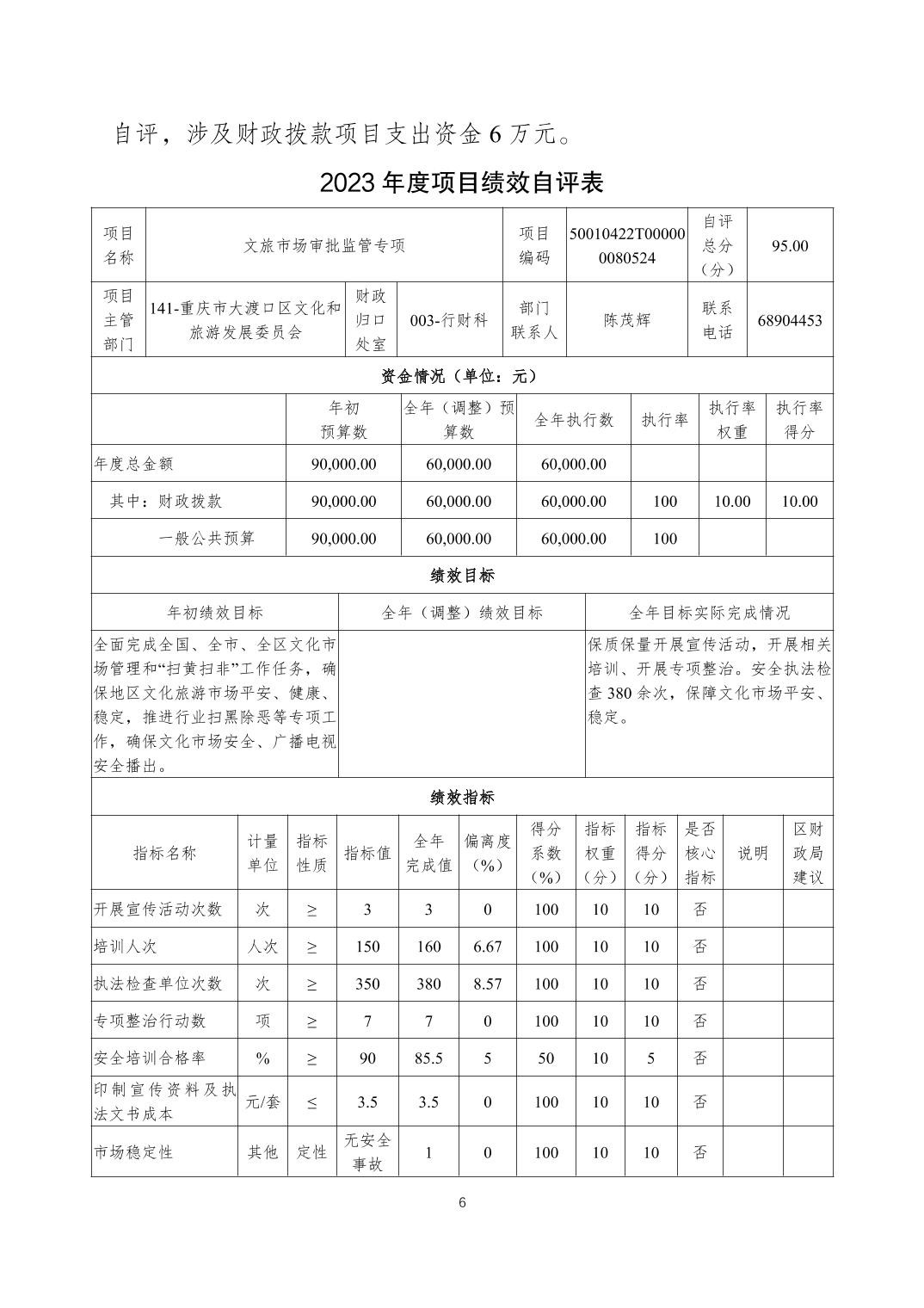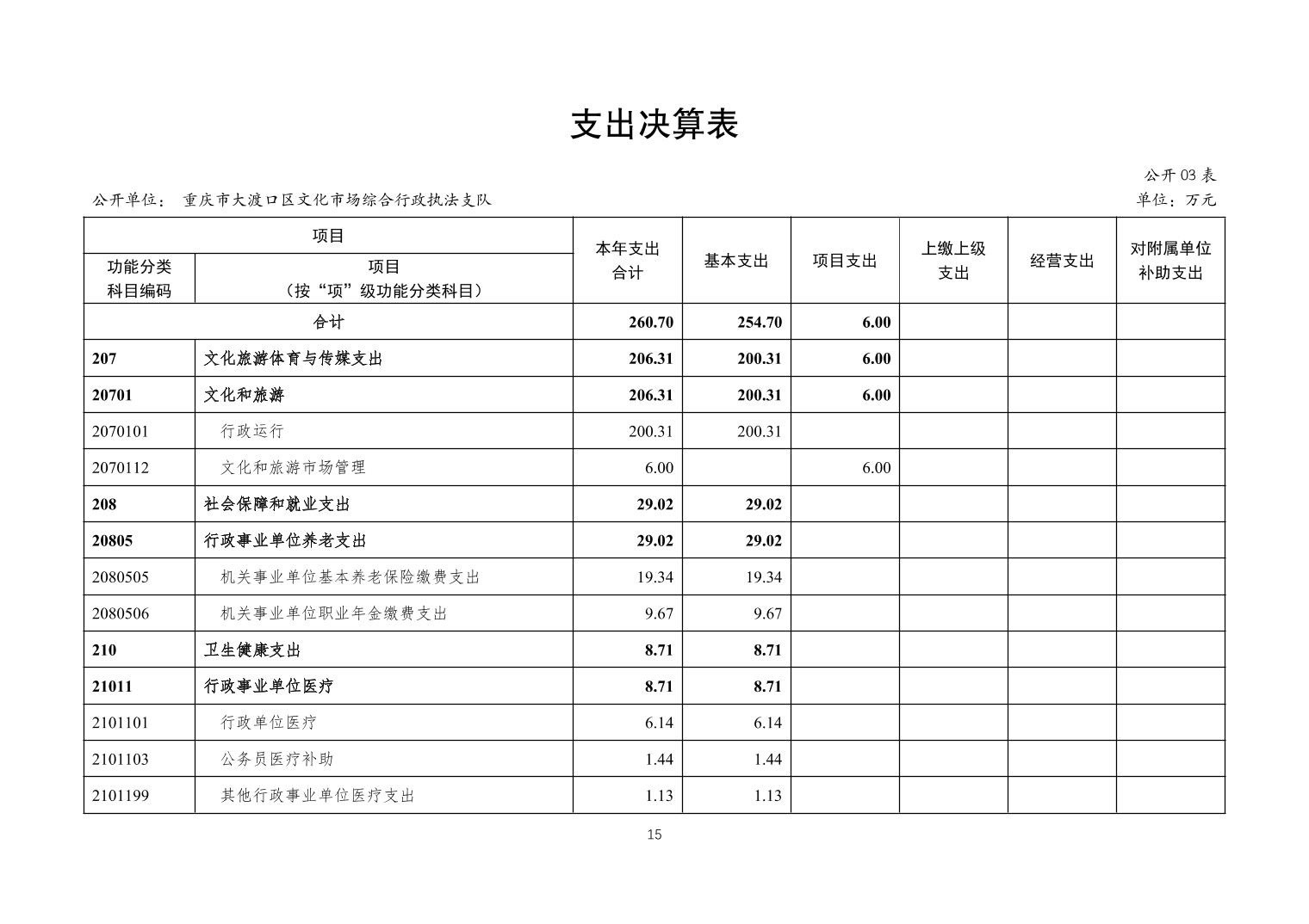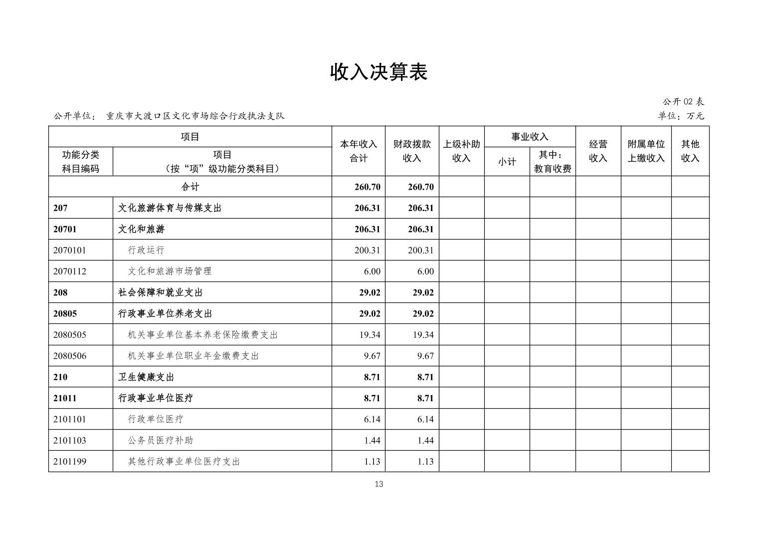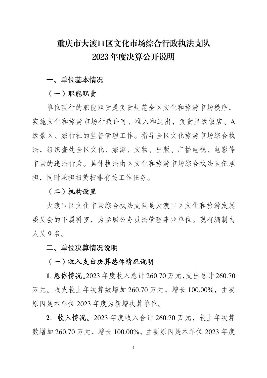 重庆市大渡口区文化市场综合行政执法支队2023年度决算公开说明