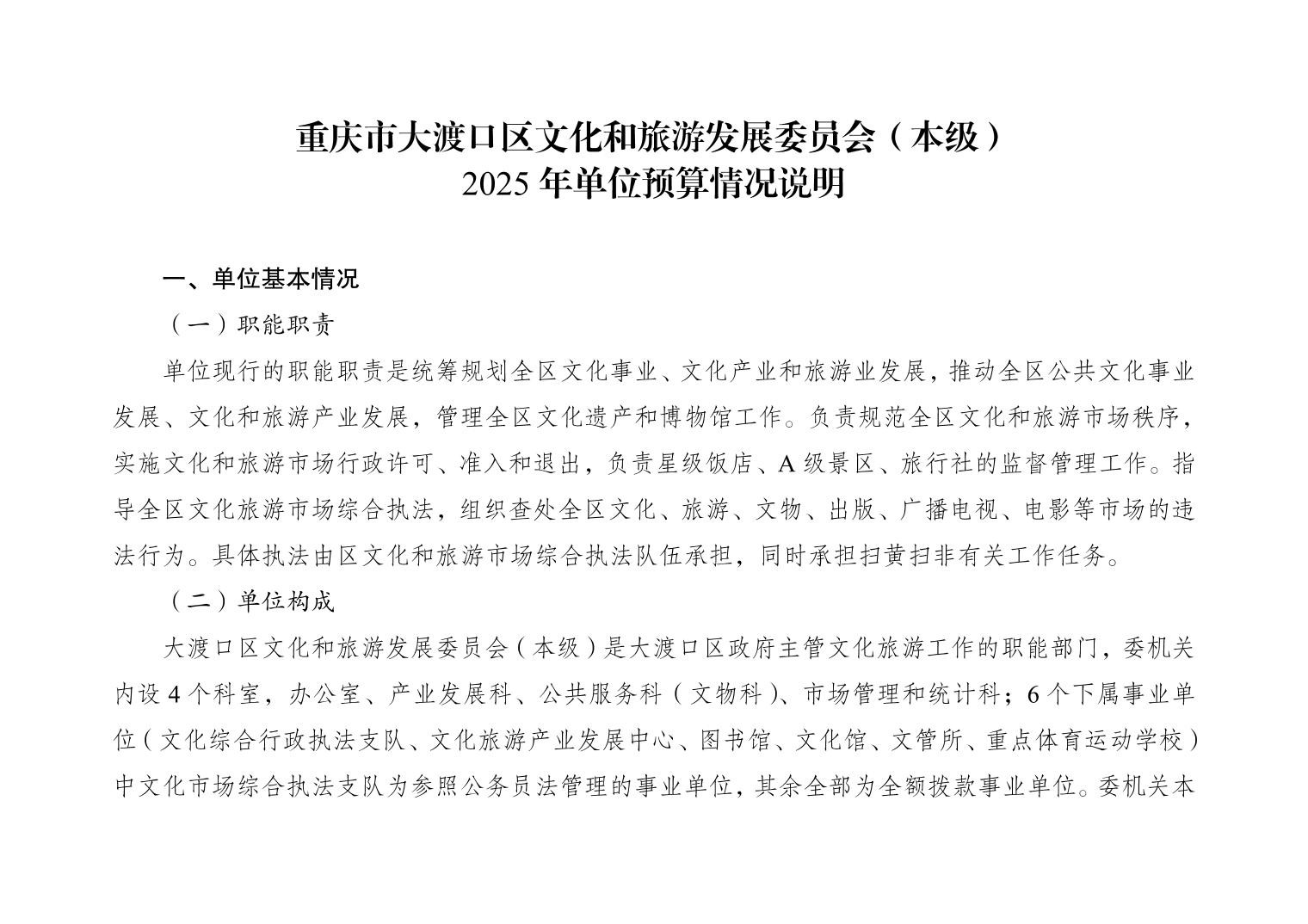 重庆市大渡口区文化和旅游发展委员会(本级)2025年单位预算情况说明