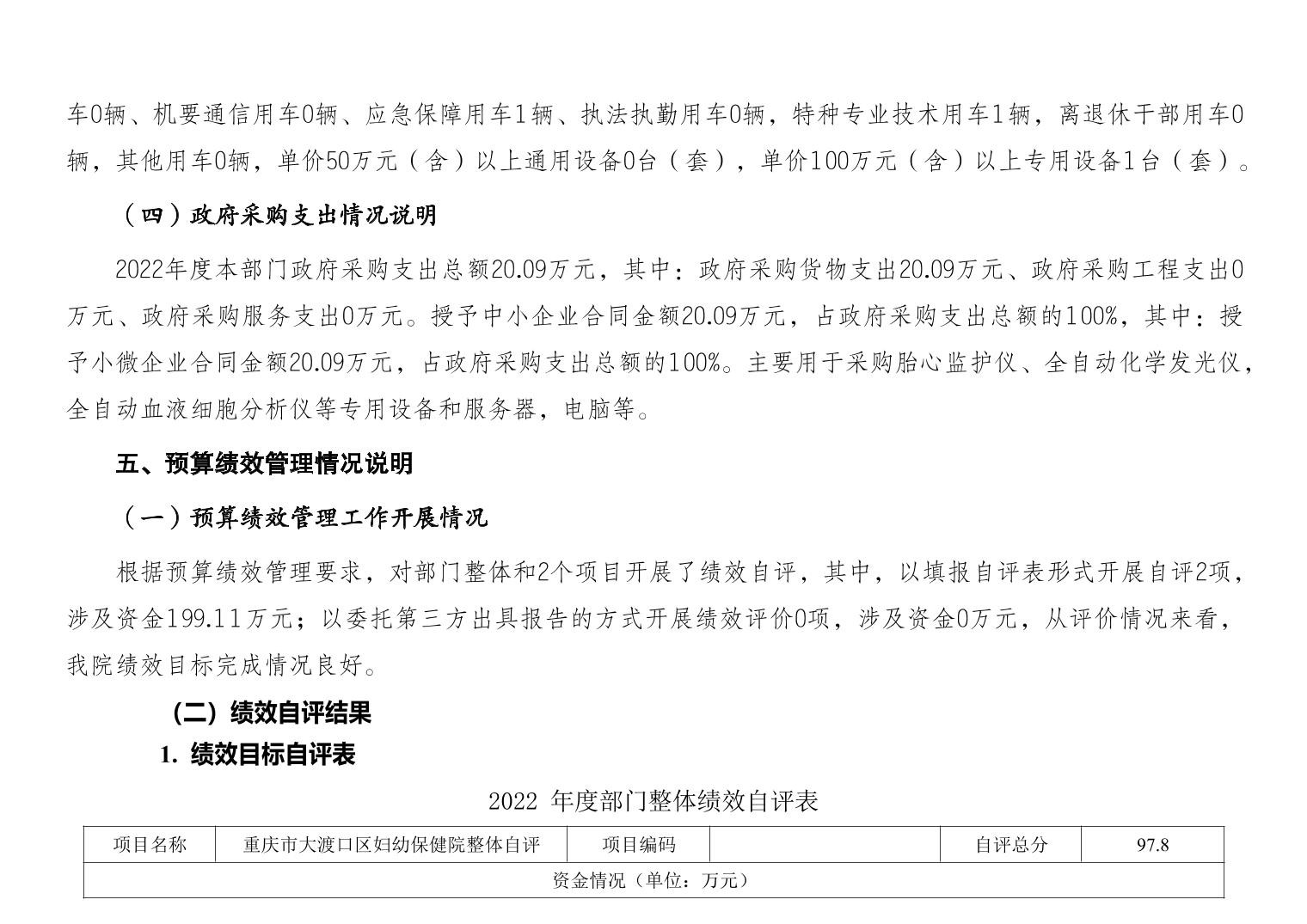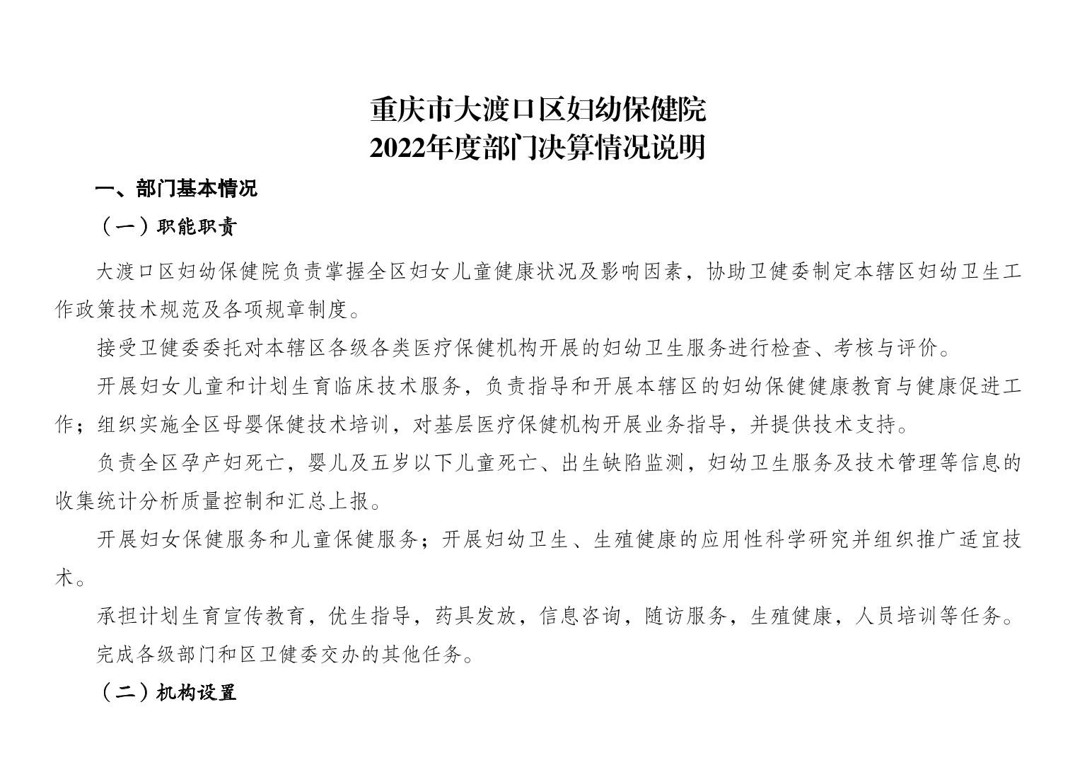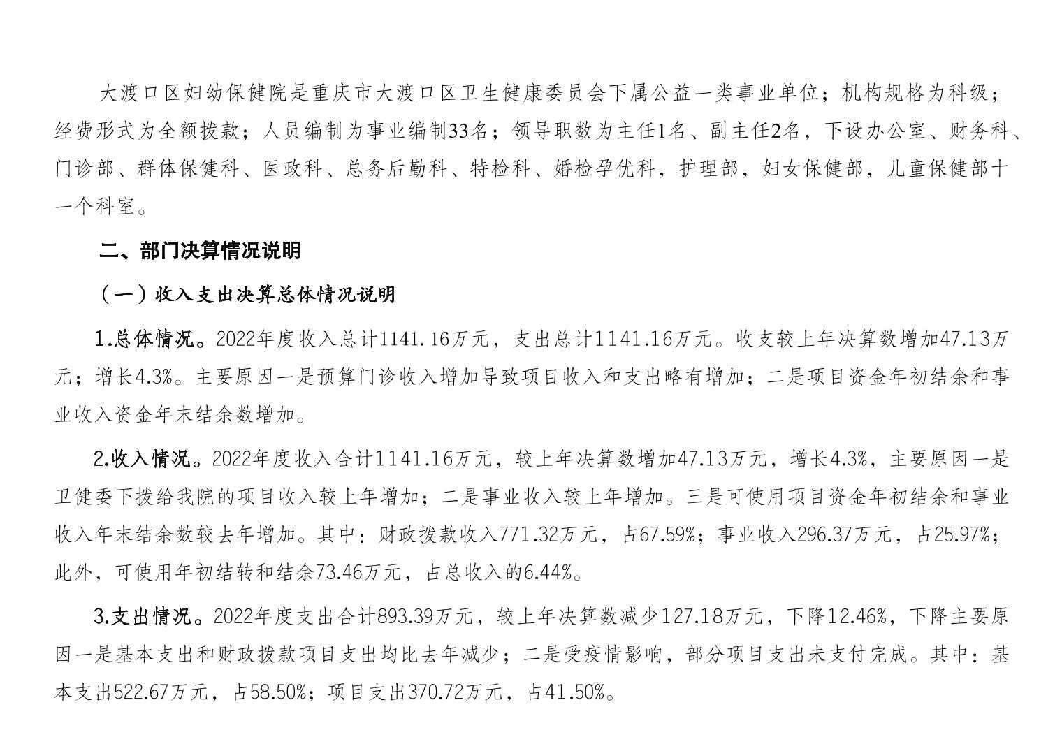 重庆市大渡口区妇幼保健院 2022 年度部门决算情况说明