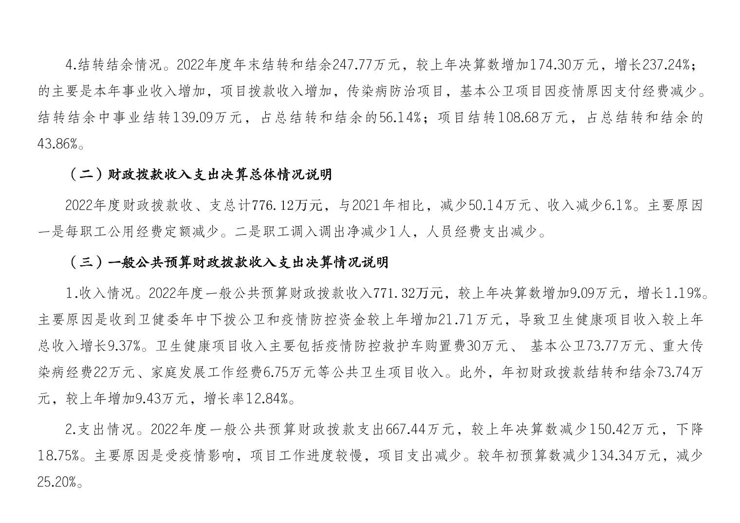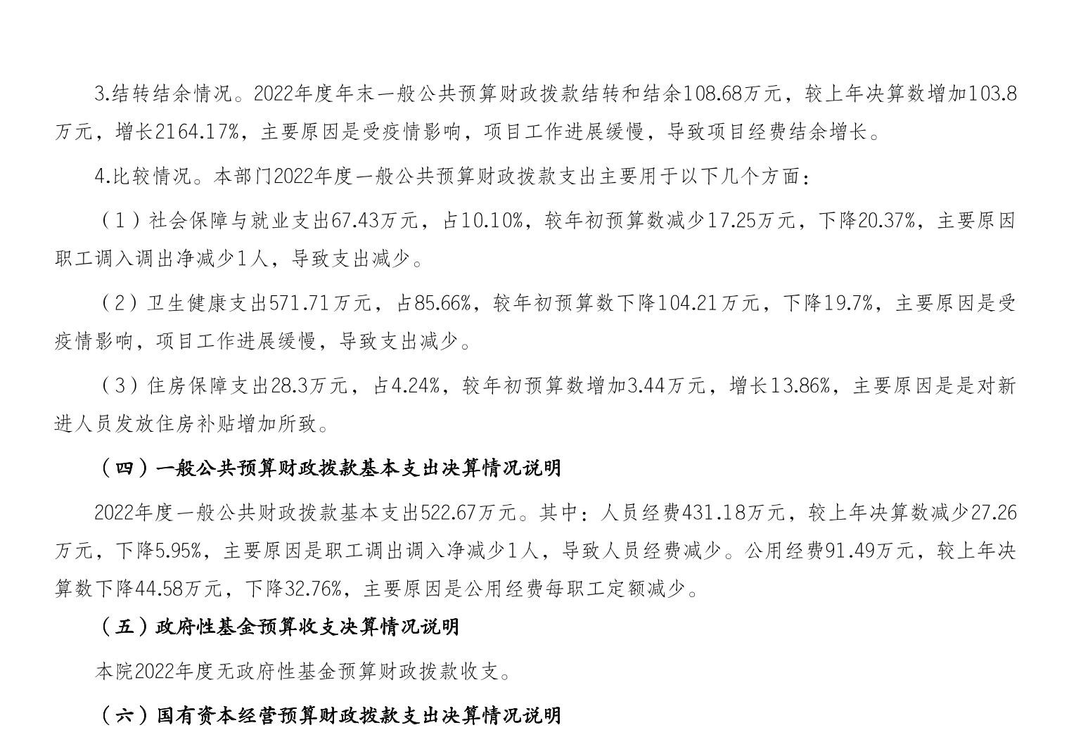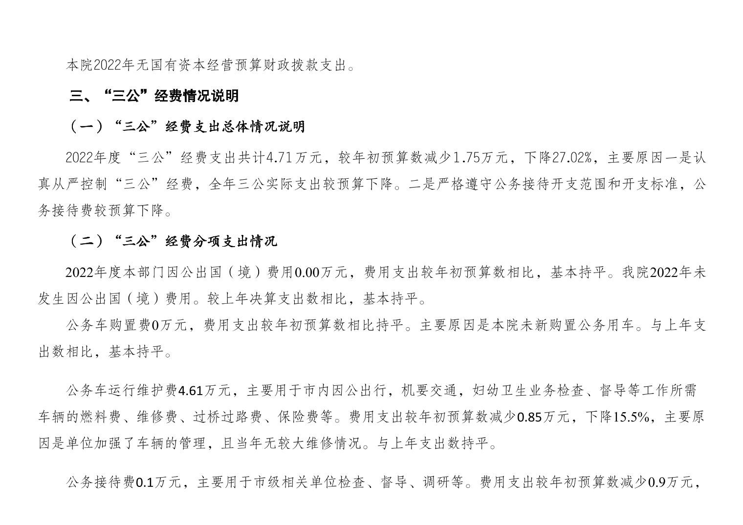 重庆市大渡口区妇幼保健院 2022 年度部门决算情况说明
