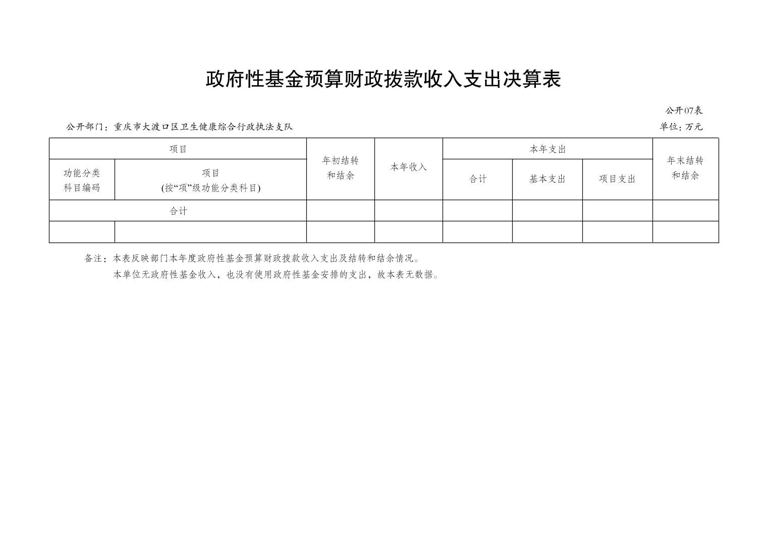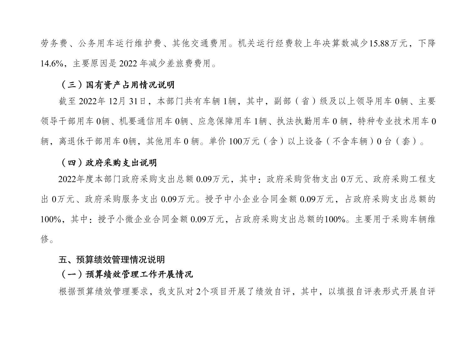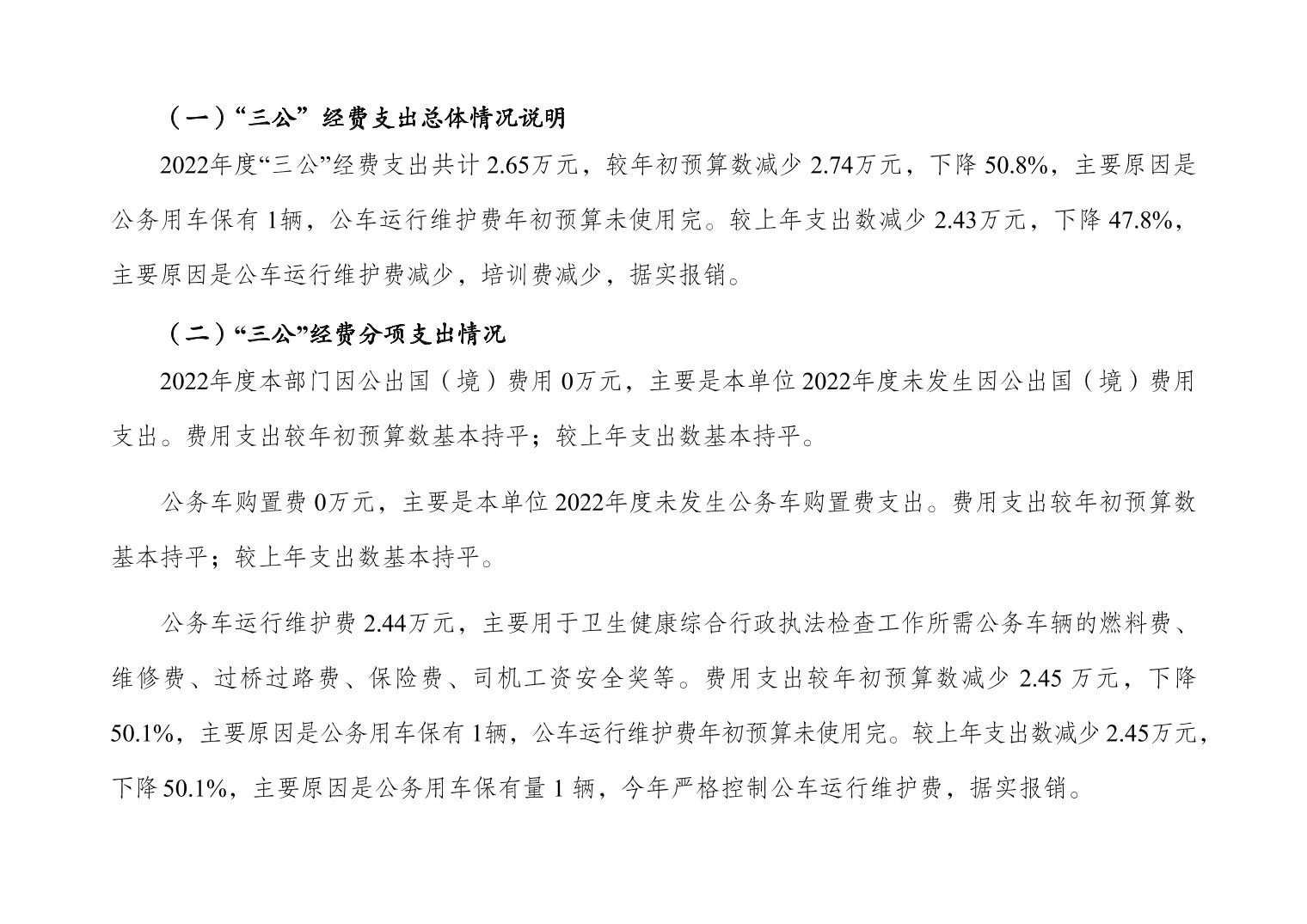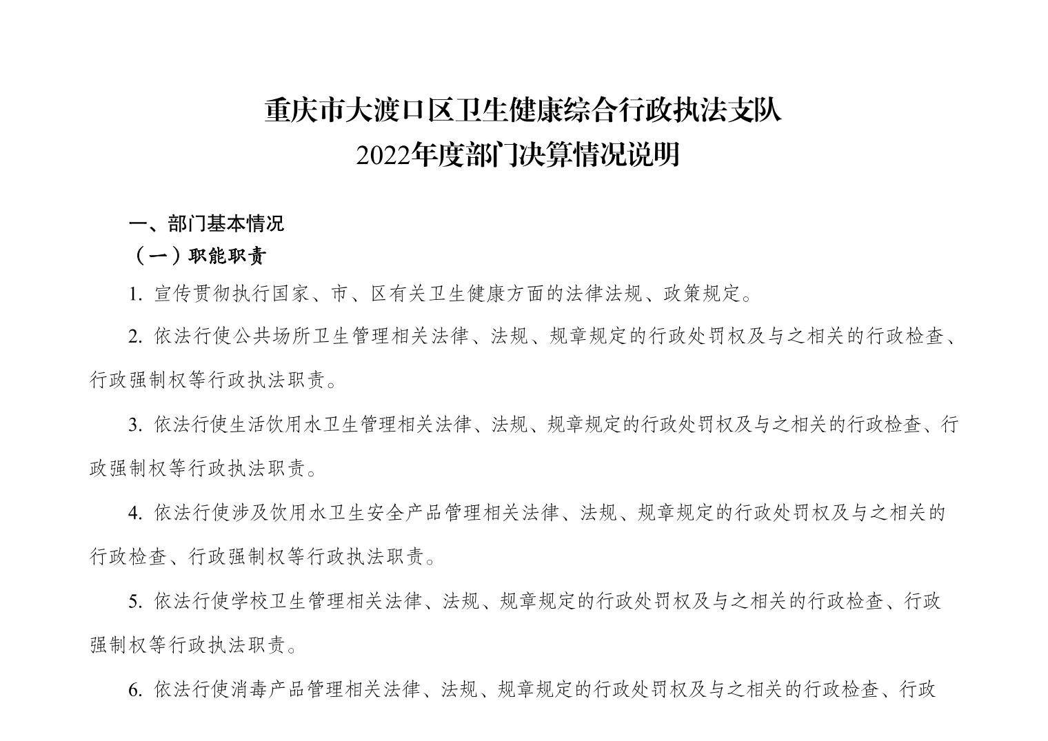 重庆市大渡口区卫生健康综合行政执法支队 2022 年度部门决算情况说明
