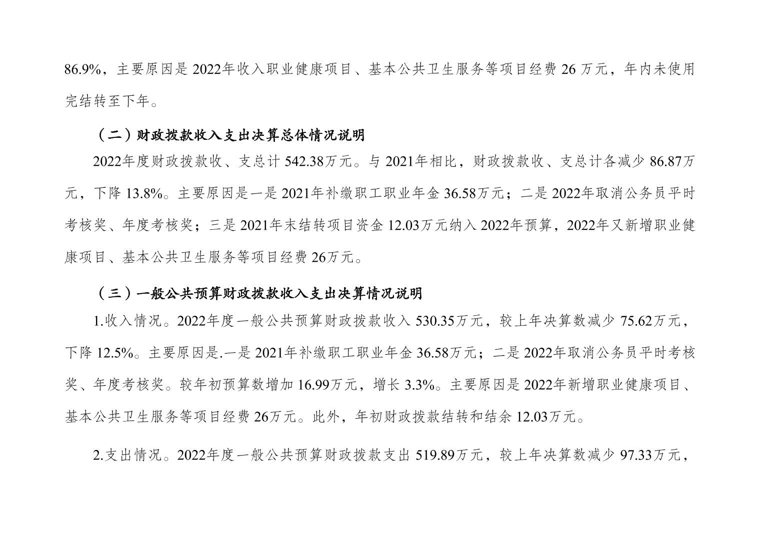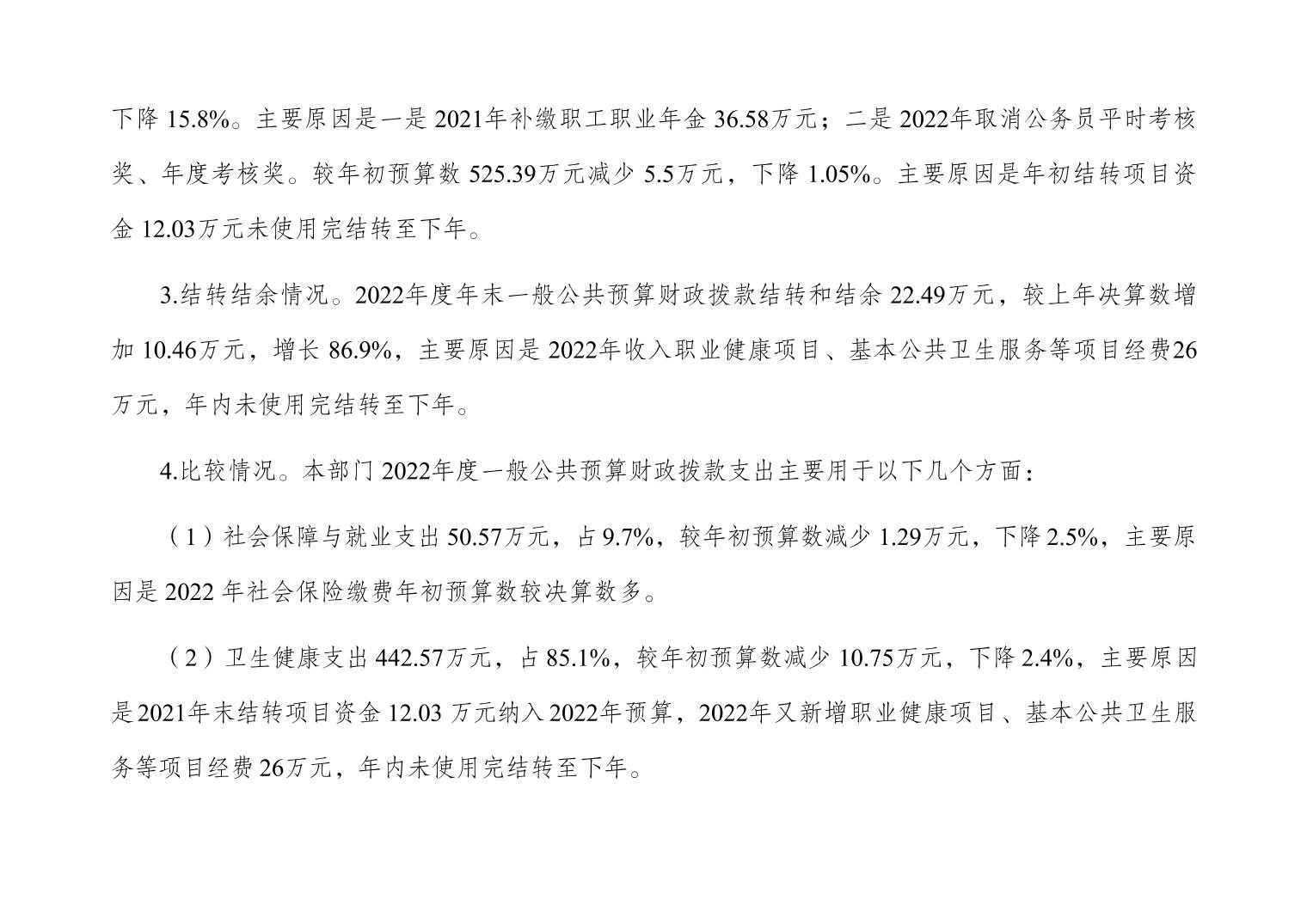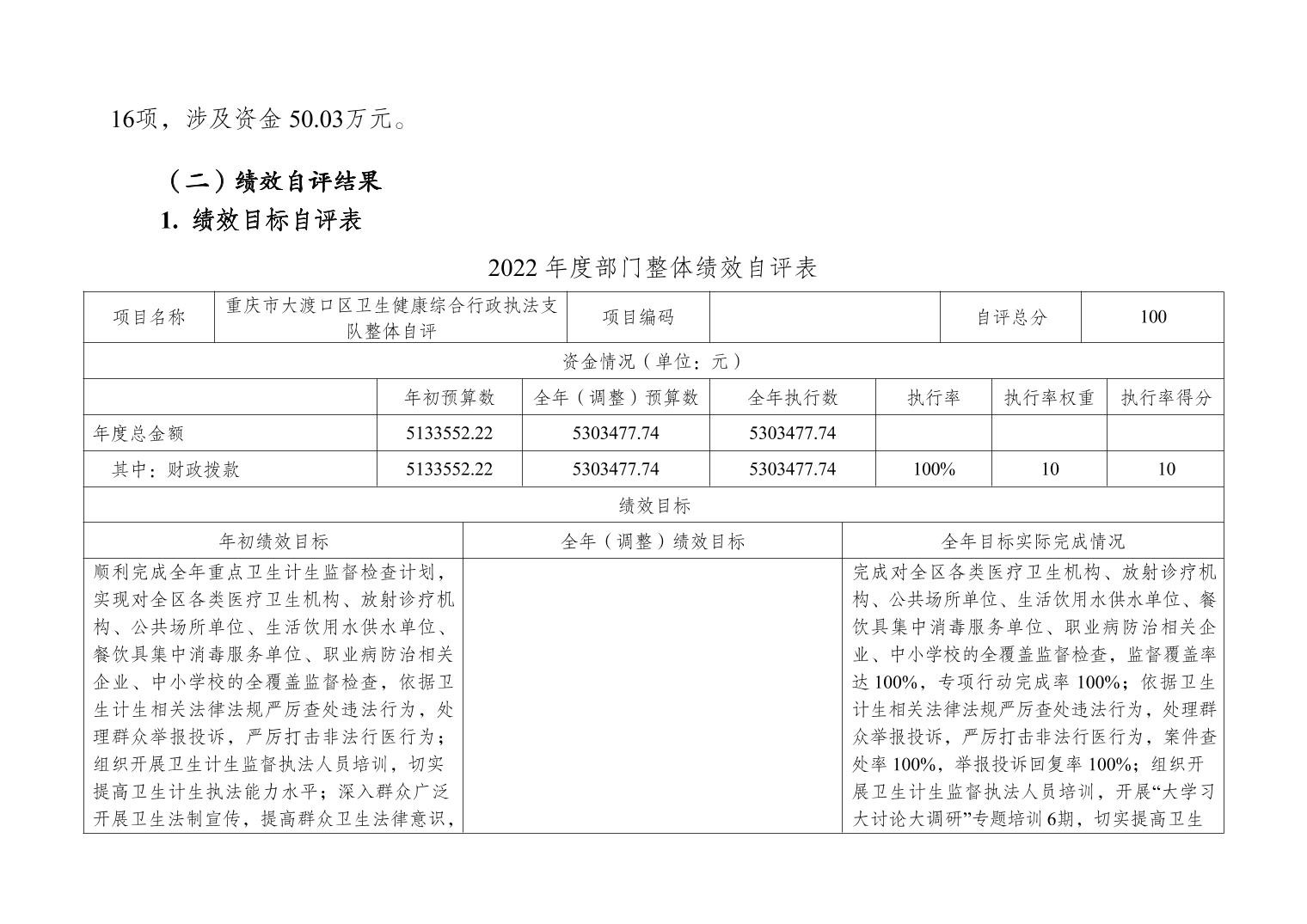 重庆市大渡口区卫生健康综合行政执法支队 2022 年度部门决算情况说明