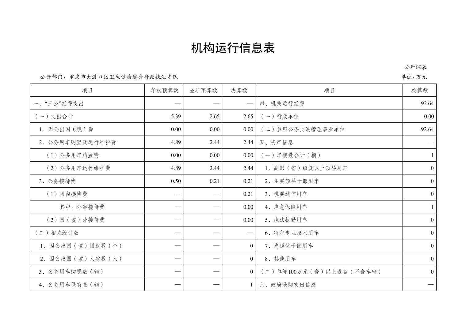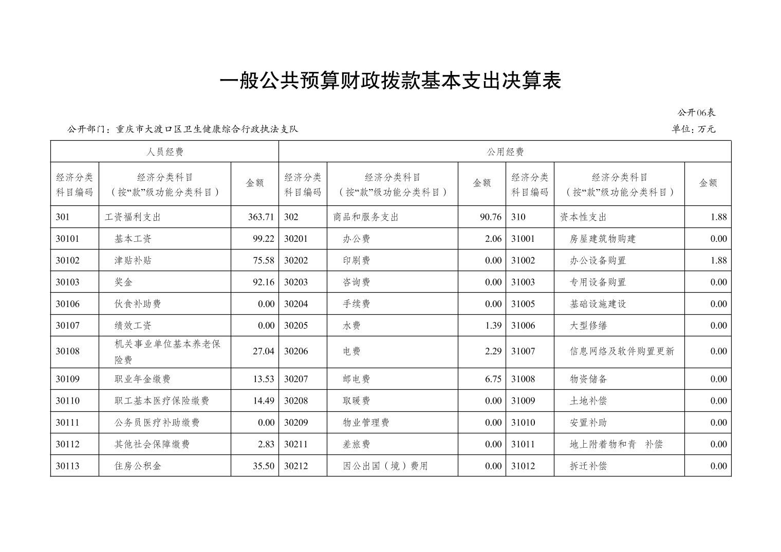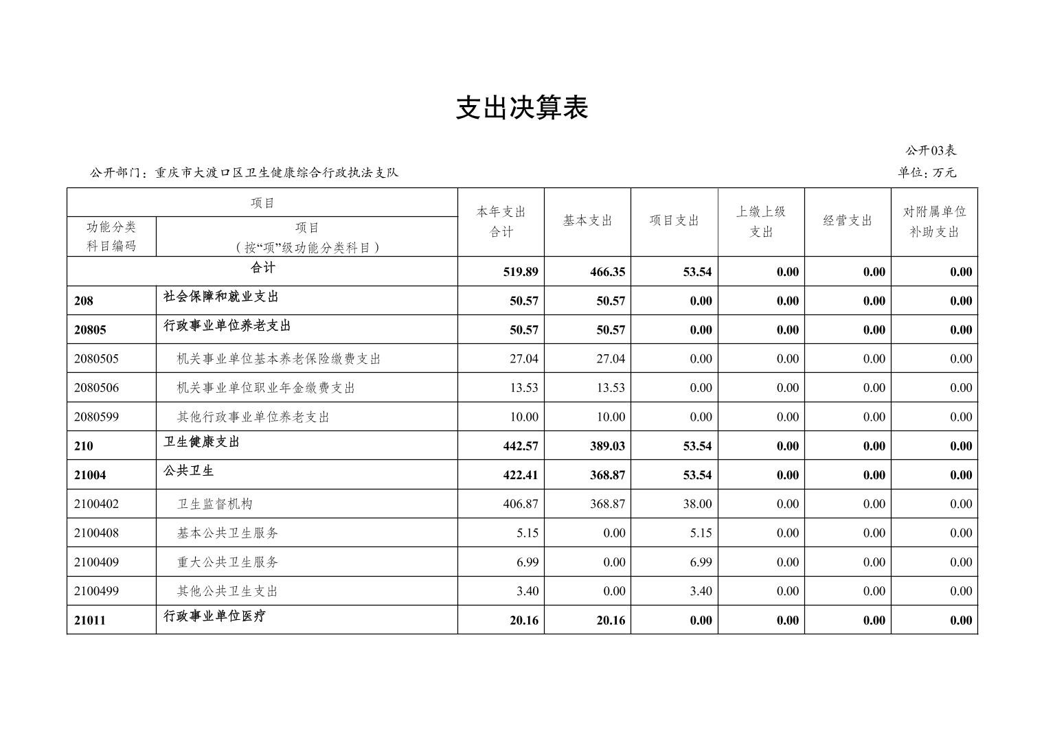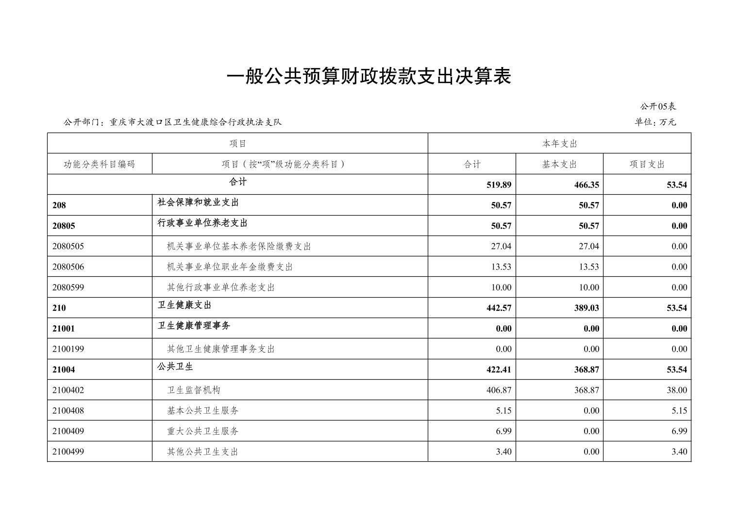 重庆市大渡口区卫生健康综合行政执法支队 2022 年度部门决算情况说明