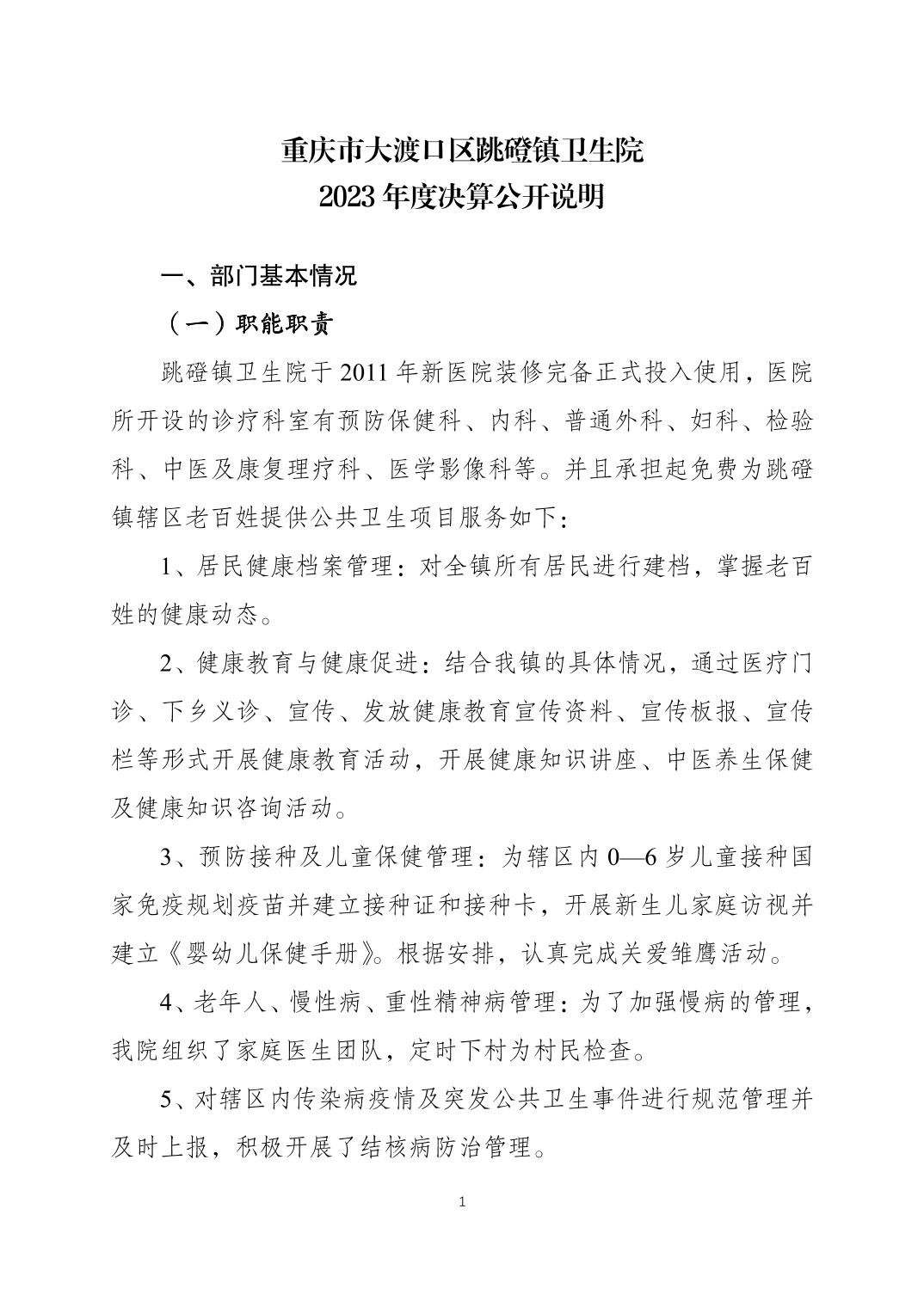 重庆市大渡口区跳磴镇卫生院2023年度决算公开说明