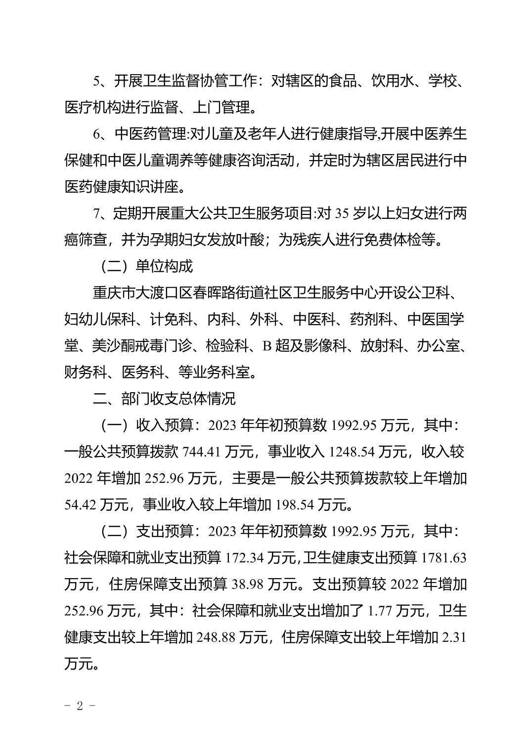 重庆市大渡口区春晖路街道社区卫生服务中心2023年部门预算情况说明