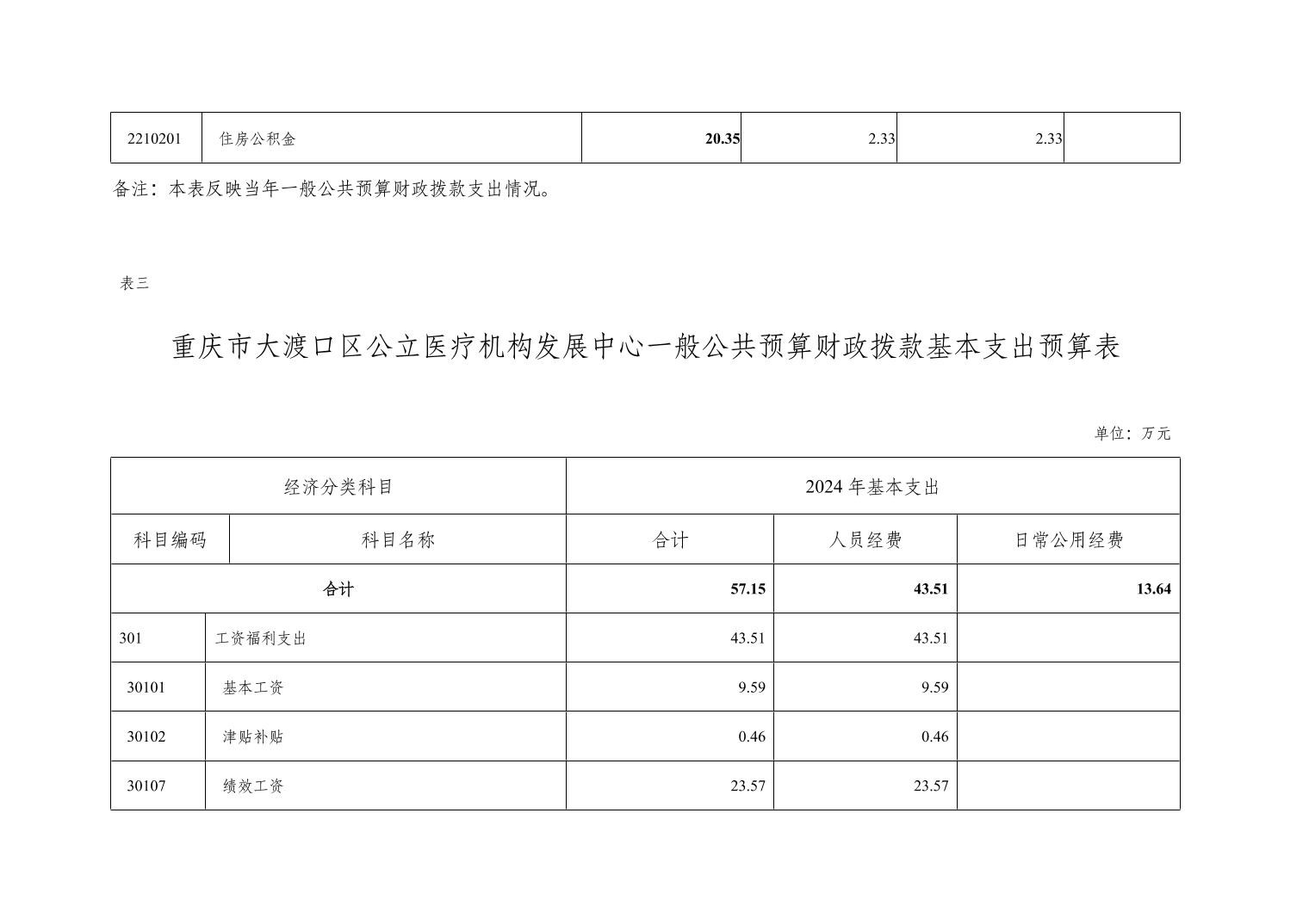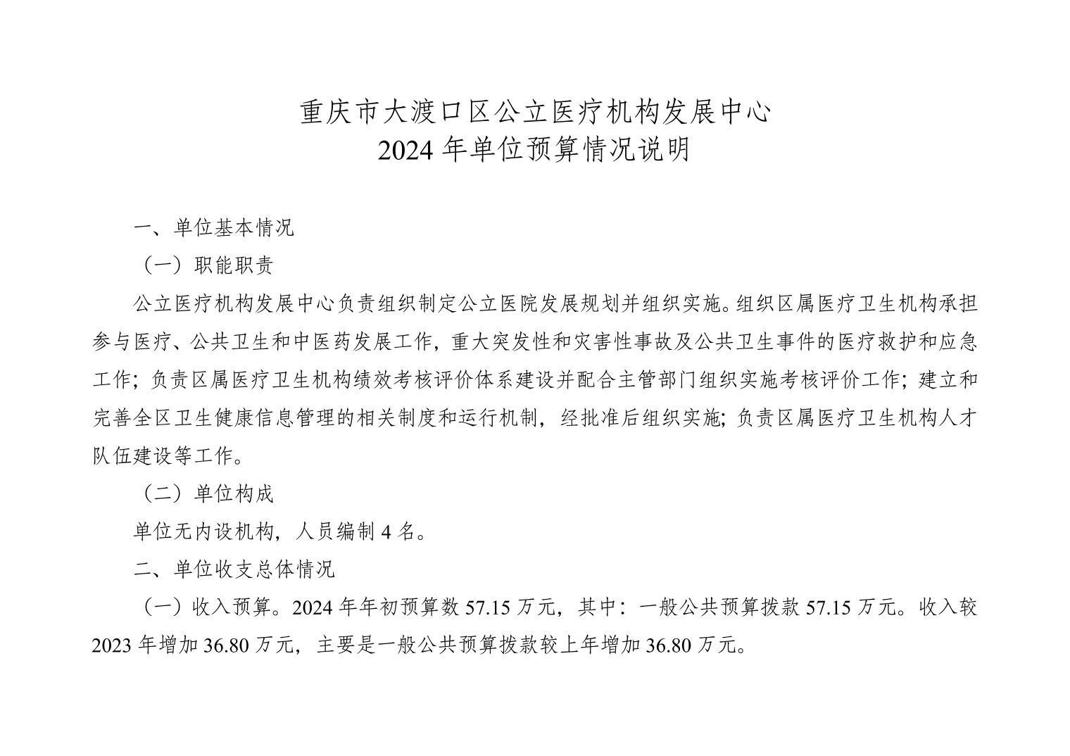 重庆市大渡口区公立医疗机构发展中心2024年单位预算情况说明