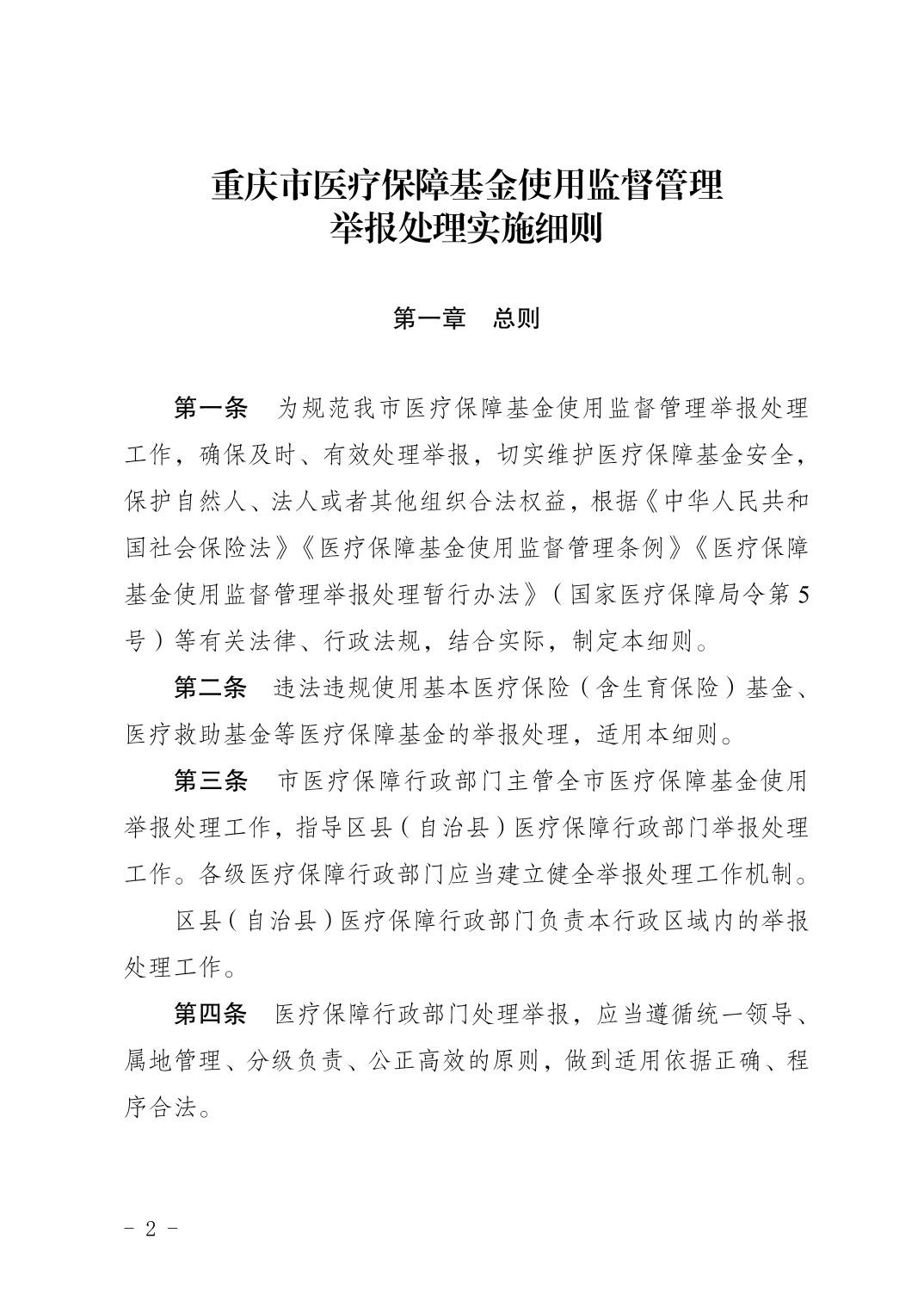 重庆市医疗保障局关于印发重庆市医疗保障基金使用监督管理举报处理实施细则的通知