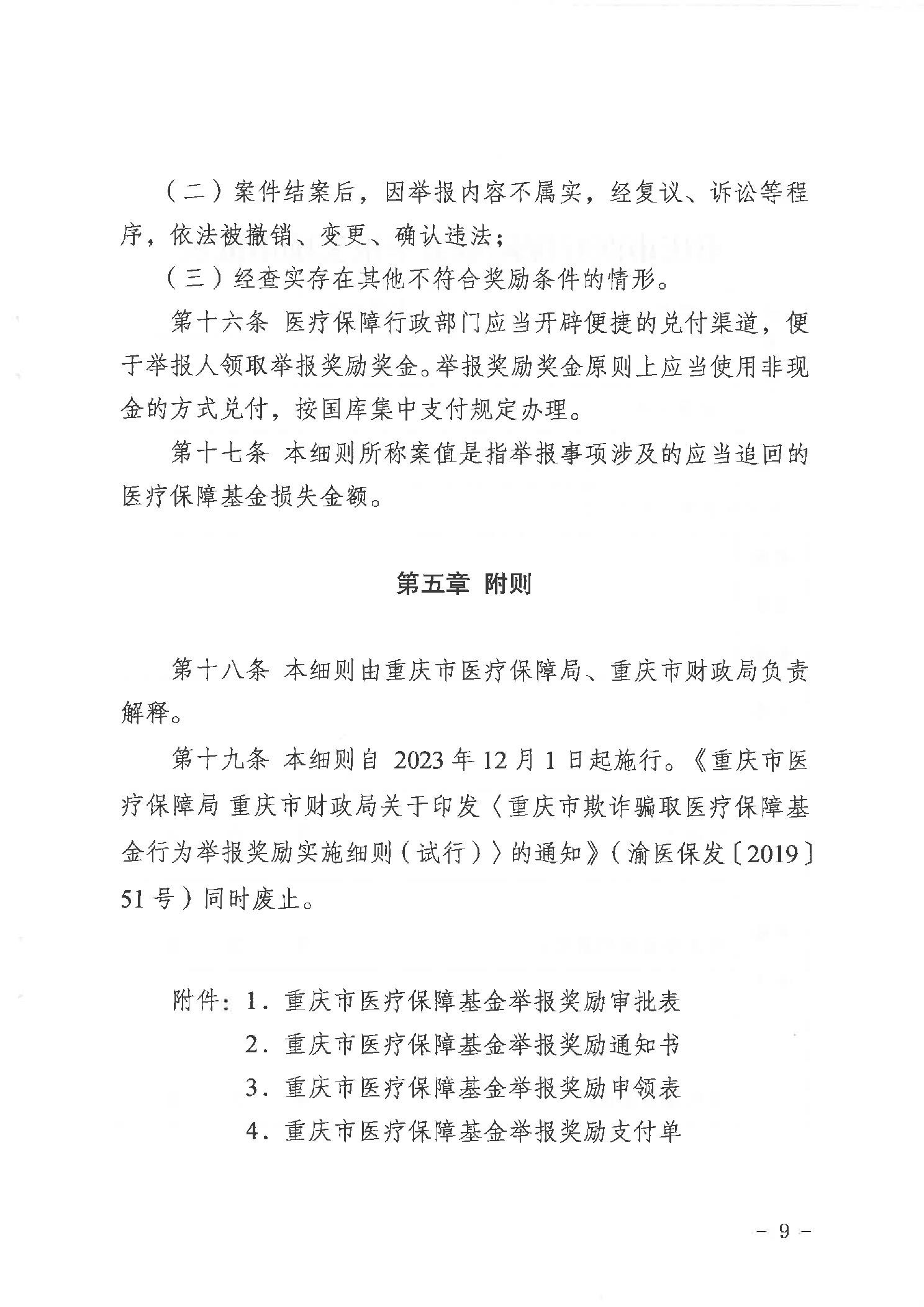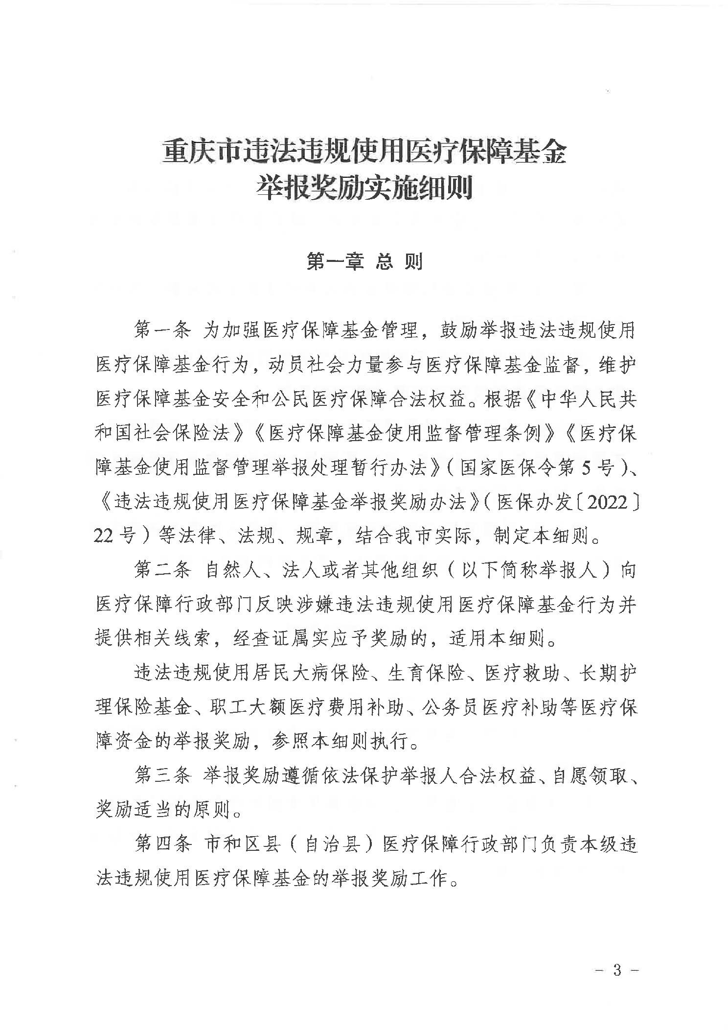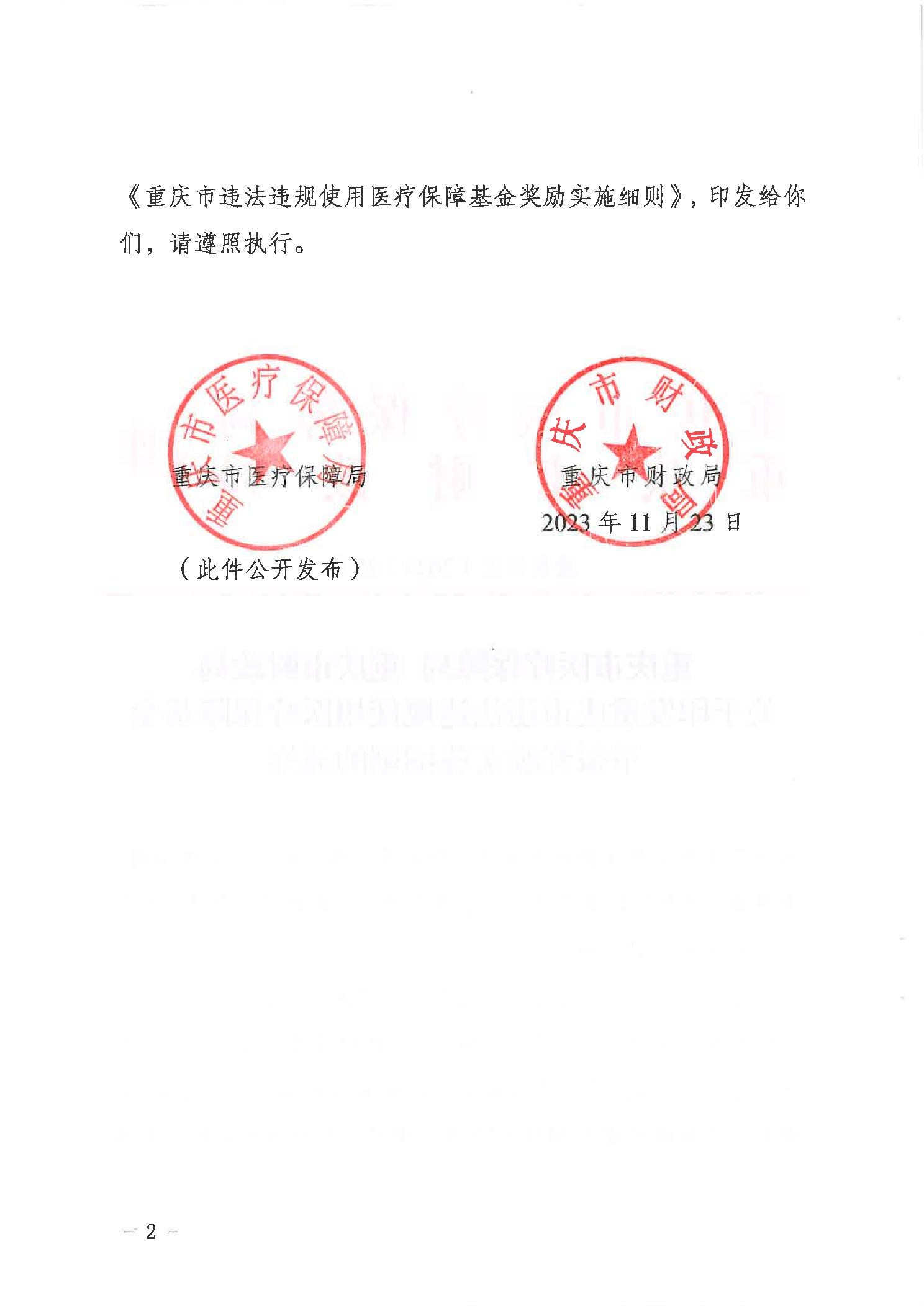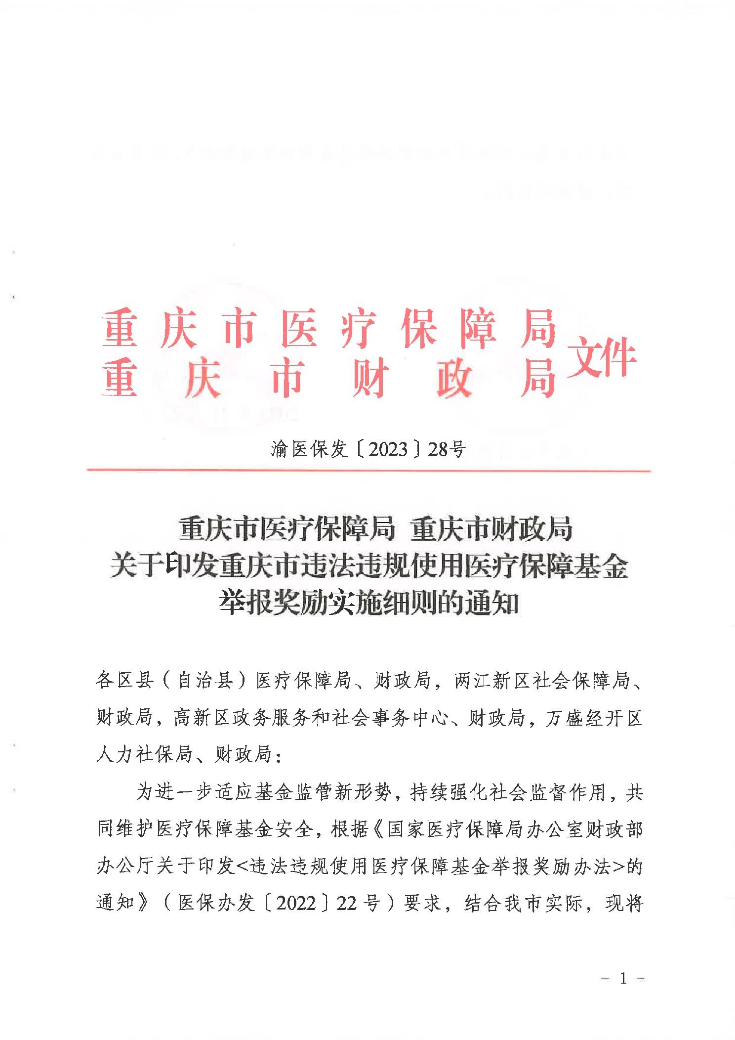重庆市医疗保障局重庆市财政局关于印发重庆市违法违规使用医疗保障基金举报奖励实施细则的通知