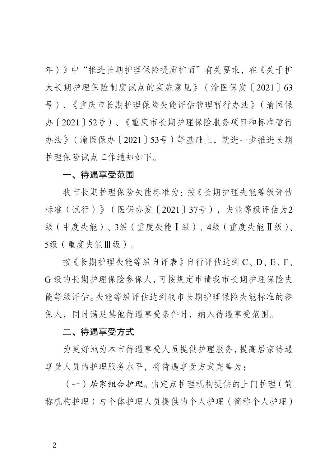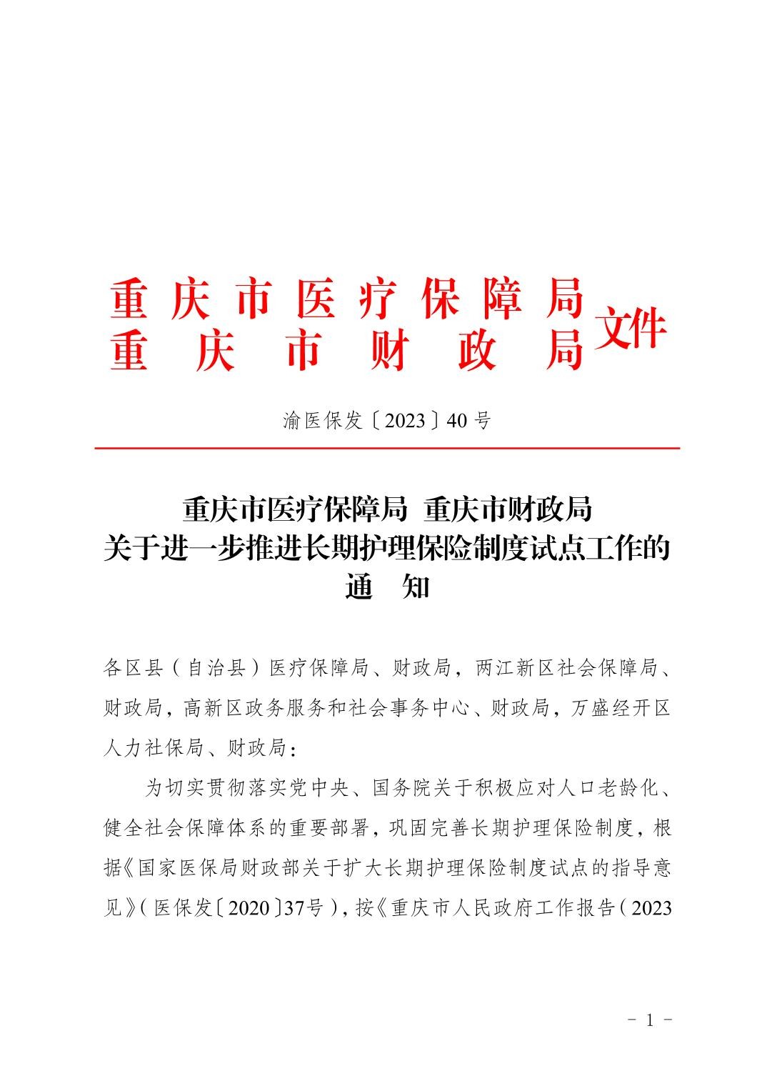 重庆市医疗保障局重庆市财政局关于进一步推进长期护理保险制度试点工作的通知