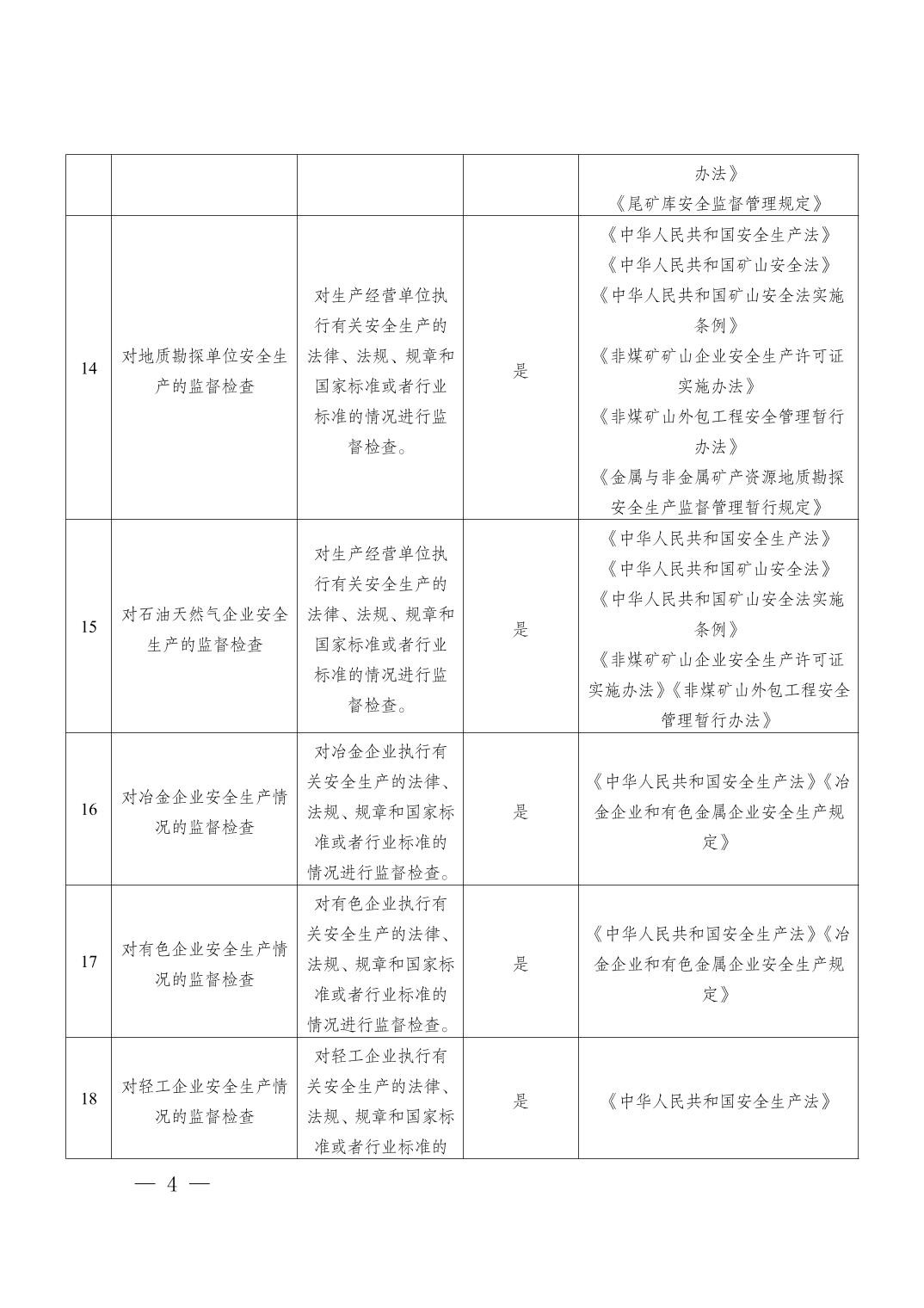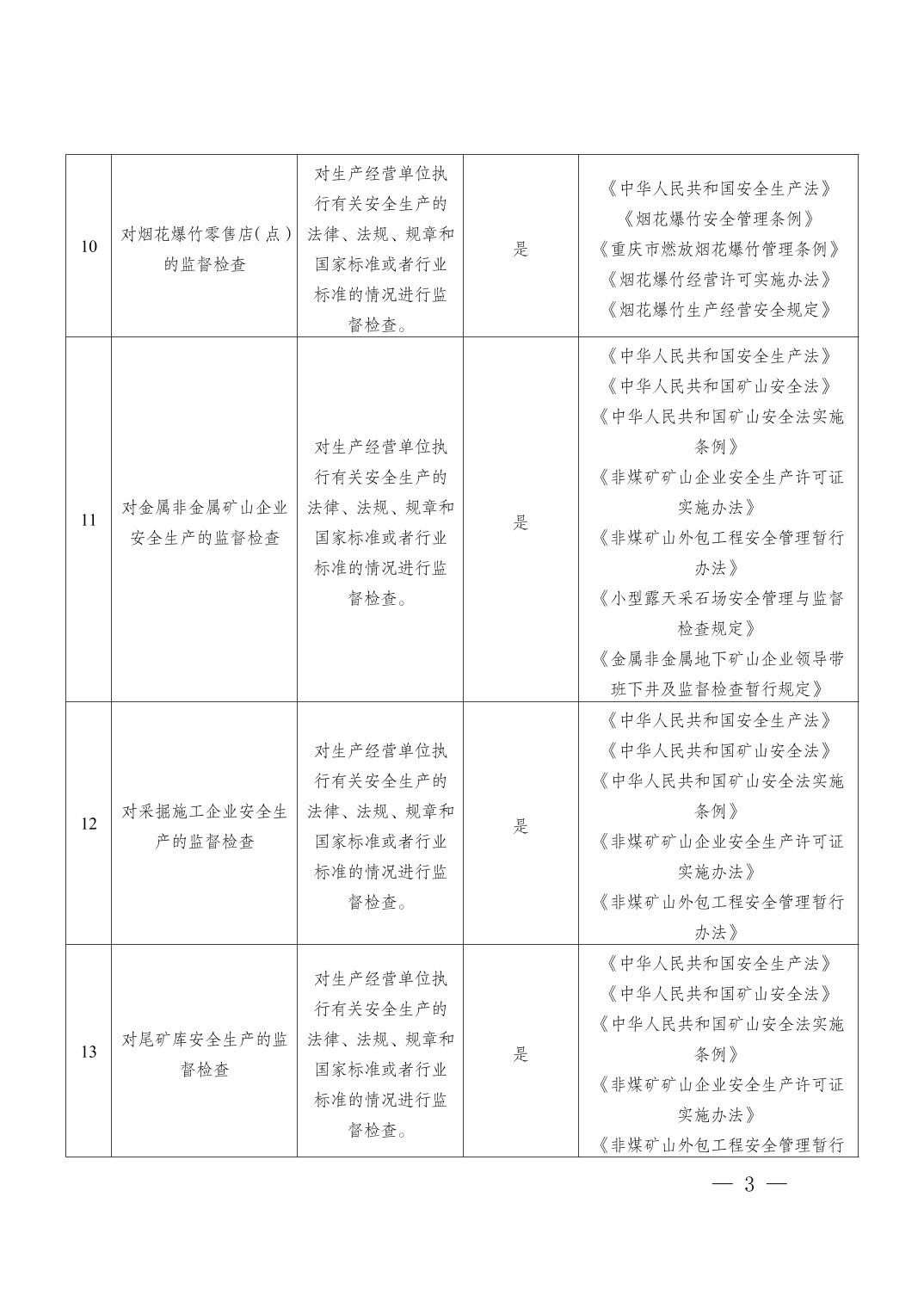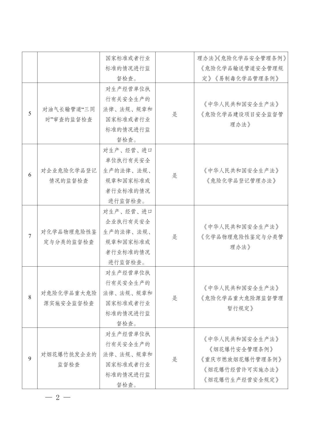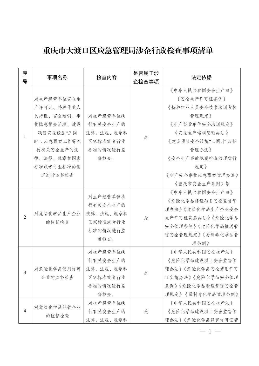 重庆市大渡口区应急管理局涉企行政检查事项清单