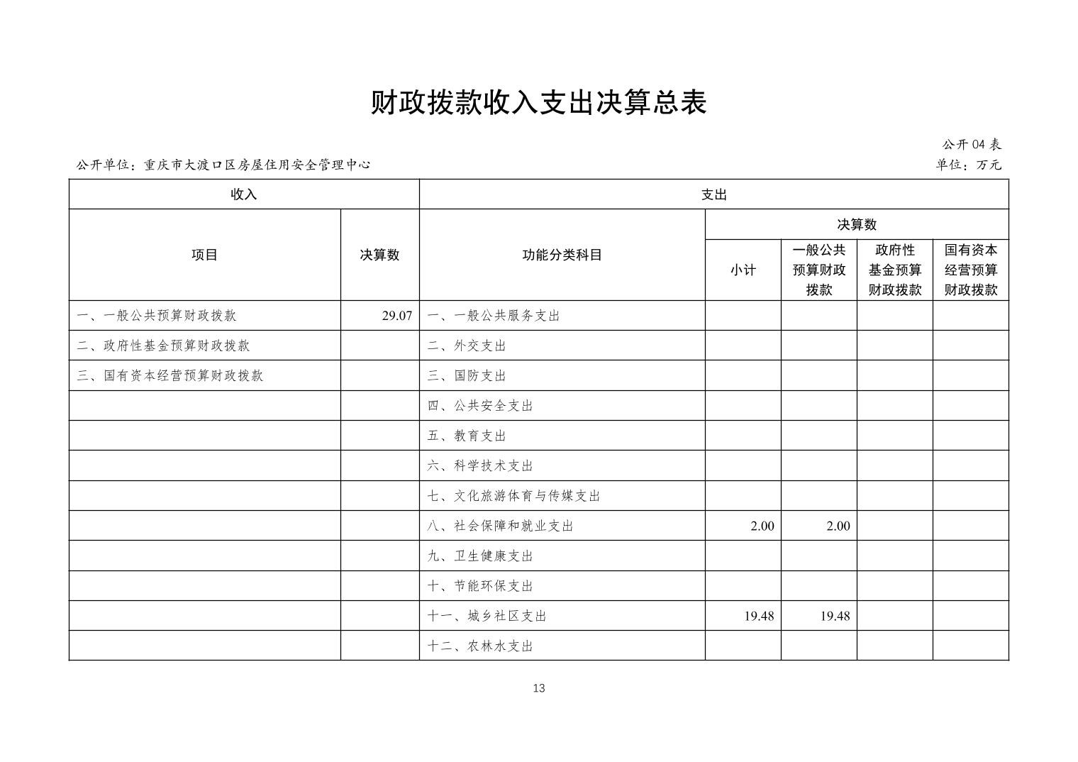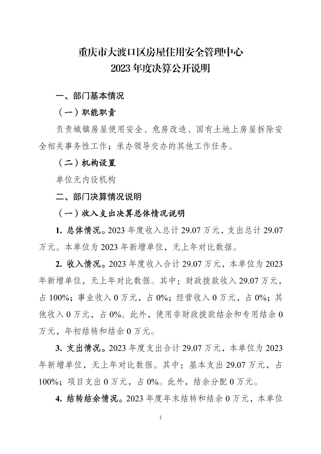 重庆市大渡口区房屋住用安全管理中心2023年度决算公开说明