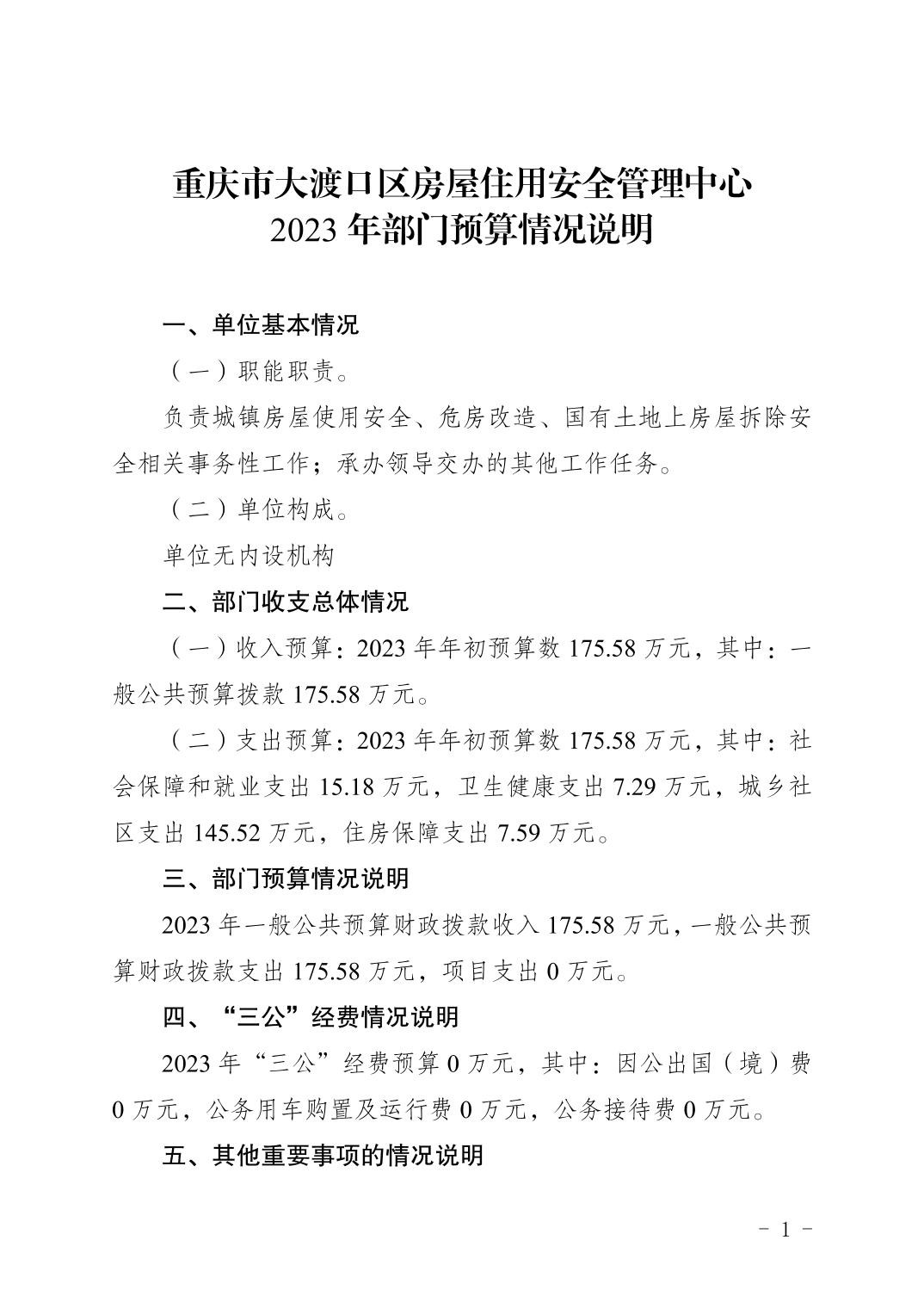 重庆市大渡口区房屋住用安全管理中心2023年部门预算情况说明