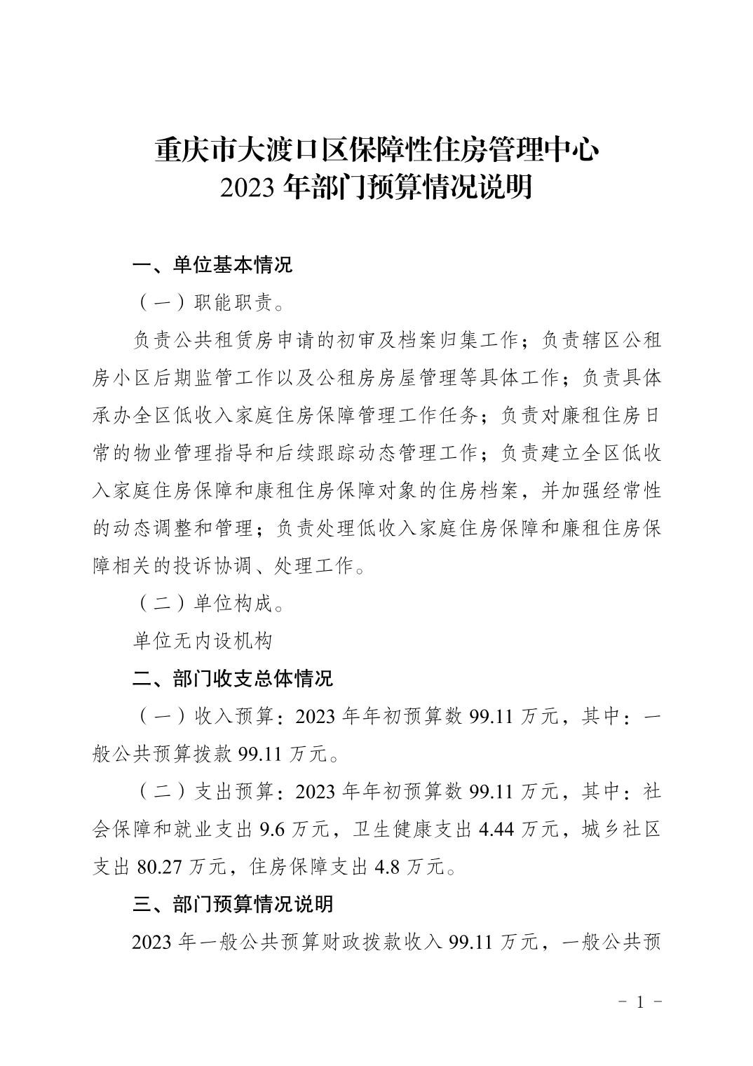 重庆市大渡口区保障性住房管理中心2023年部门预算情况说明