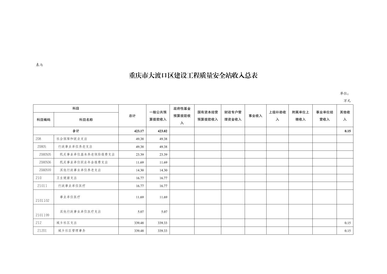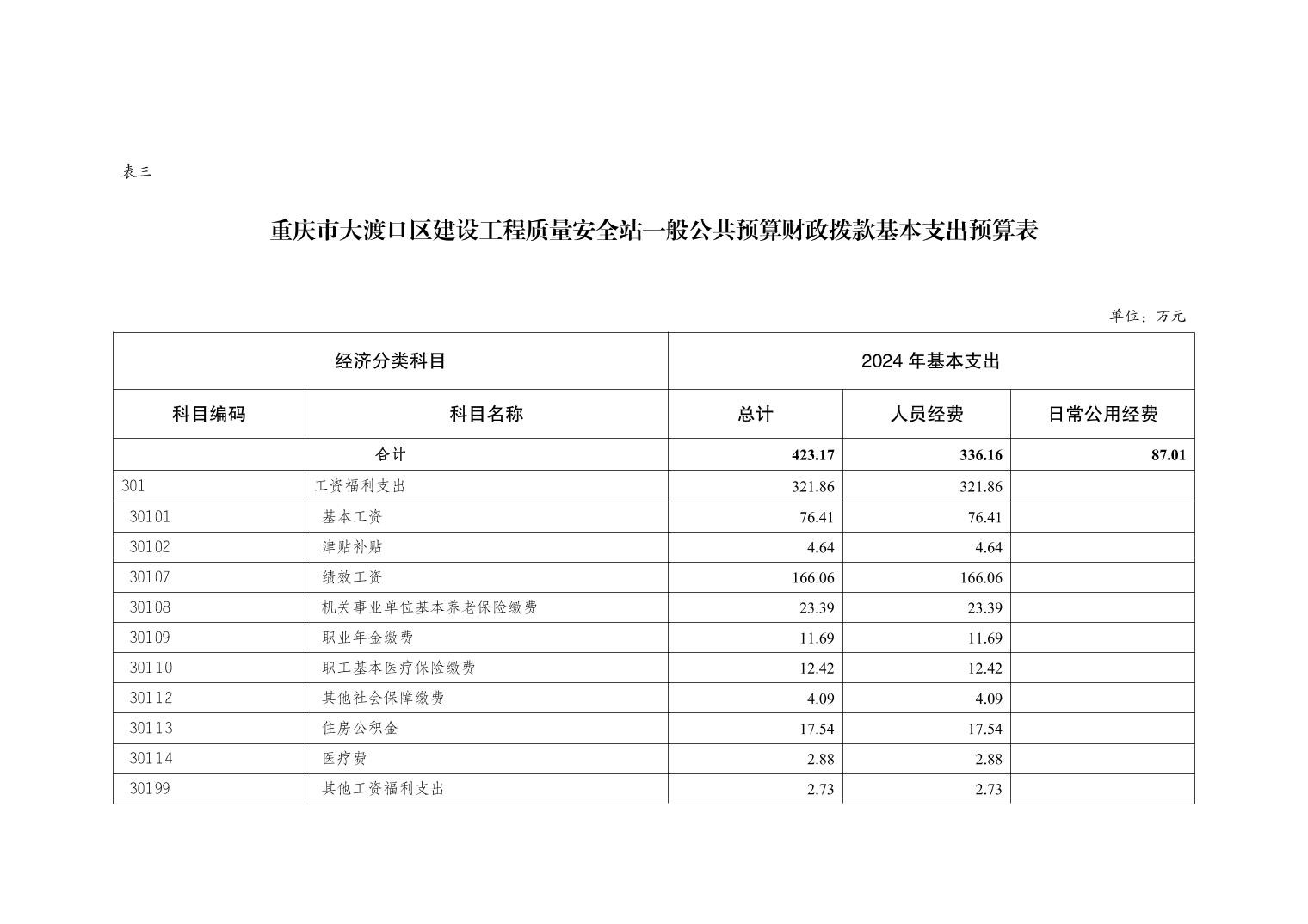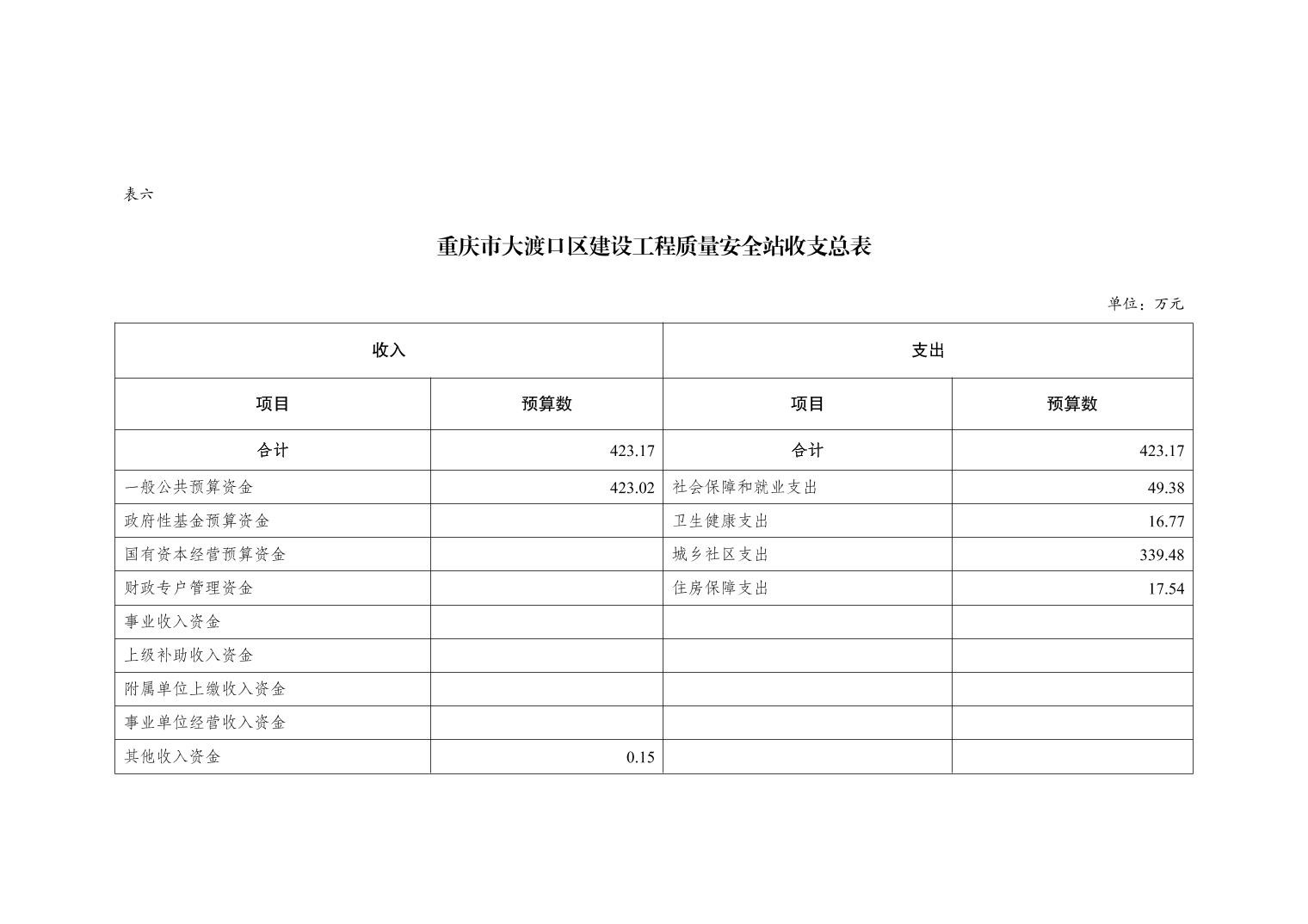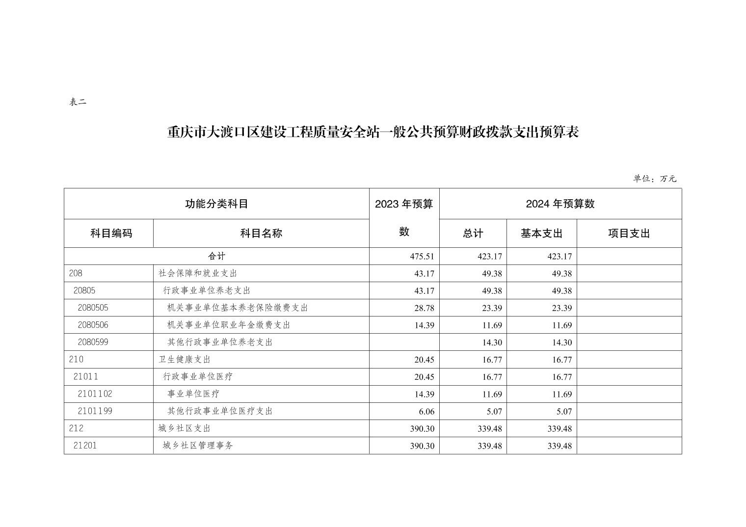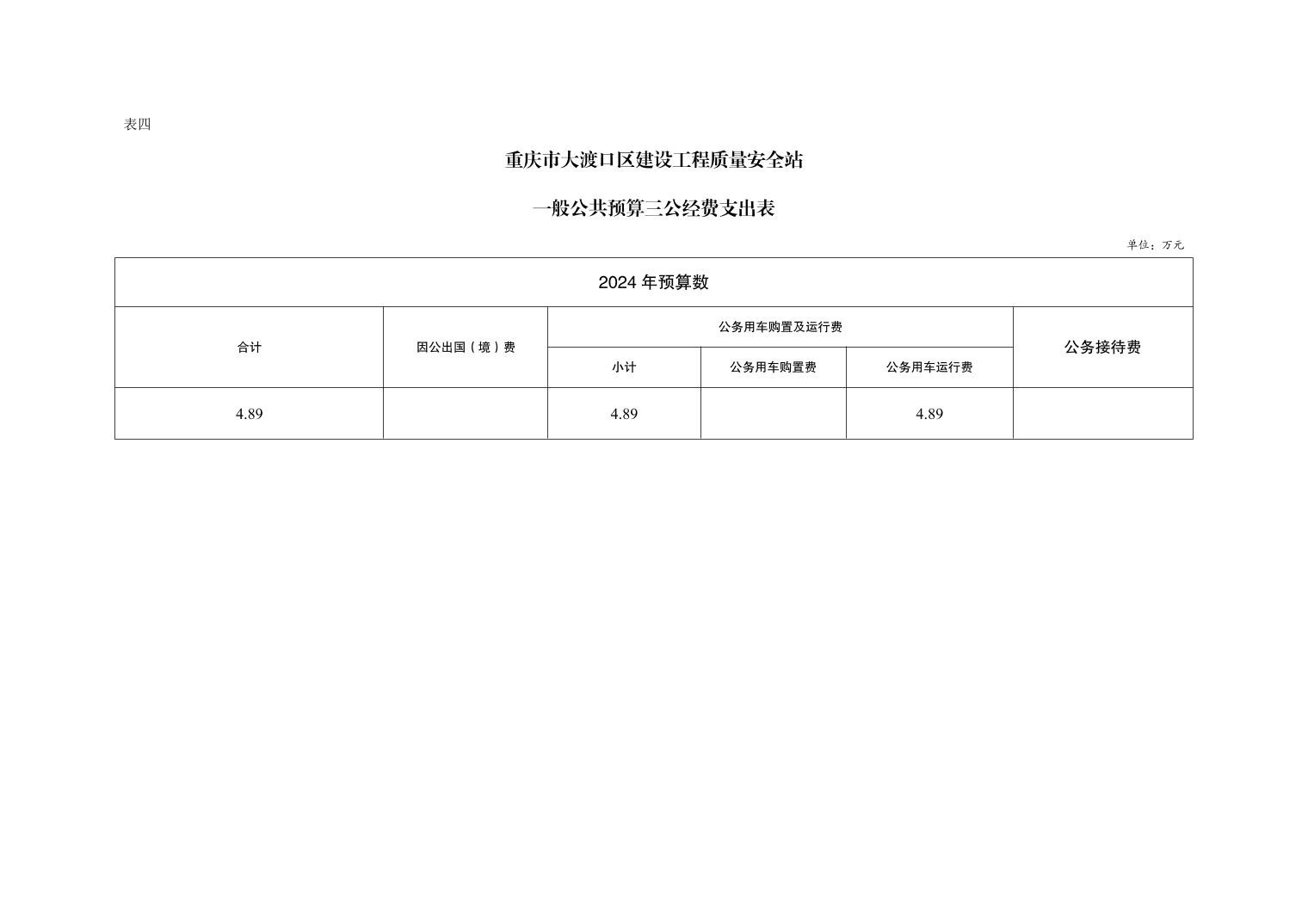 重庆市大渡口区建设工程质量安全站2024年预算情况说明