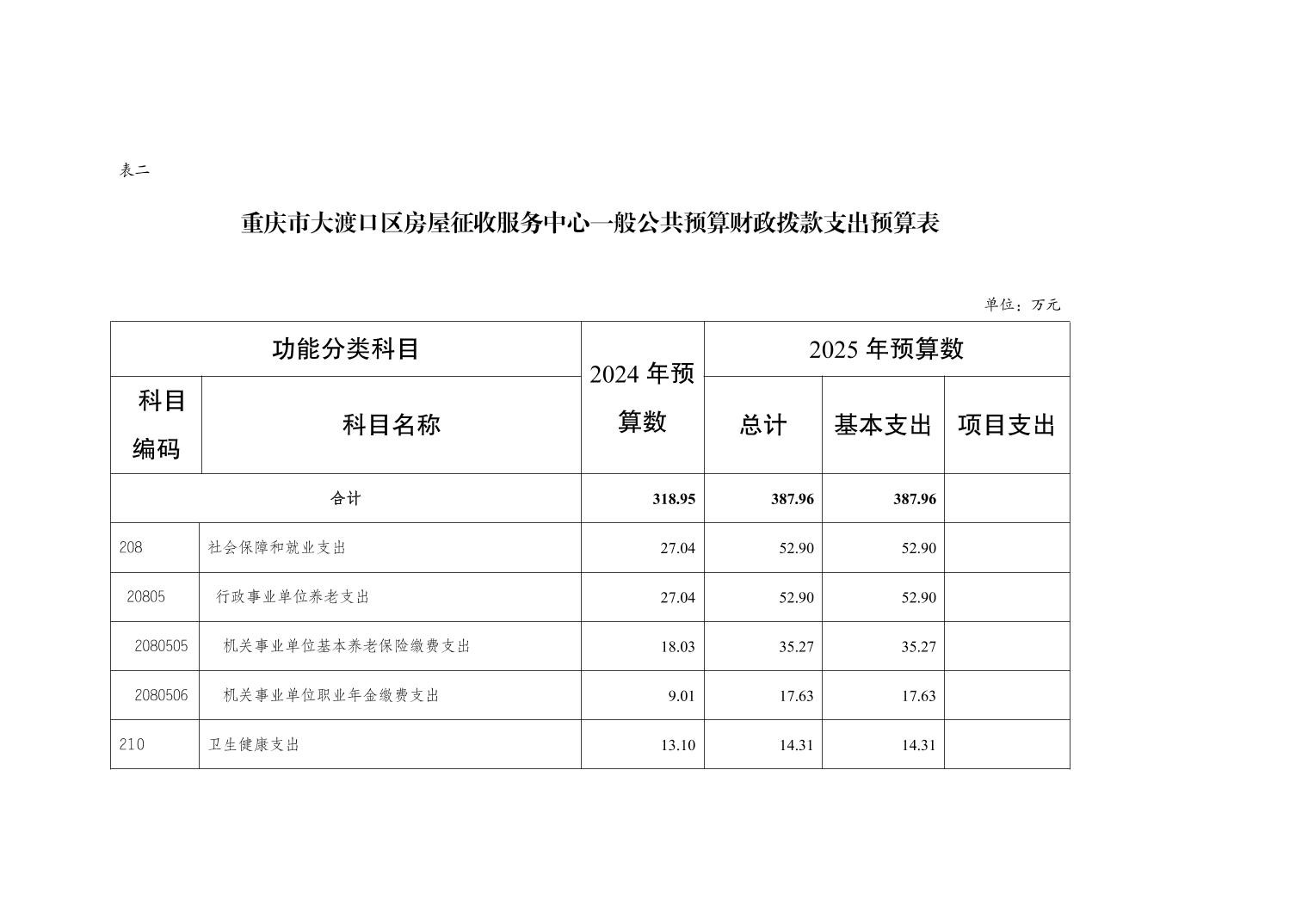 重庆市大渡口区房屋征收服务中心2025年单位预算情况说明