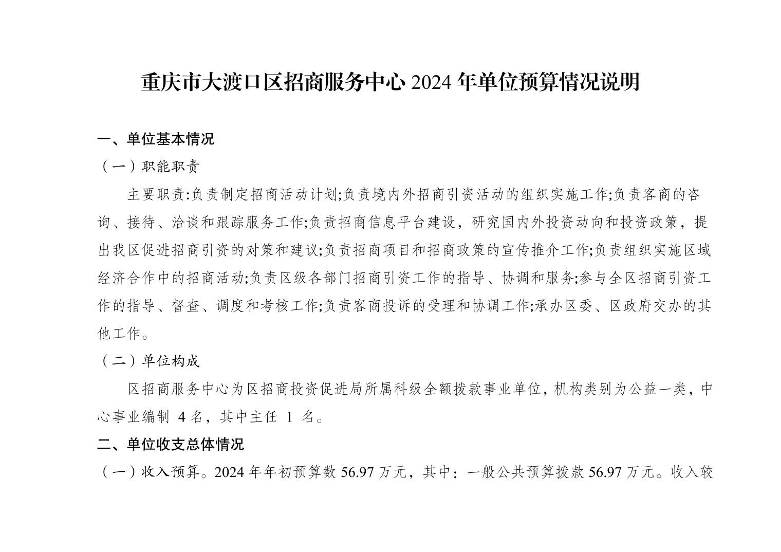 重庆市大渡口区招商服务中心2024年单位预算情况说明