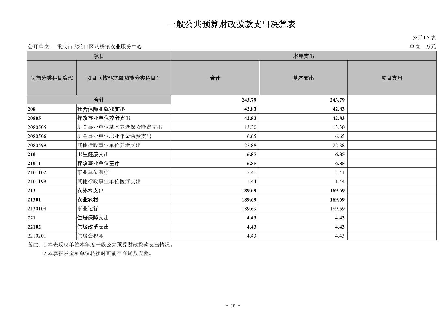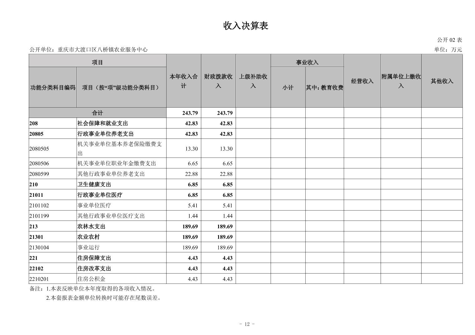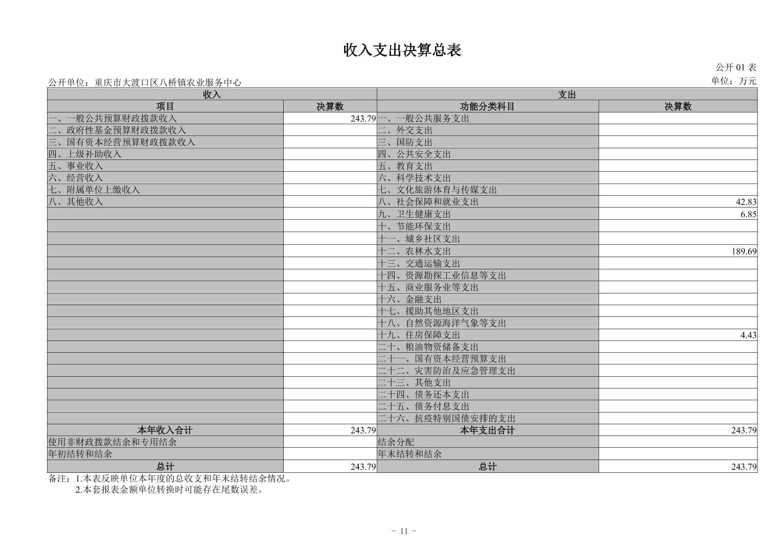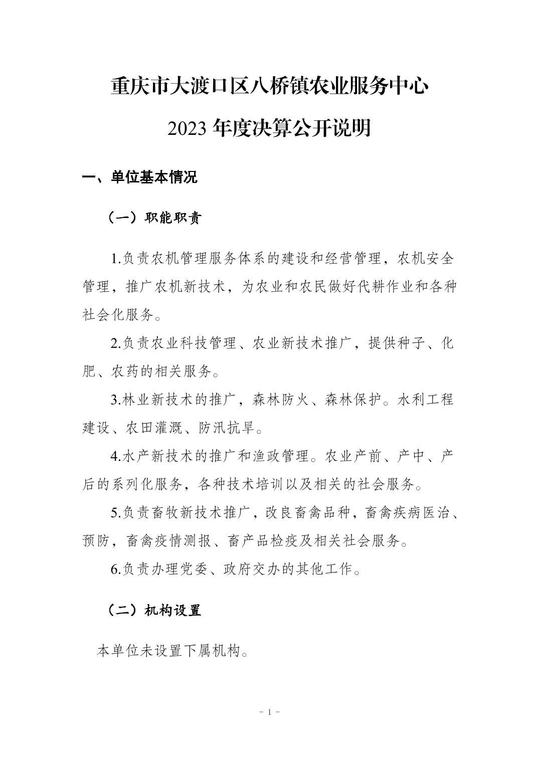重庆市大渡口区八桥镇农业服务中心2023年度决算公开说明
