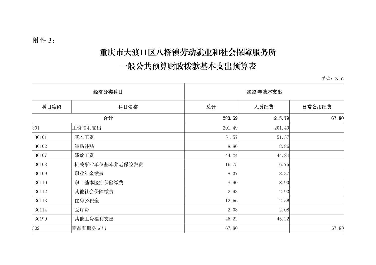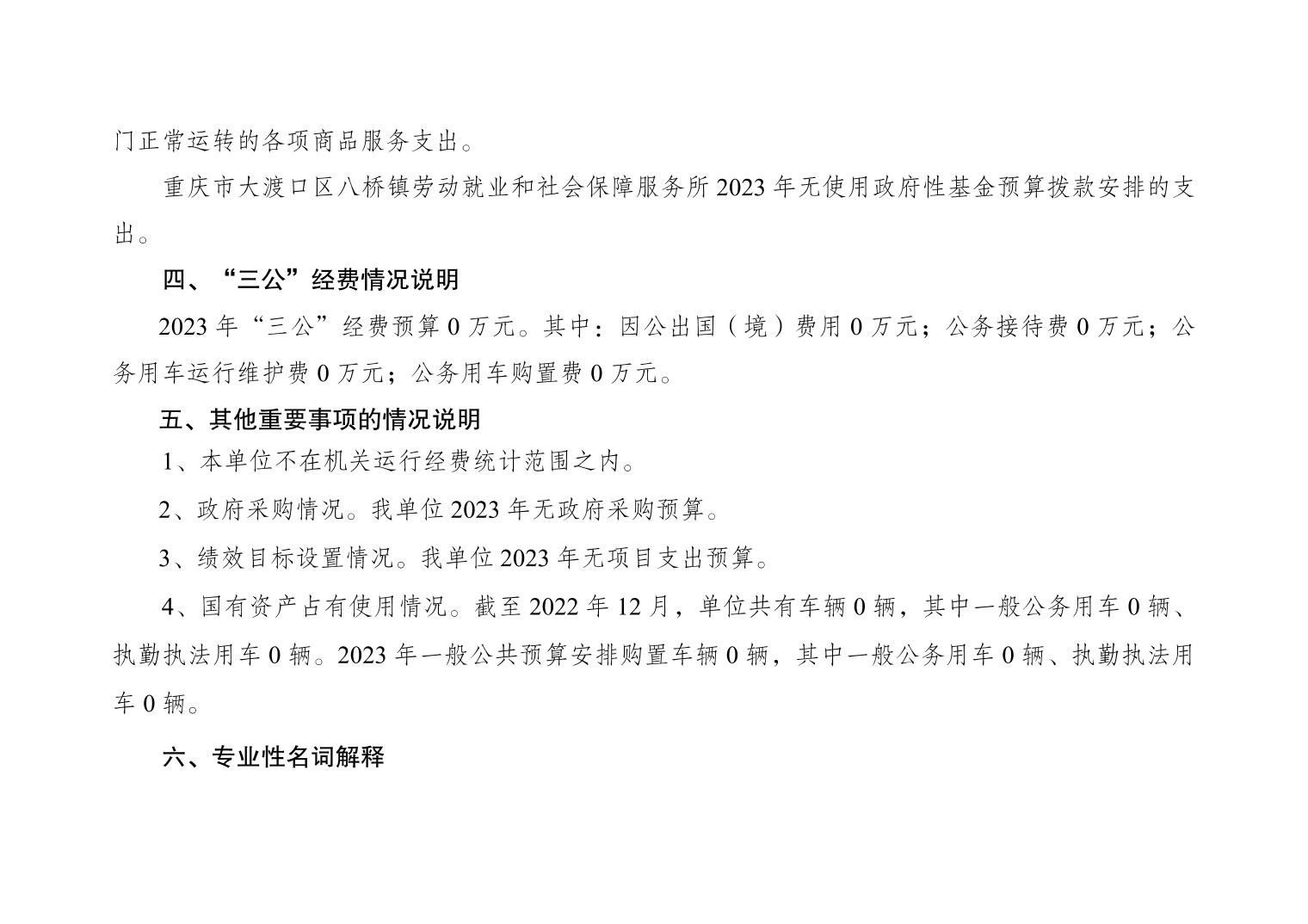 重庆市大渡口区八桥镇劳动就业和社会保障服务所2023年单位预算情况说明