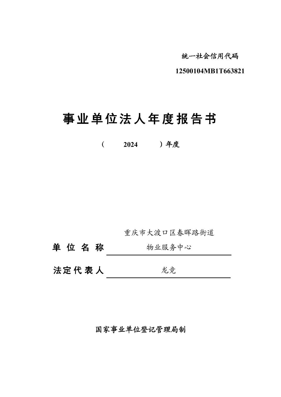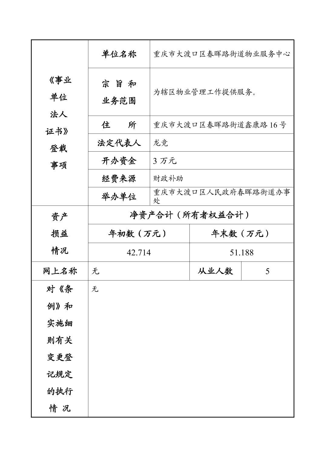 重庆市大渡口区春晖路街道物业服务中心事业单位法人年度报告书
