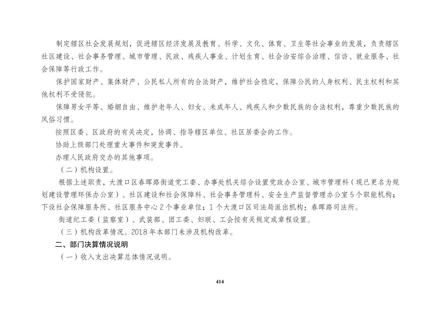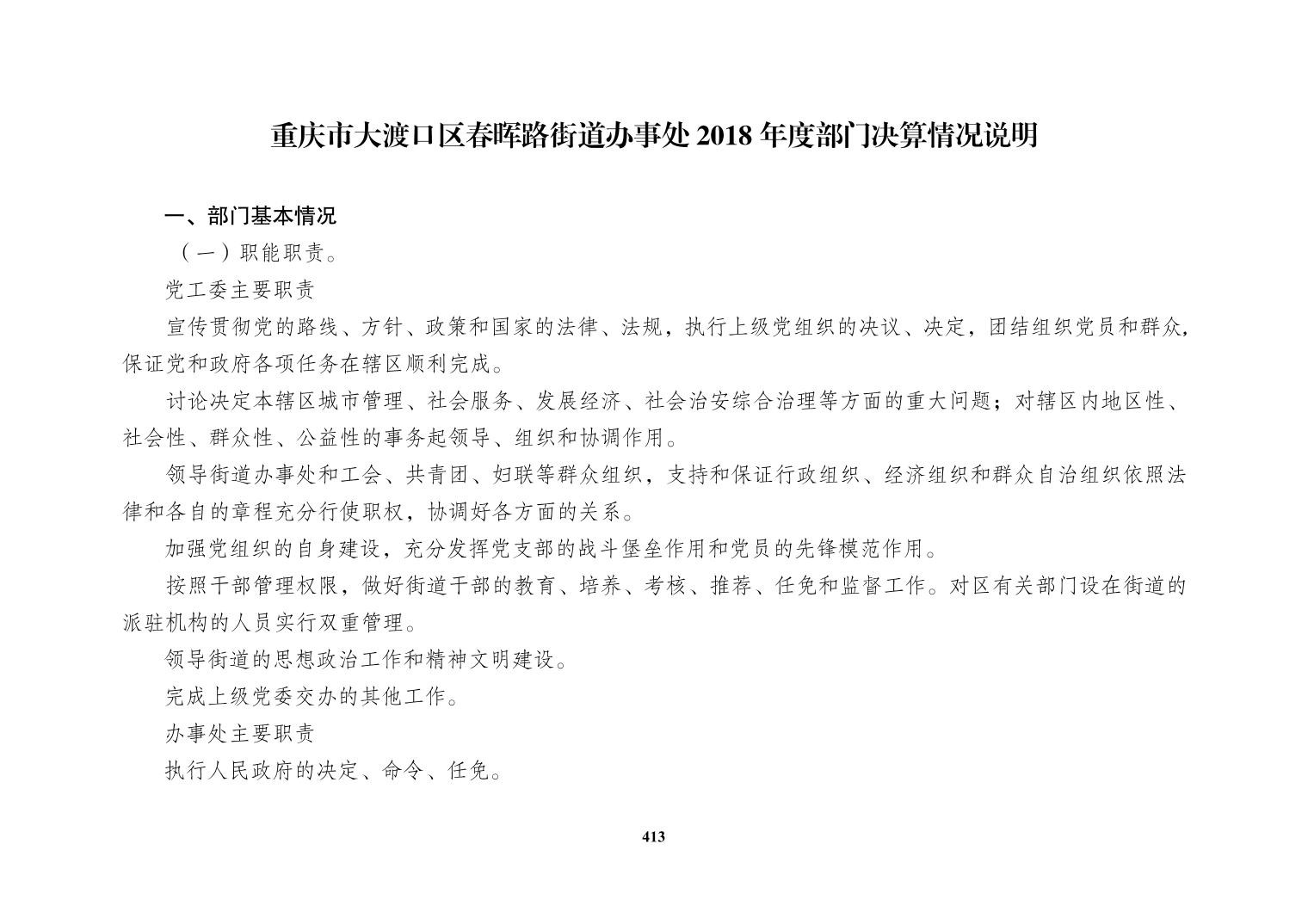 重庆市大渡口区春晖路街道办事处2018年度部门决算情况说明