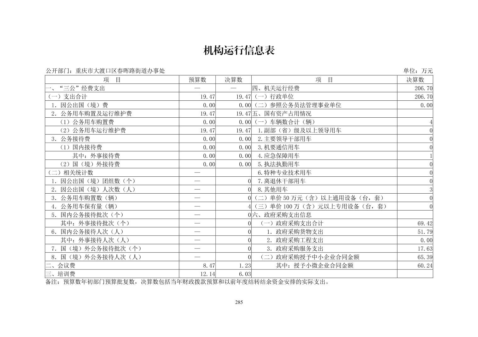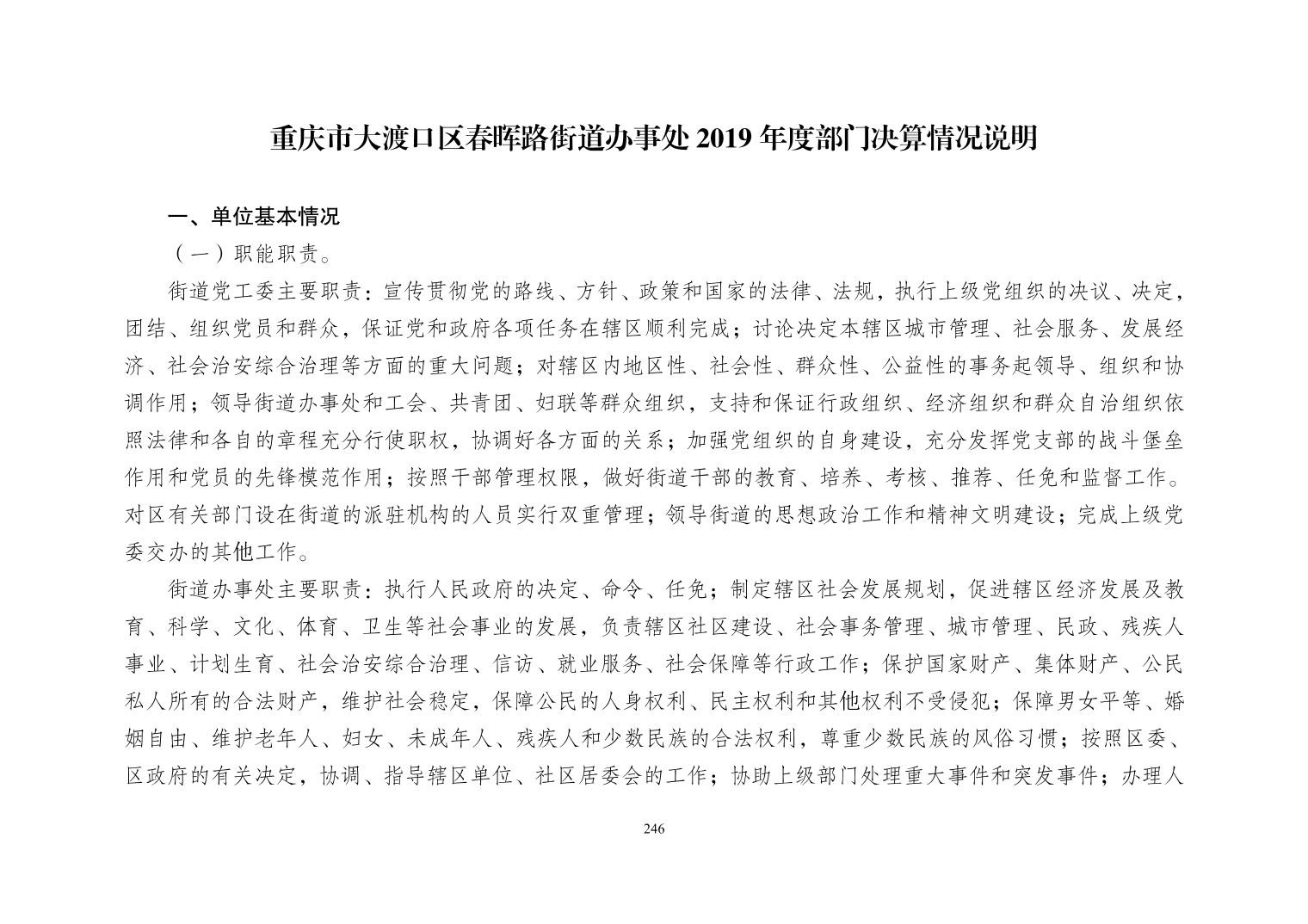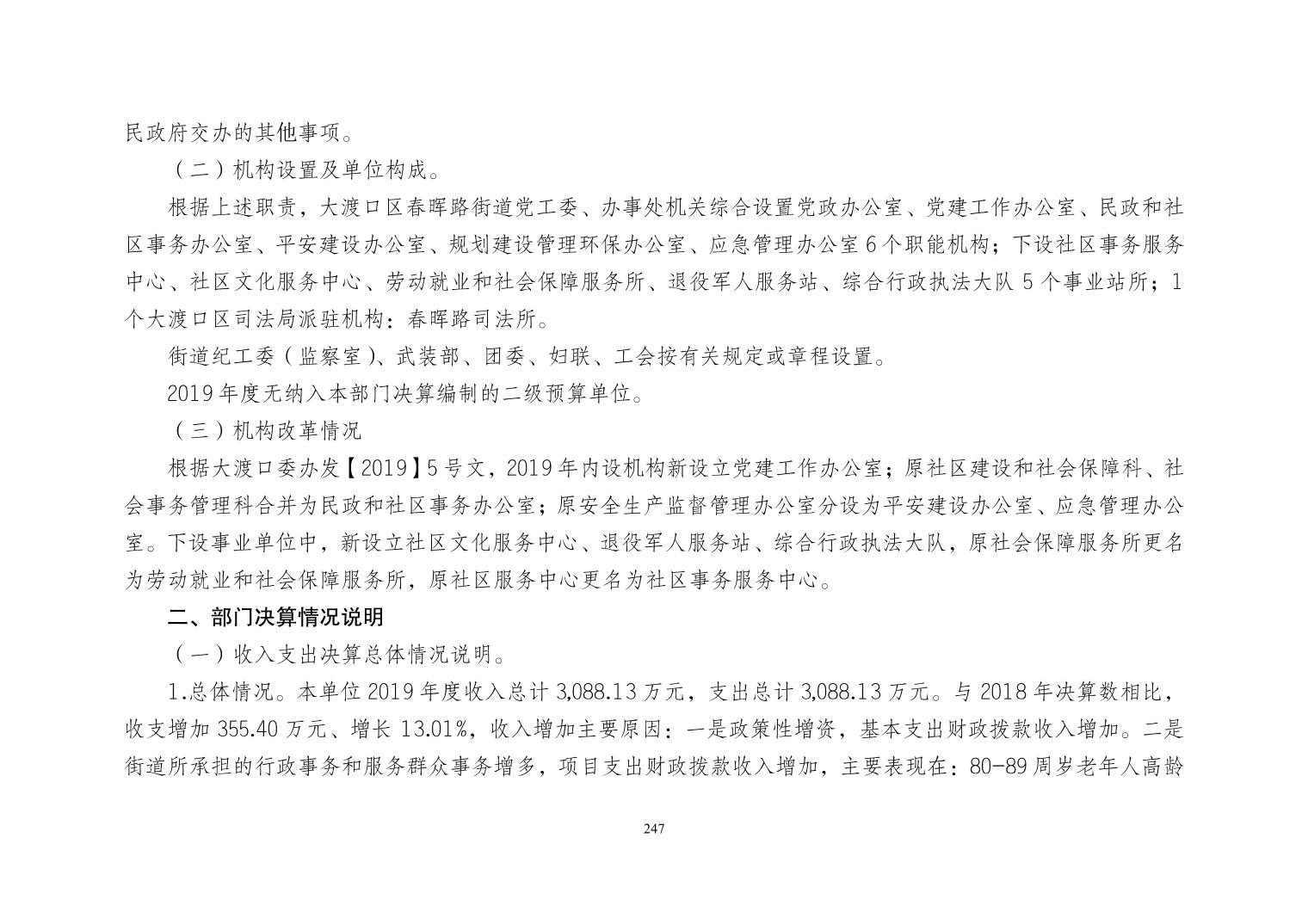 重庆市大渡口区春晖路街道办事处 2019 年度部门决算情况说明