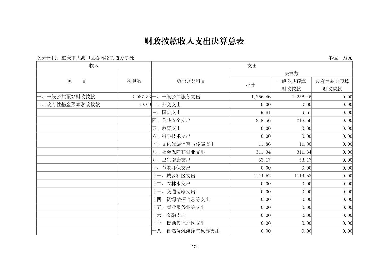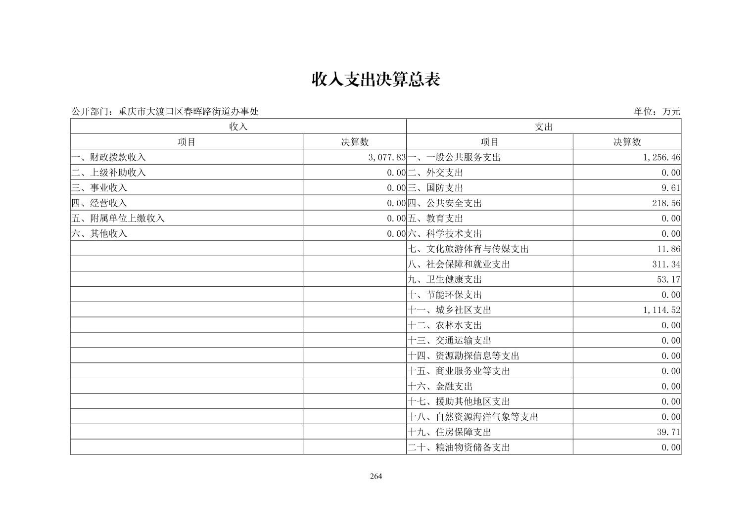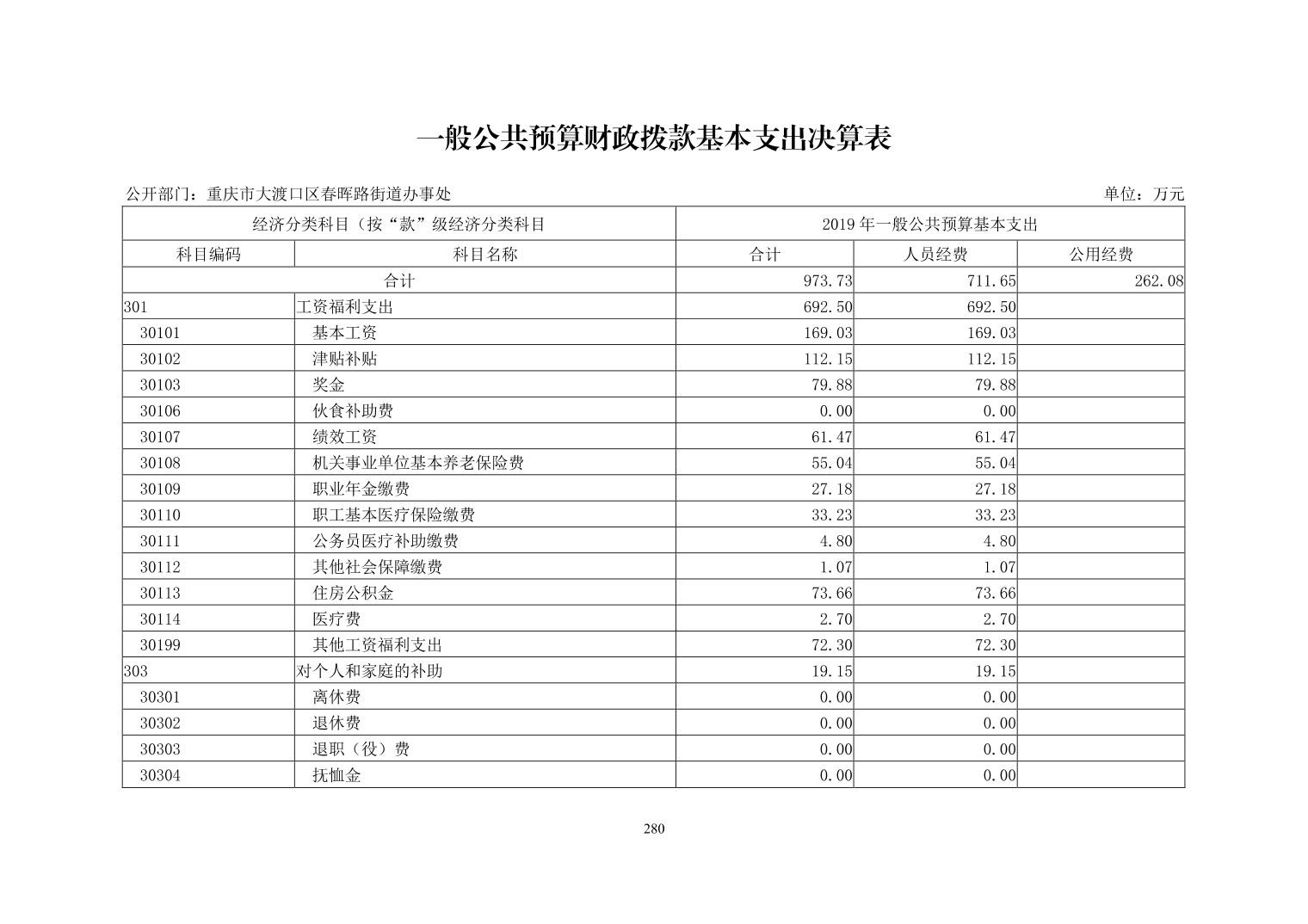 重庆市大渡口区春晖路街道办事处 2019 年度部门决算情况说明