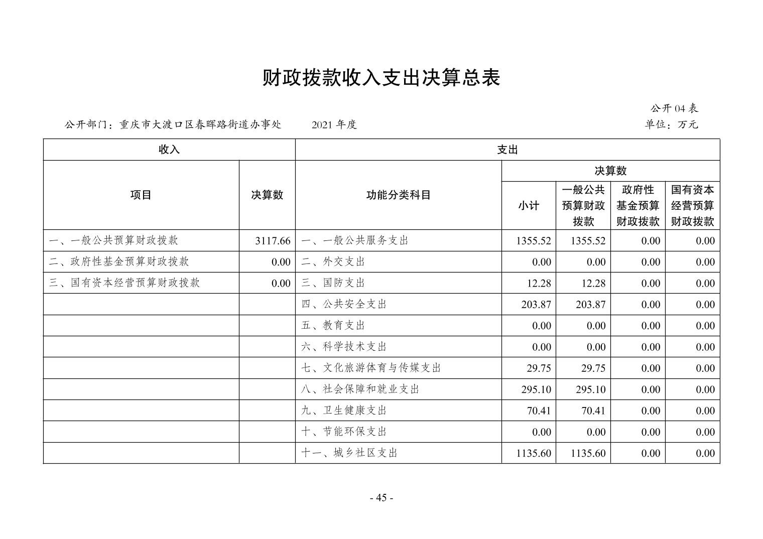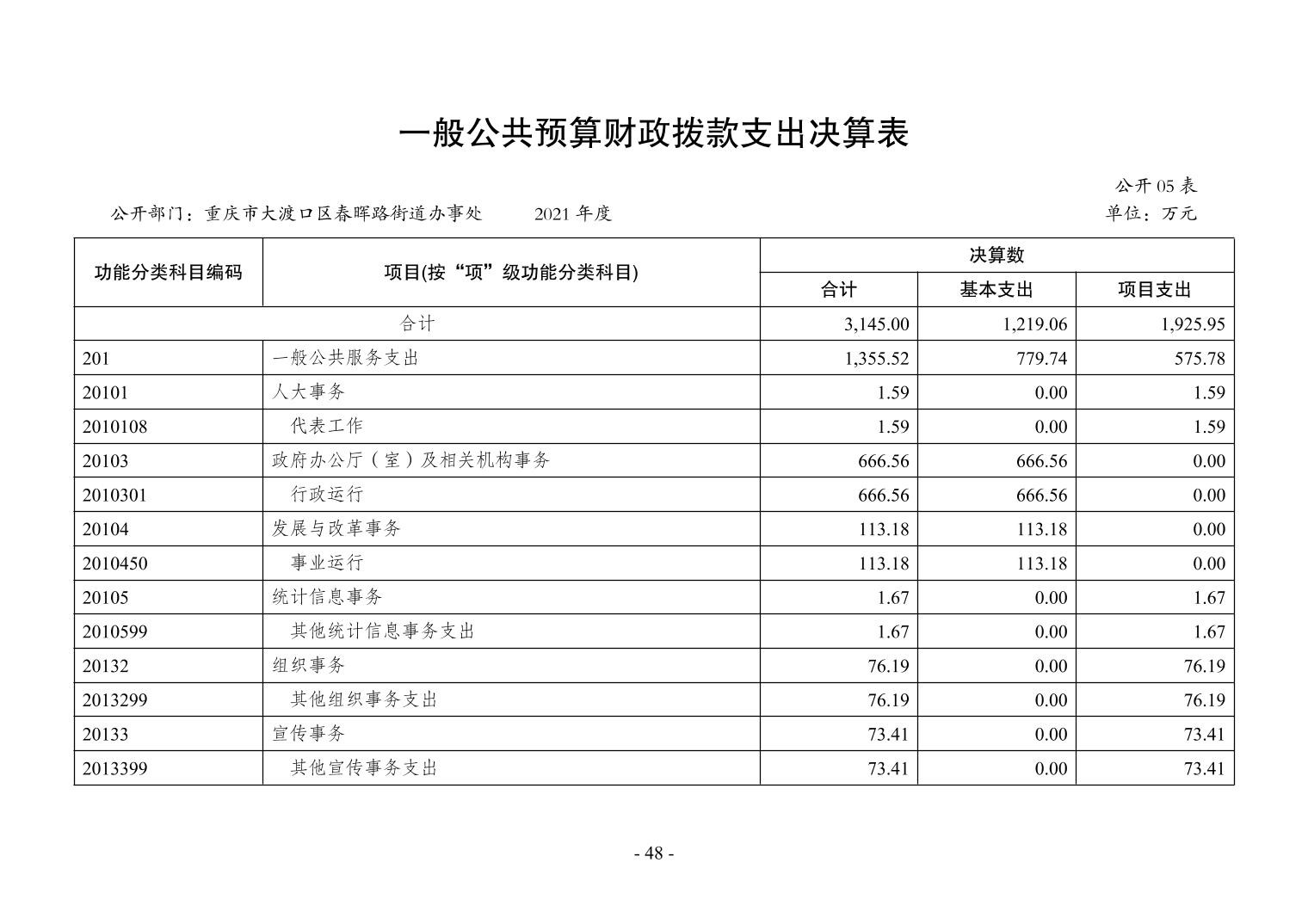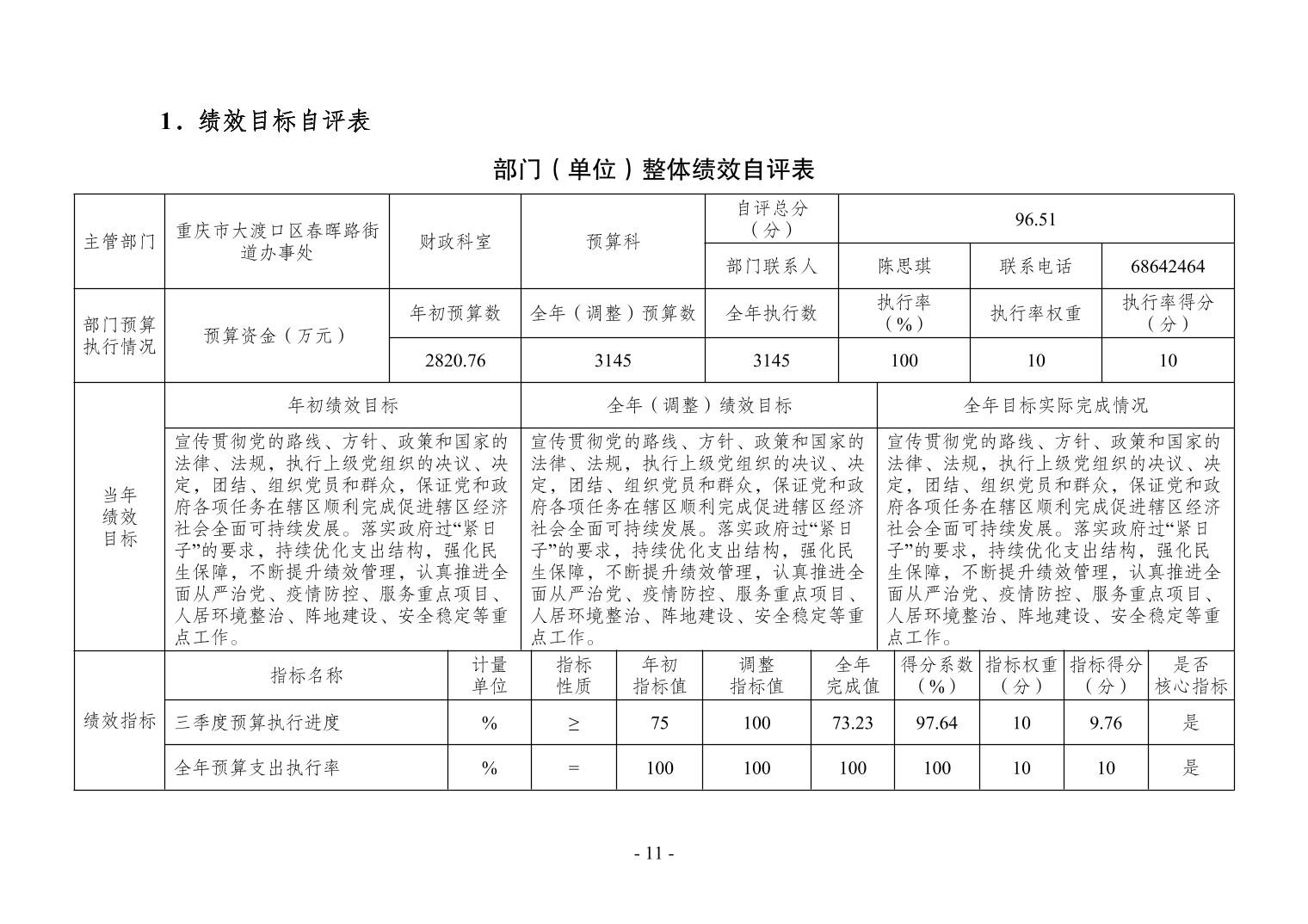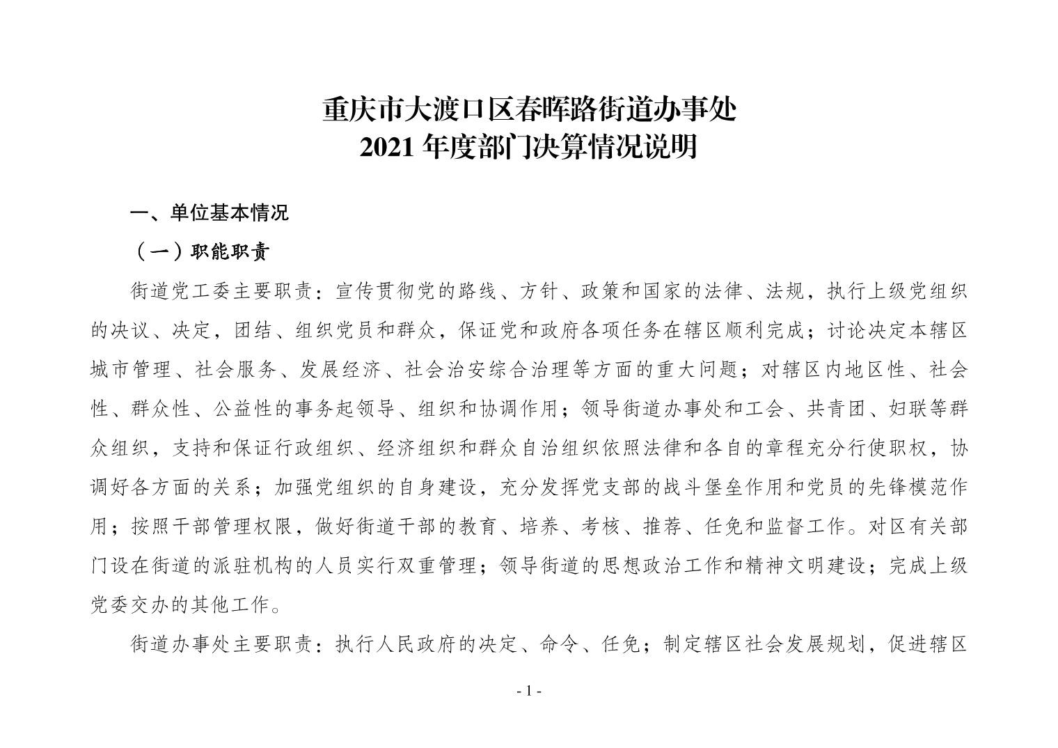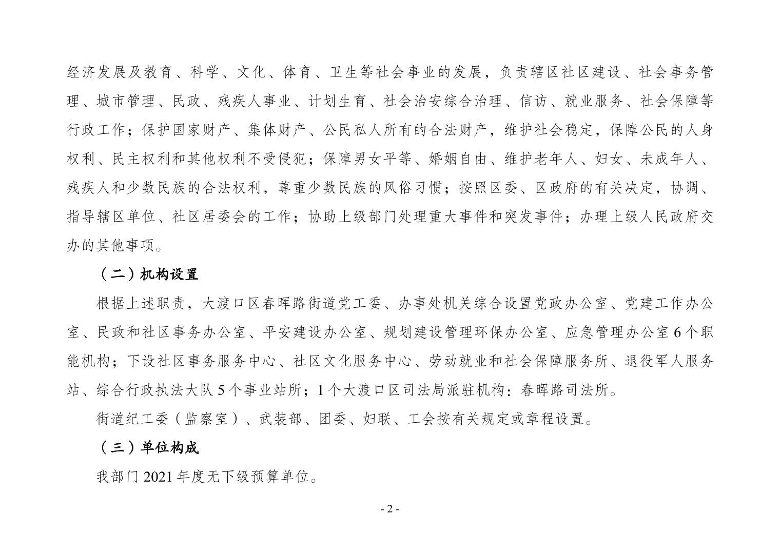 重庆市大渡口区春晖路街道办事处2021年度部门决算情况说明