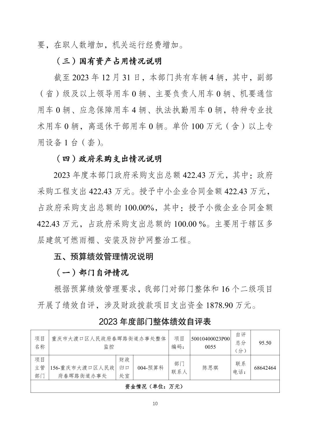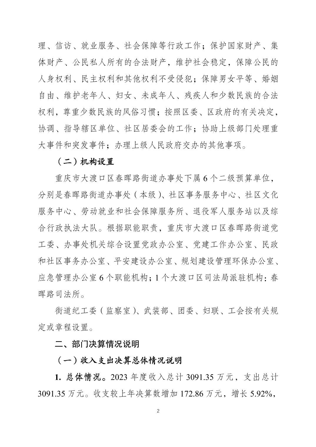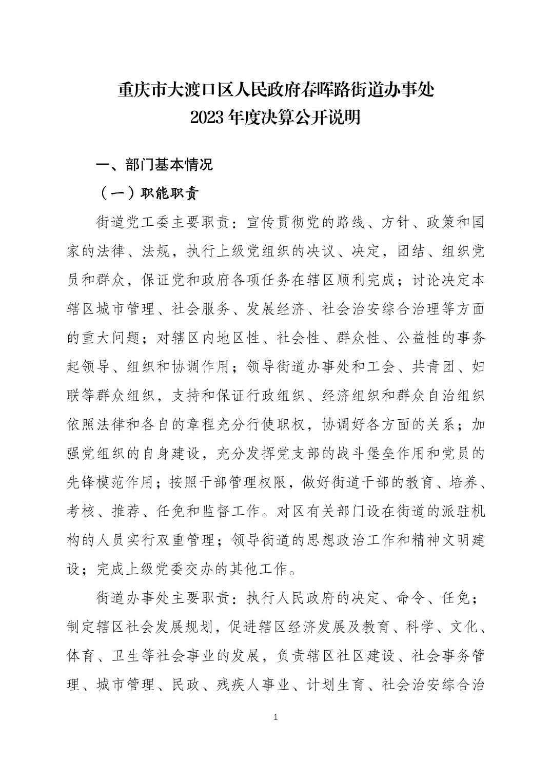 重庆市大渡口区春晖路街道办事处2023年部门决算情况说明