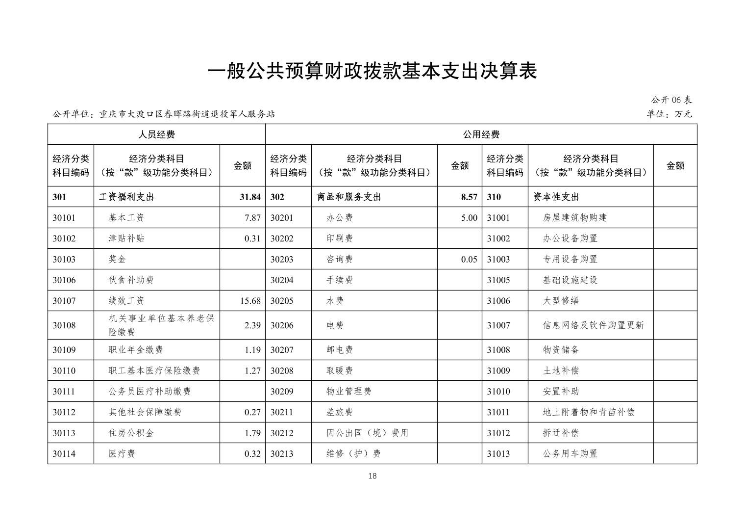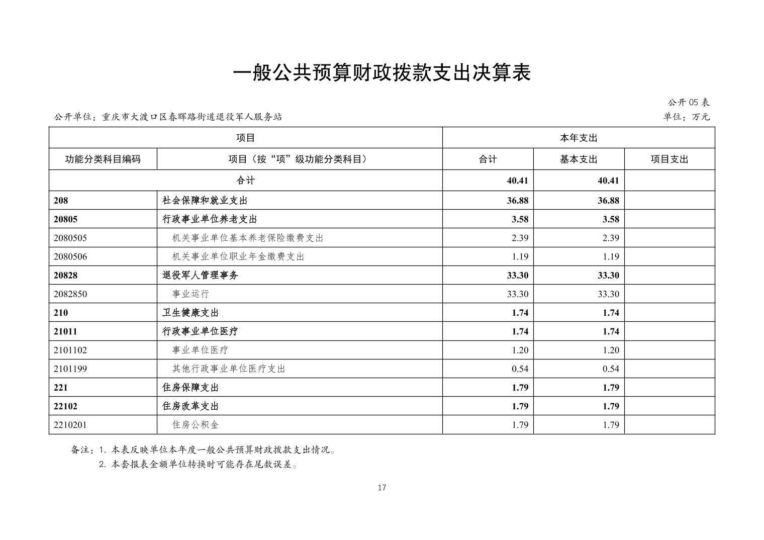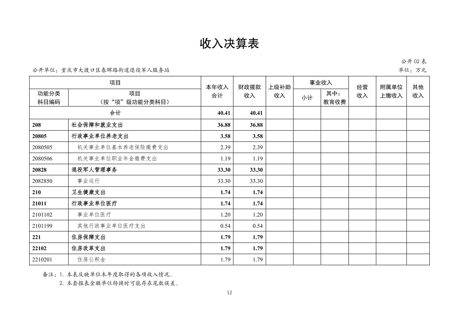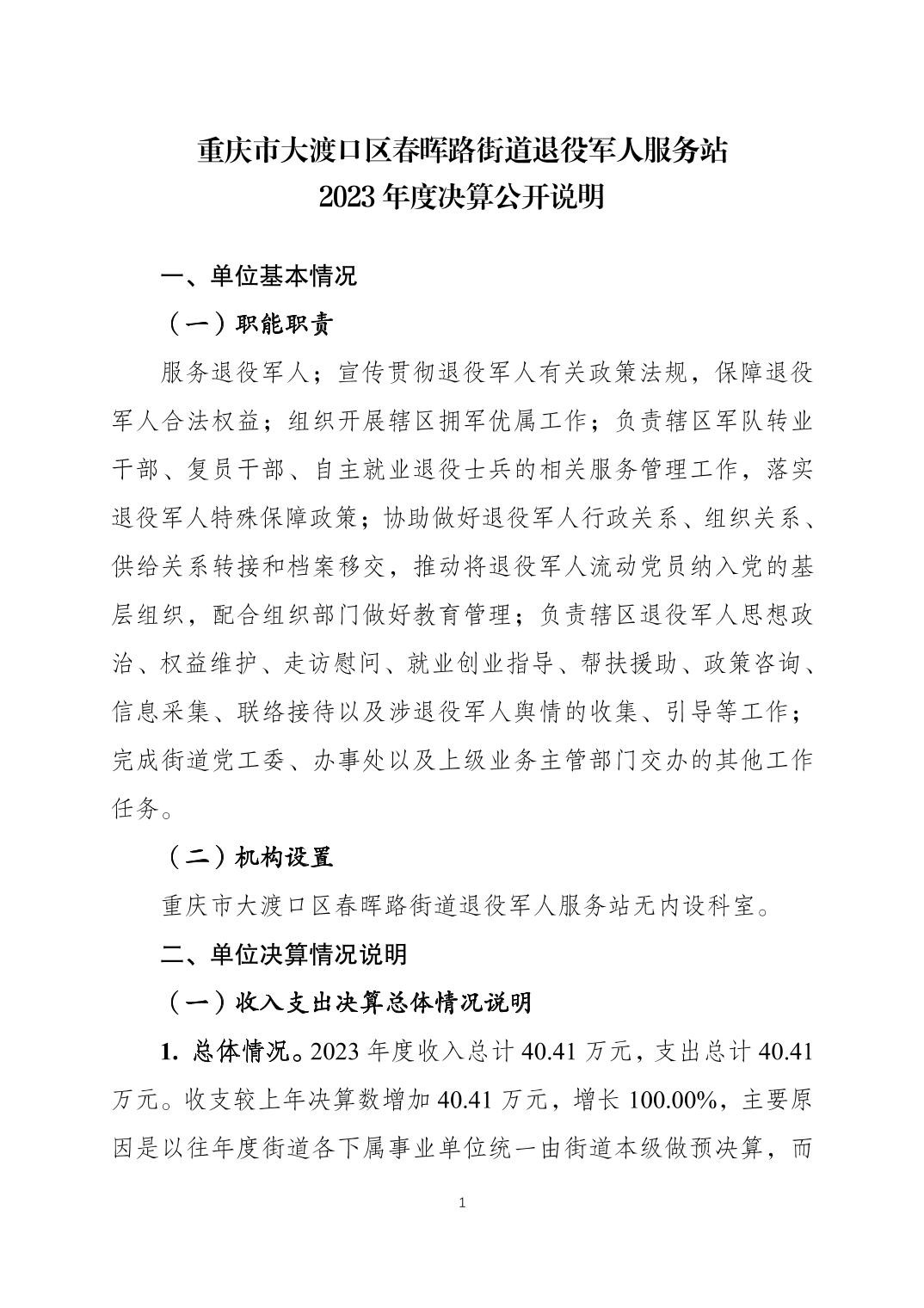 重庆市大渡口区春晖路街道退役军人服务站2023年度决算公开说明