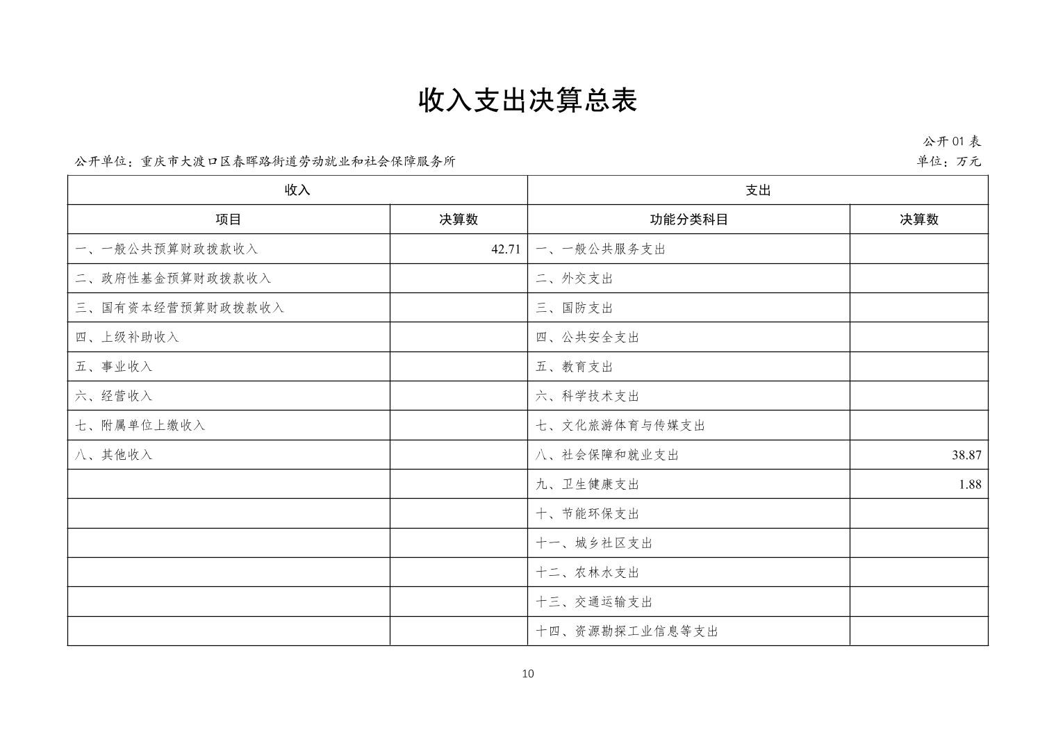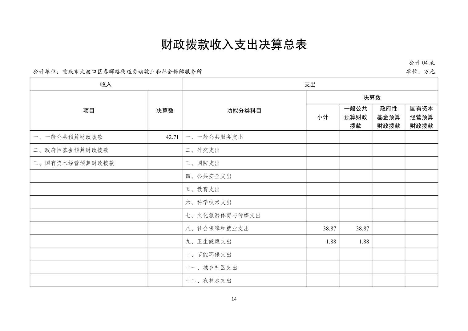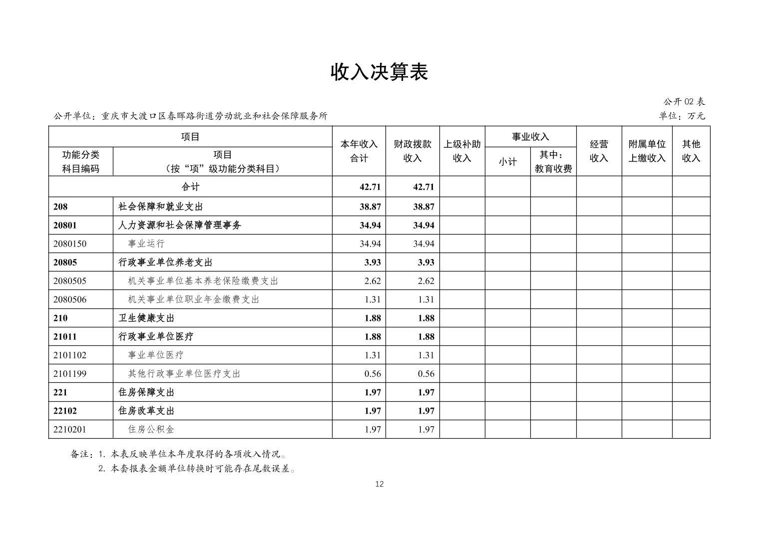 重庆市大渡口区春晖路街道劳动就业和社会保障服务所2023年度决算公开说明