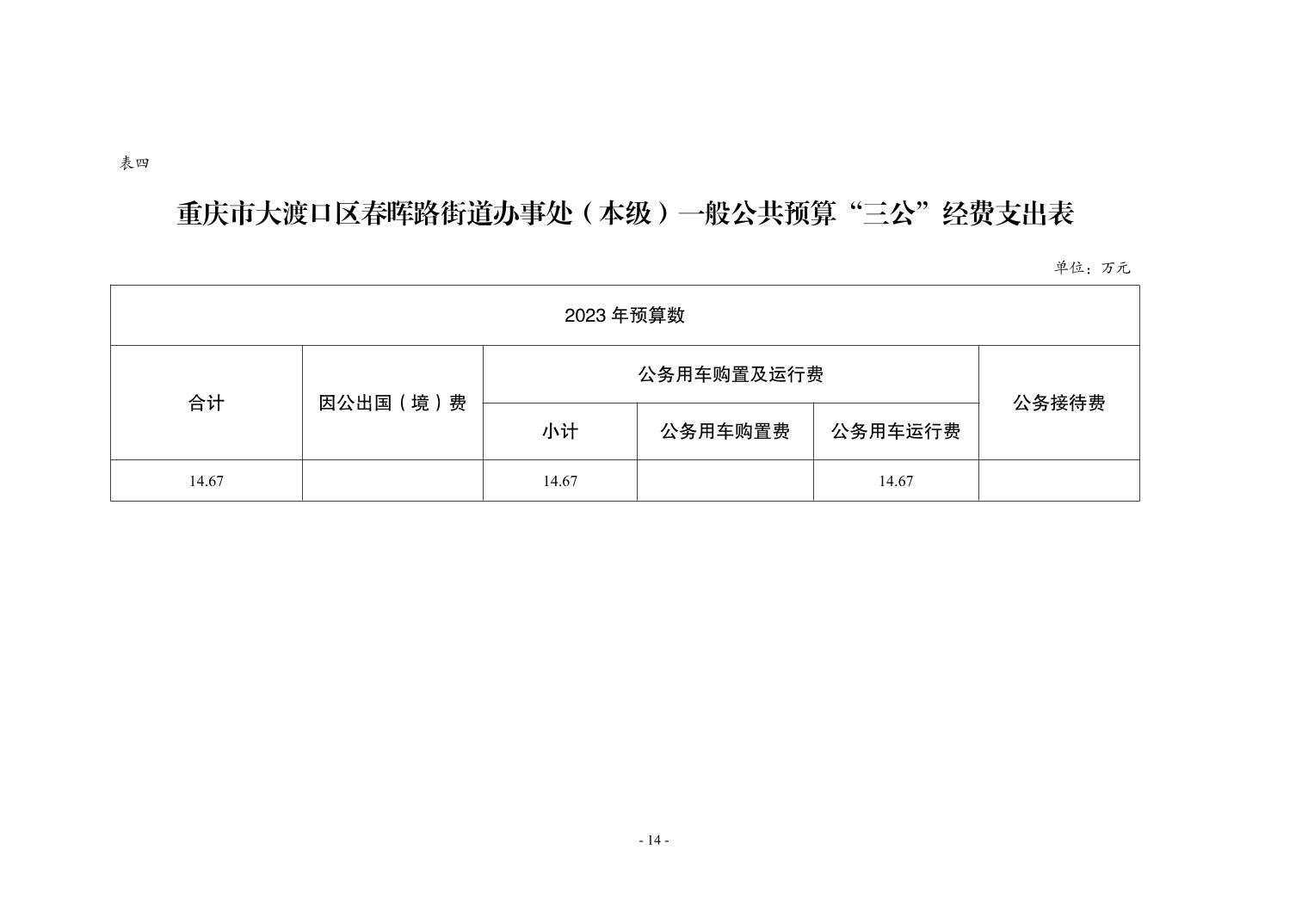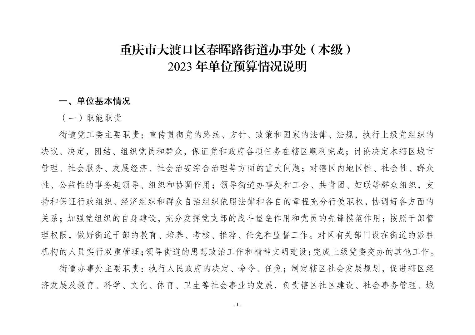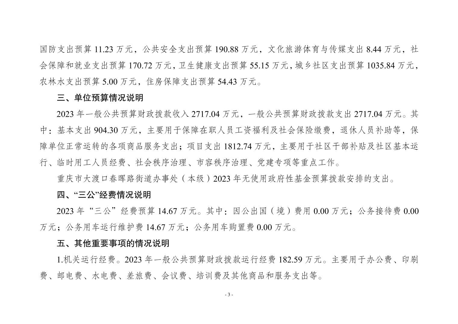 重庆市大渡口区春晖路街道办事处(本级)2023年单位预算公开情况说明