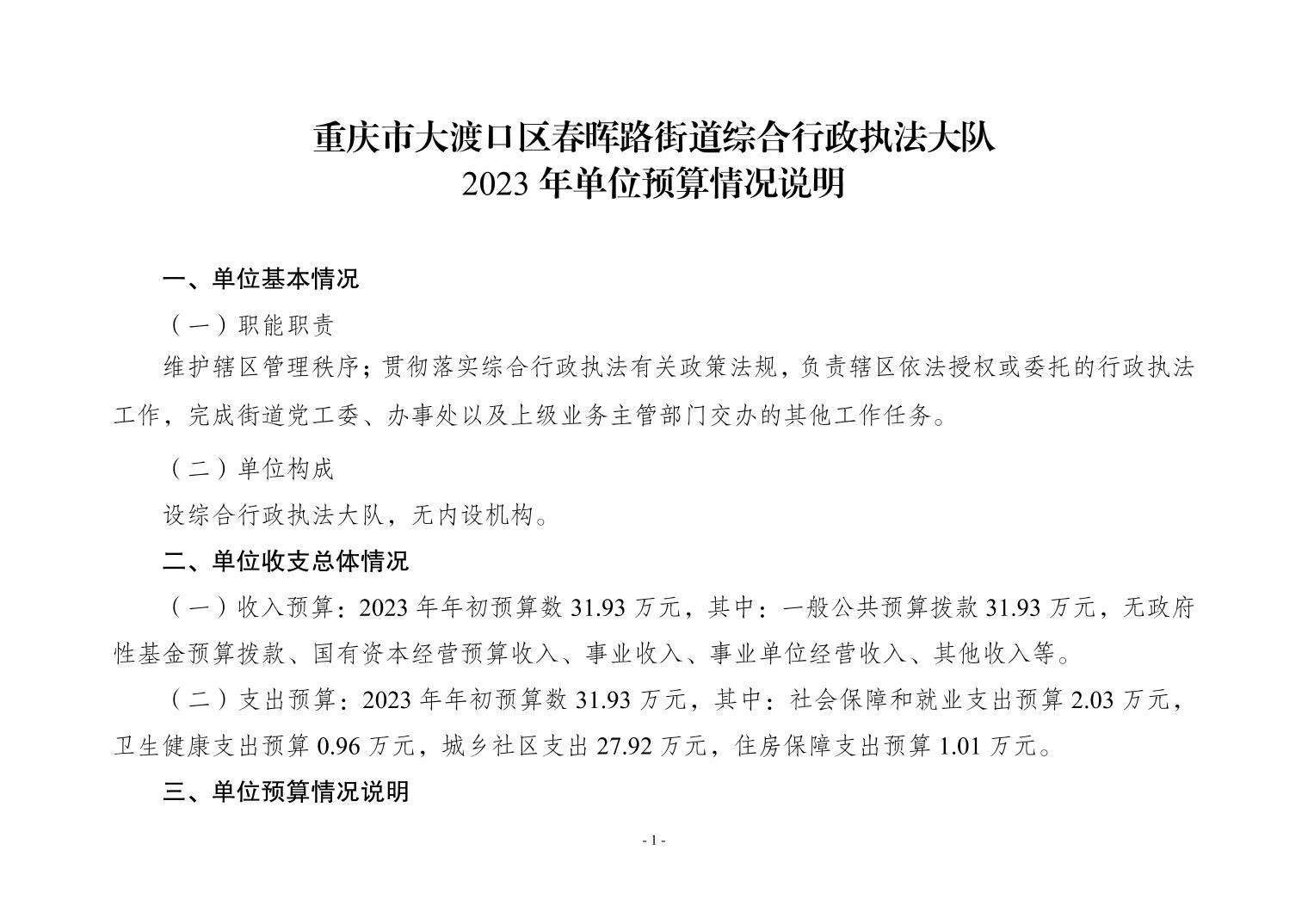 重庆市大渡口区春晖路街道综合行政执法大队2023年单位预算公开情况说明
