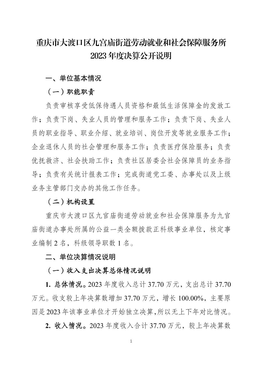 重庆市大渡口区九宫庙街道劳动就业和社会保障服务所 2023 年度决算公开说明