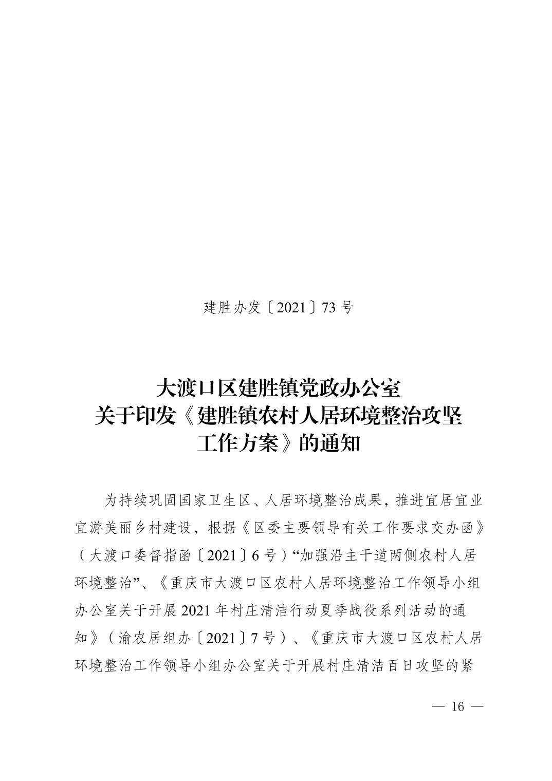 大渡口区建胜镇党政办公室关于印发《建胜镇农村人居环境整治攻坚工作方案》的通知