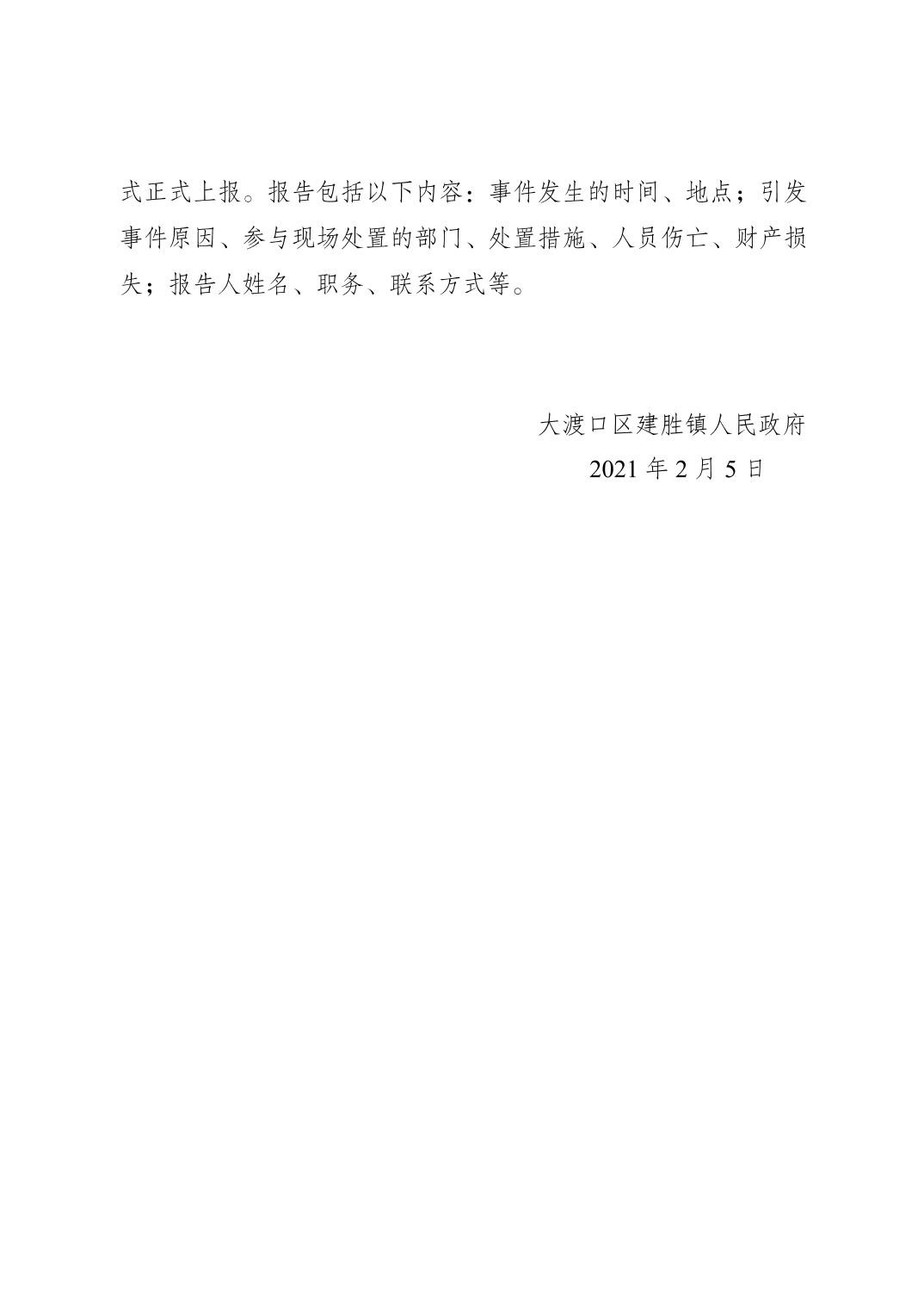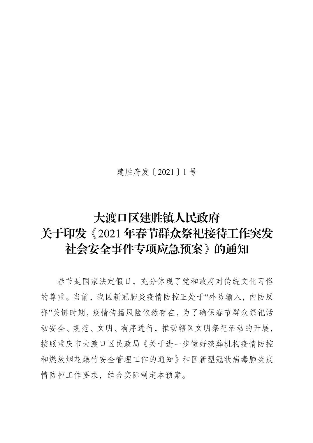 大渡口区建胜镇人民政府关于印发《2021年春节群众祭祀接待工作突发社会安全事件专项应急预案》的通知