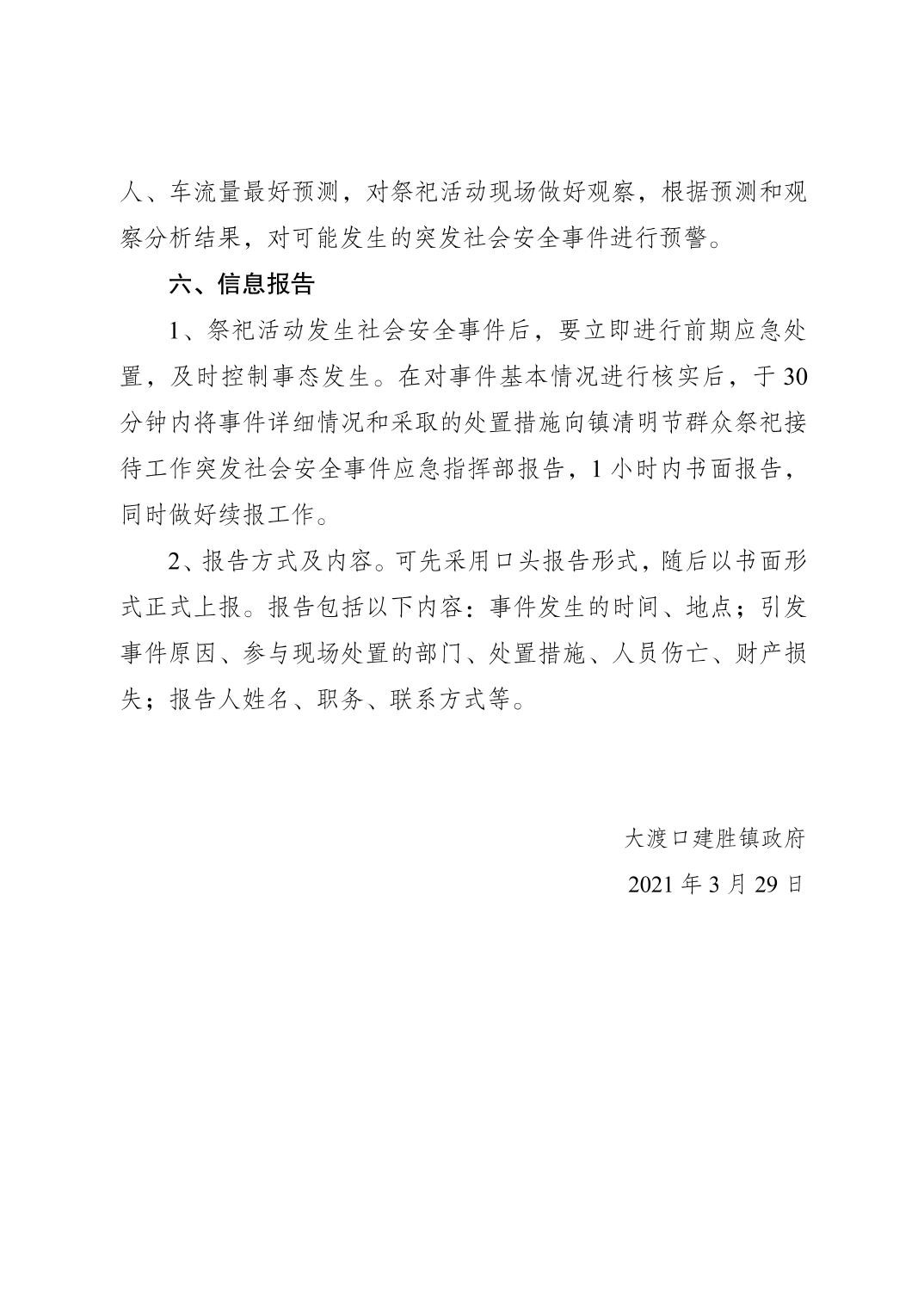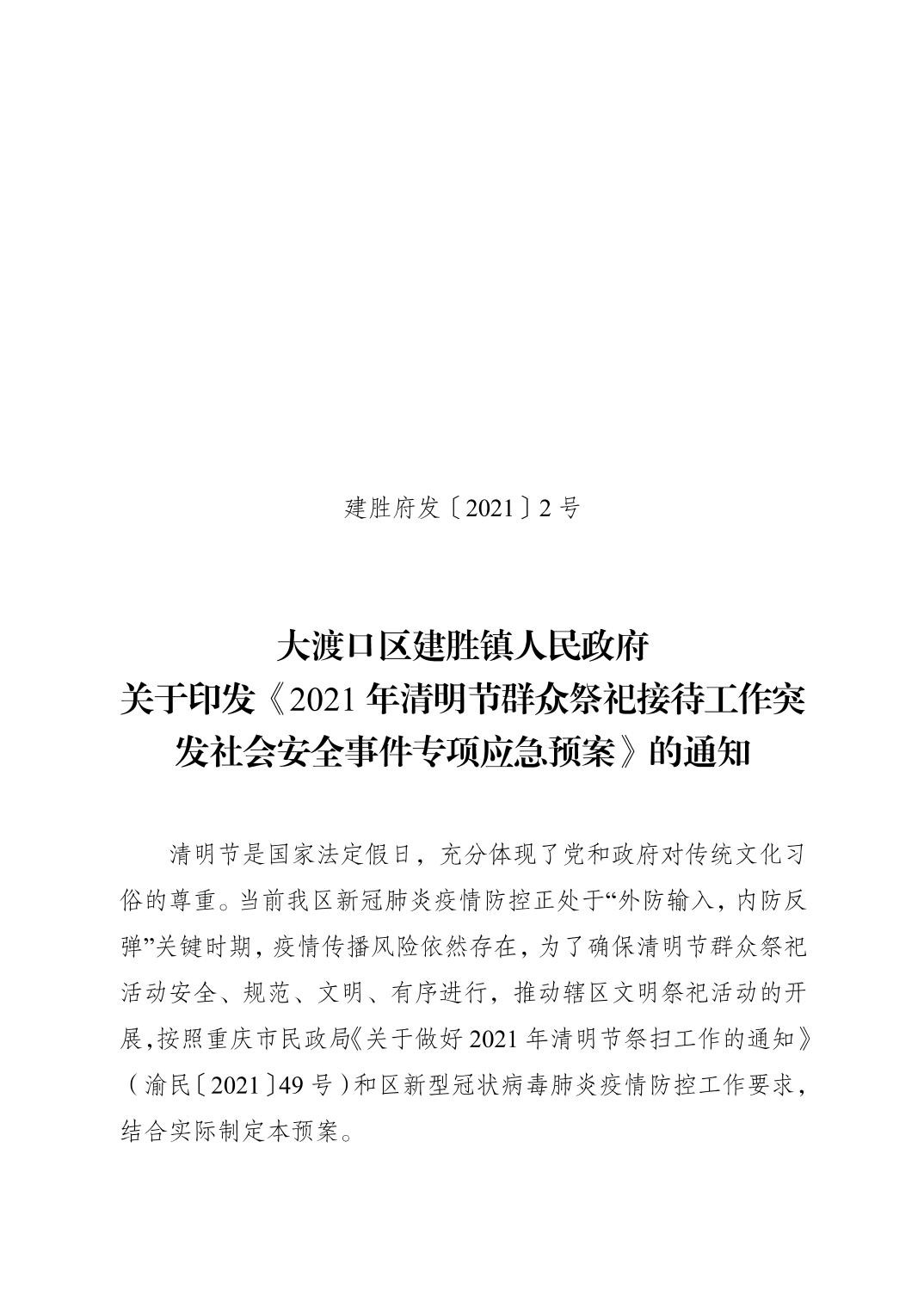 大渡口区建胜镇人民政府关于印发《2021年清明节群众祭祀接待工作突发社会安全事件专项应急预案》的通知